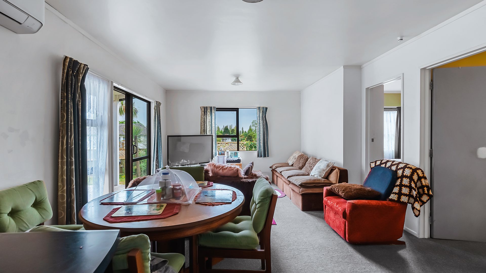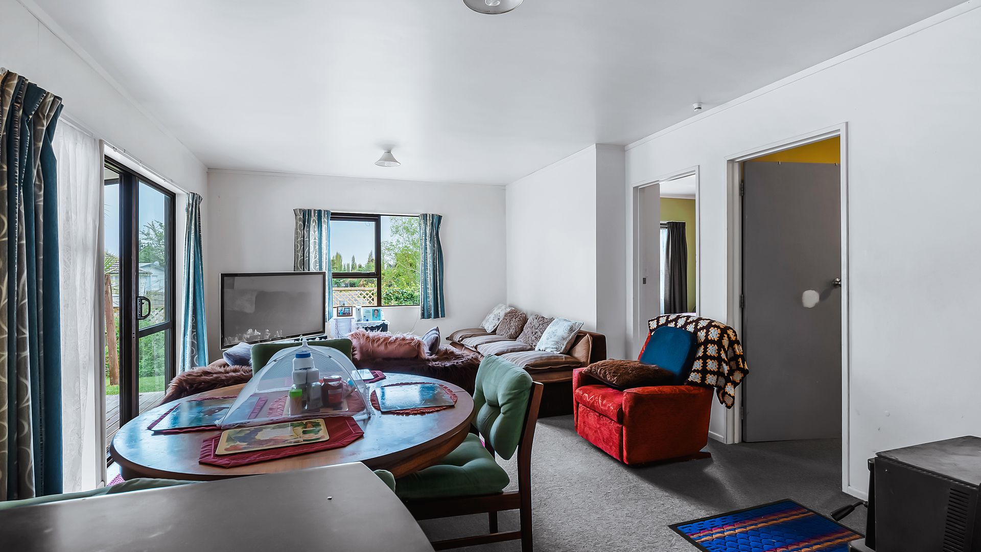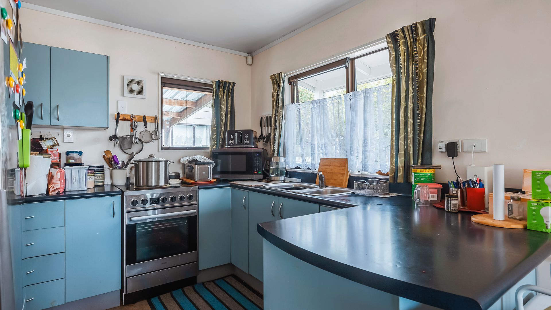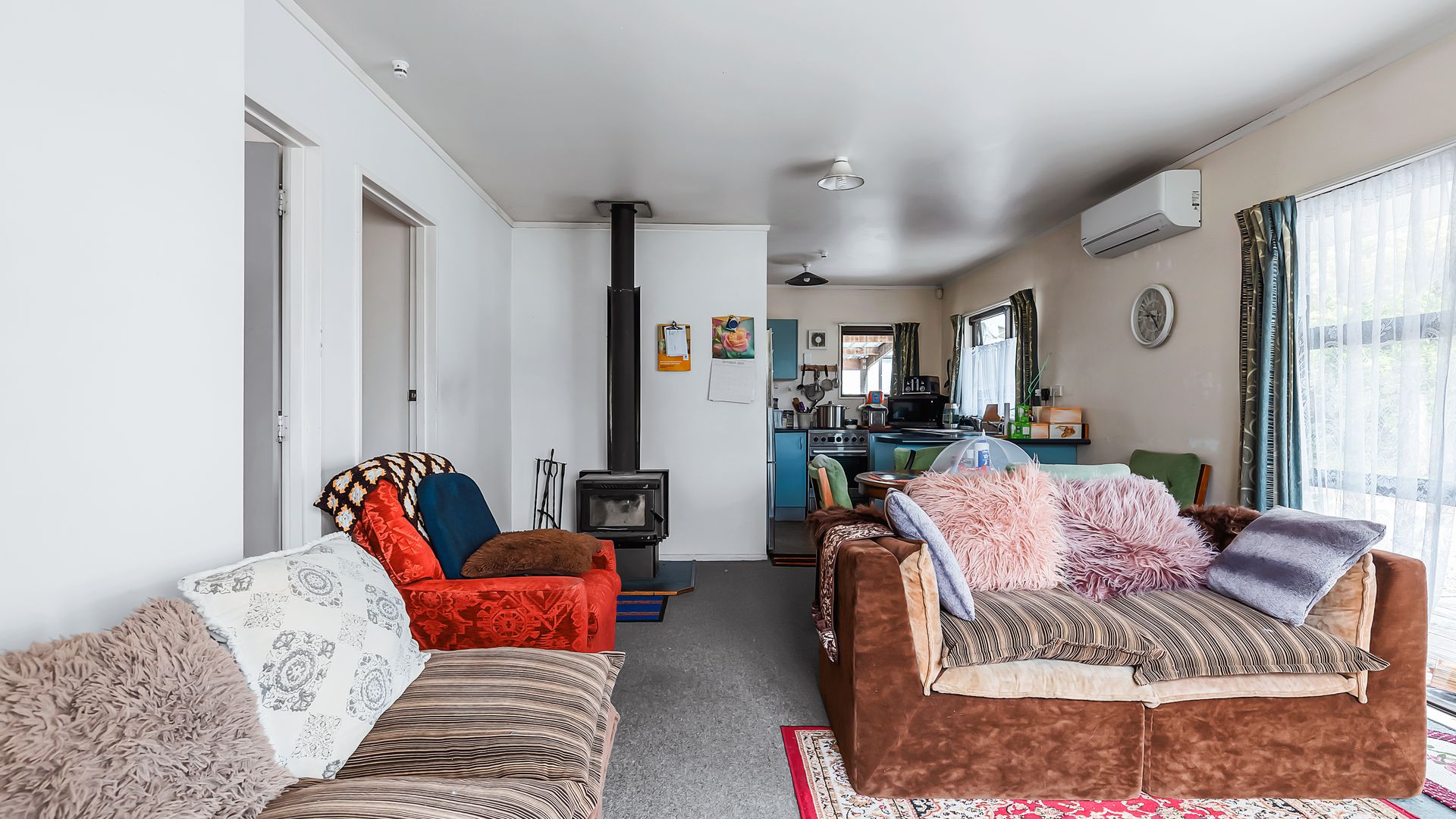 The internal floor-plan maximises space well commencing with two large bedrooms bedrooms, open-plan living with a woodburner and a heat-pump, a practical kitchen with good cupboard space and finally a laundry/combination bathroom and separate toilet.