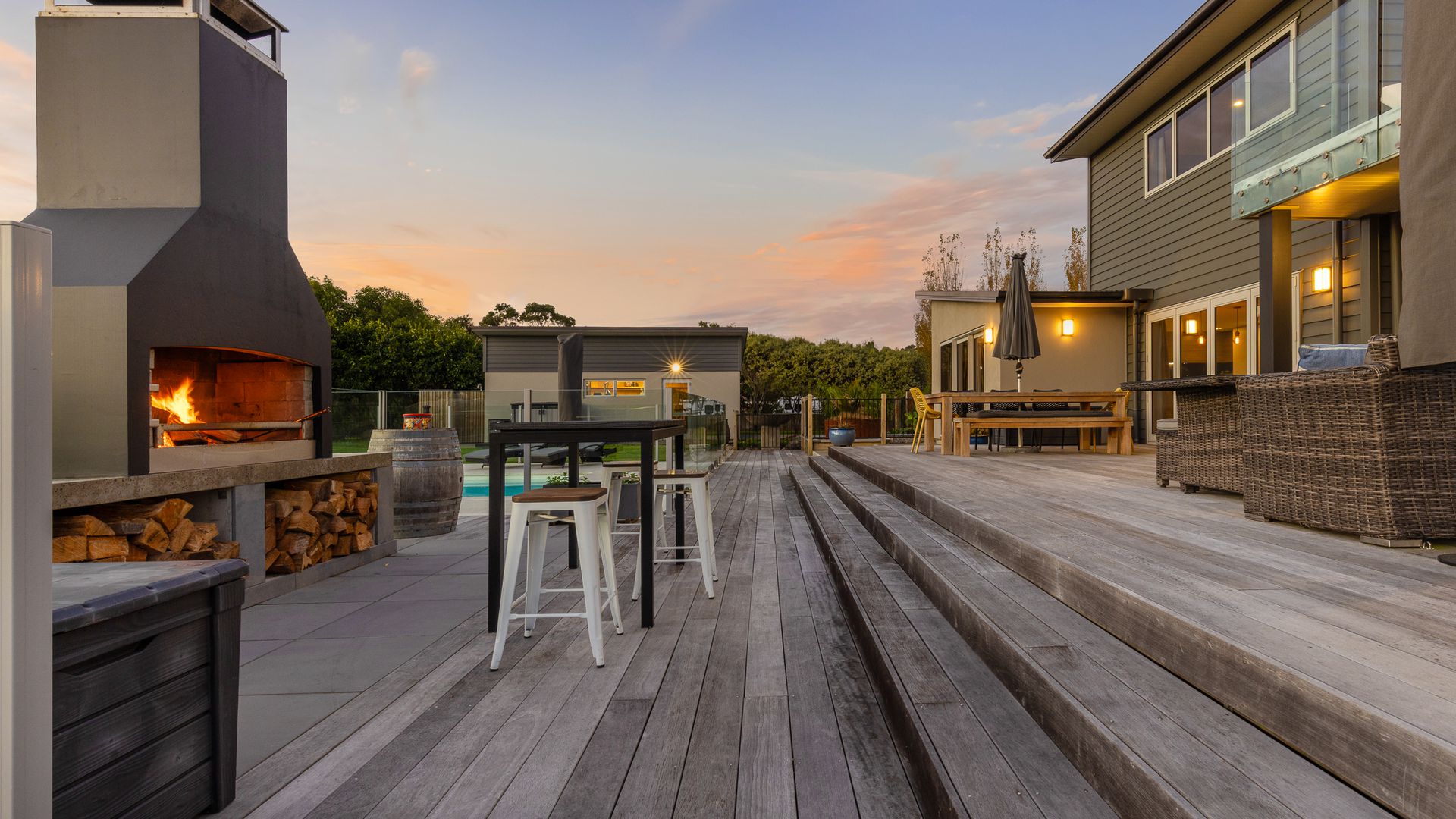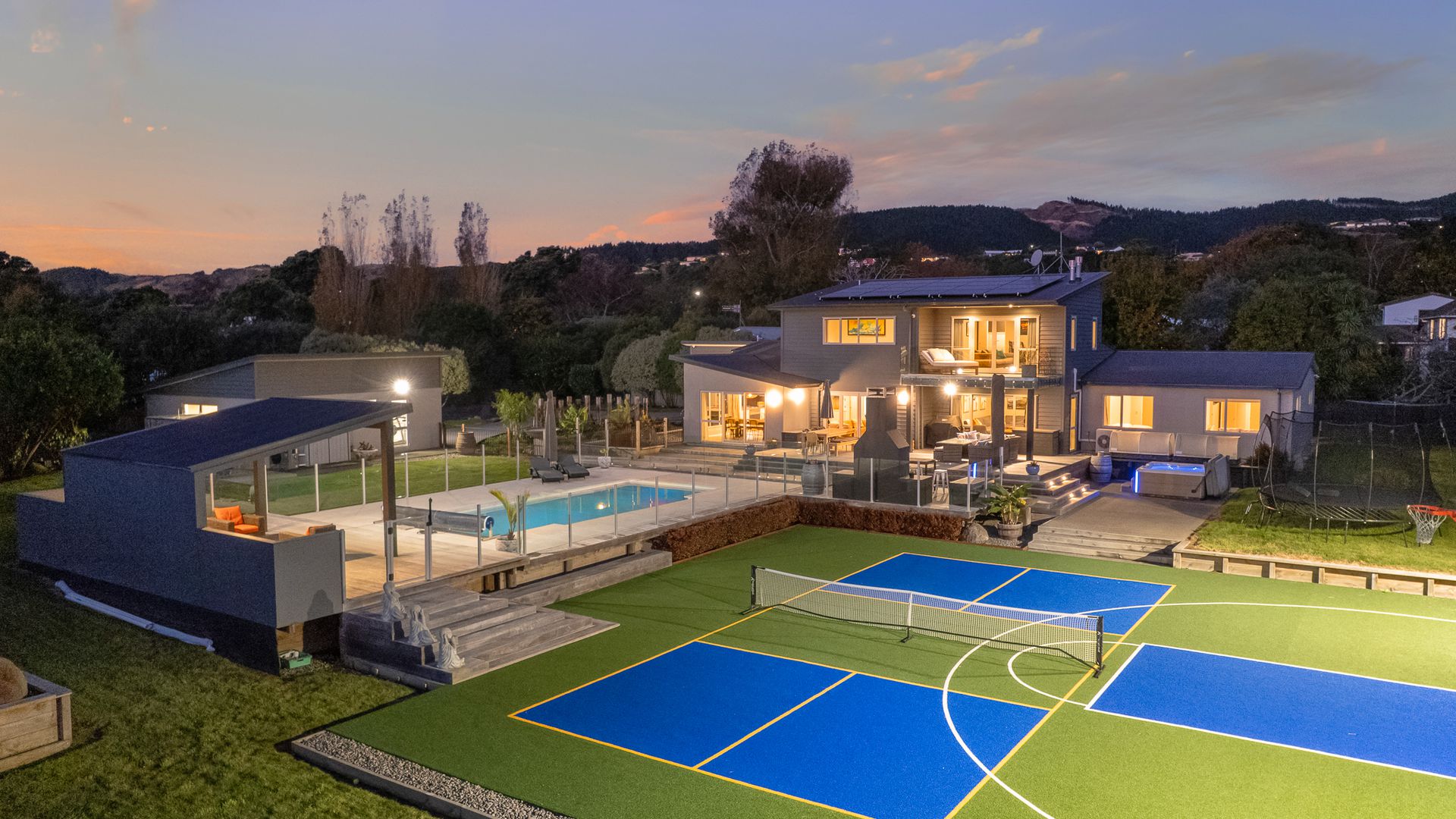 This is where the fun really kicks in. A heated pool, your own pickleball court, basketball court, a pizza oven, outdoor fire, and outdoor shower mean this home is all set up for lazy summer days, birthday parties or spontaneous Friday night catch ups. Indoor-outdoor flow is the real deal here with a large deck connecting from the open living space and separate lounge. There’s room for all the toys with another separate double garage – perfect as a gym, or place for your boat or camper.