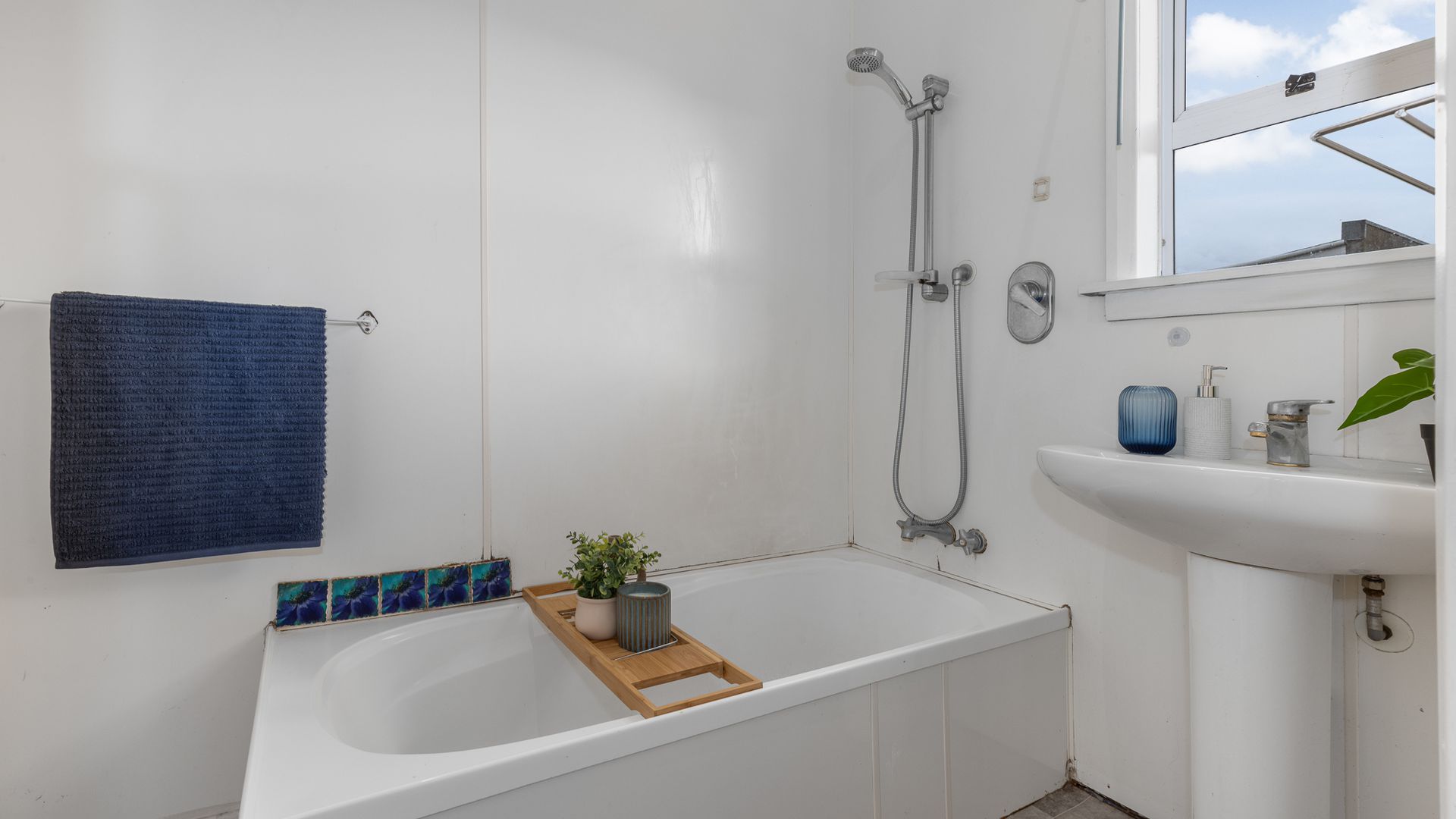 The bathroom, toilet and laundry are all in a functional space close to each other.