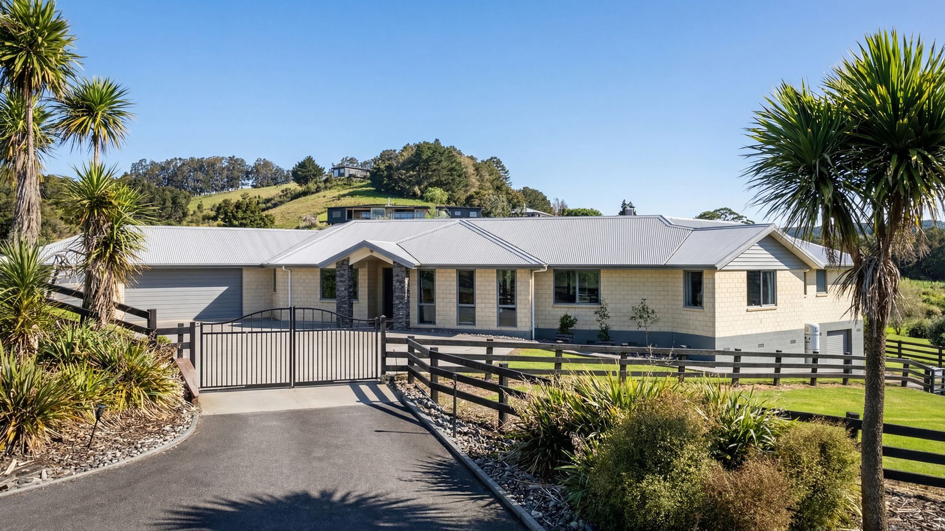 The open-plan living area and high ceilings create an exceptional sense of space, while the seamless indoor-outdoor flow is perfect for both relaxing and entertaining. The impressive kitchen, complete with a scullery and high-end appliances, services the dining area and a stunning outdoor deck and portico featuring schist stone pillars. The large separate media room or could be used as a formal lounge further enhances this home's versatile design. Premium features include: - 2.2kW solar system and dual water heaters - Heat pump hot water and ducted heating/cooling throughout - Whole-house water filtration and a central vacuum system - Three-car internal access garaging plus a large workshop under the house (separate driveway access) - Black stained post and rail fencing - Large laundry room with ample storage, as well as fantastic storage throughout the home Set behind automatic gates on 1.08 hectares of gently contoured land, the property includes a 'lake' along with extensive low-maintenance landscaping. The home, unique in its scale, location and quality features, must be viewed to be appreciated - it is so much more impressive than we can photograph. Selling below replacement cost. All the hard work has already been done with landscaping. Please contact us to arrange your private inspection.