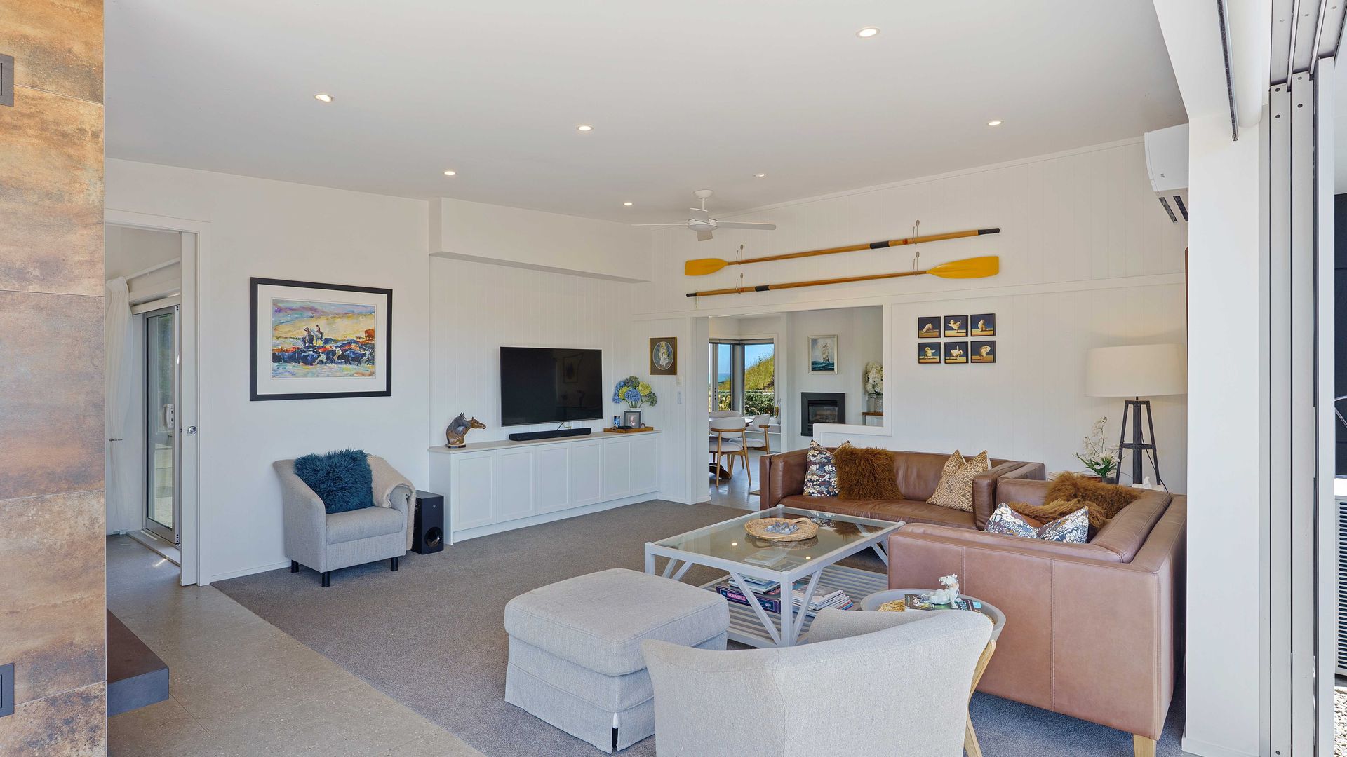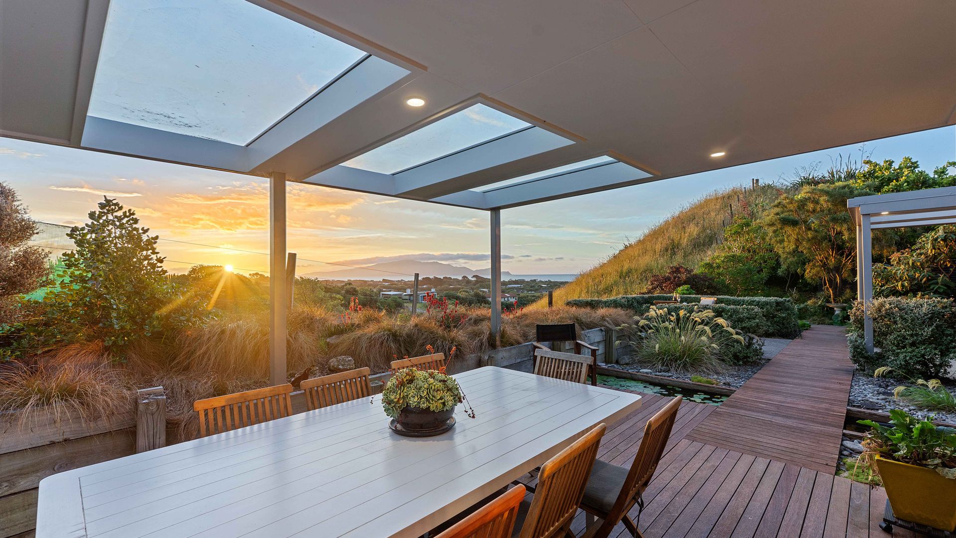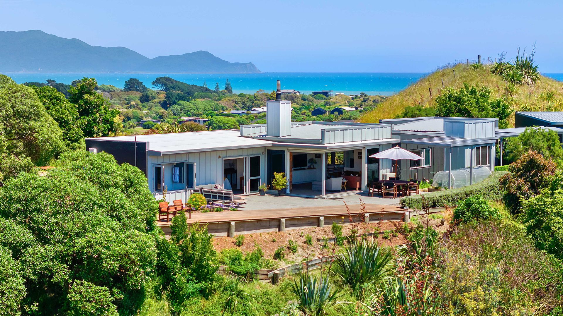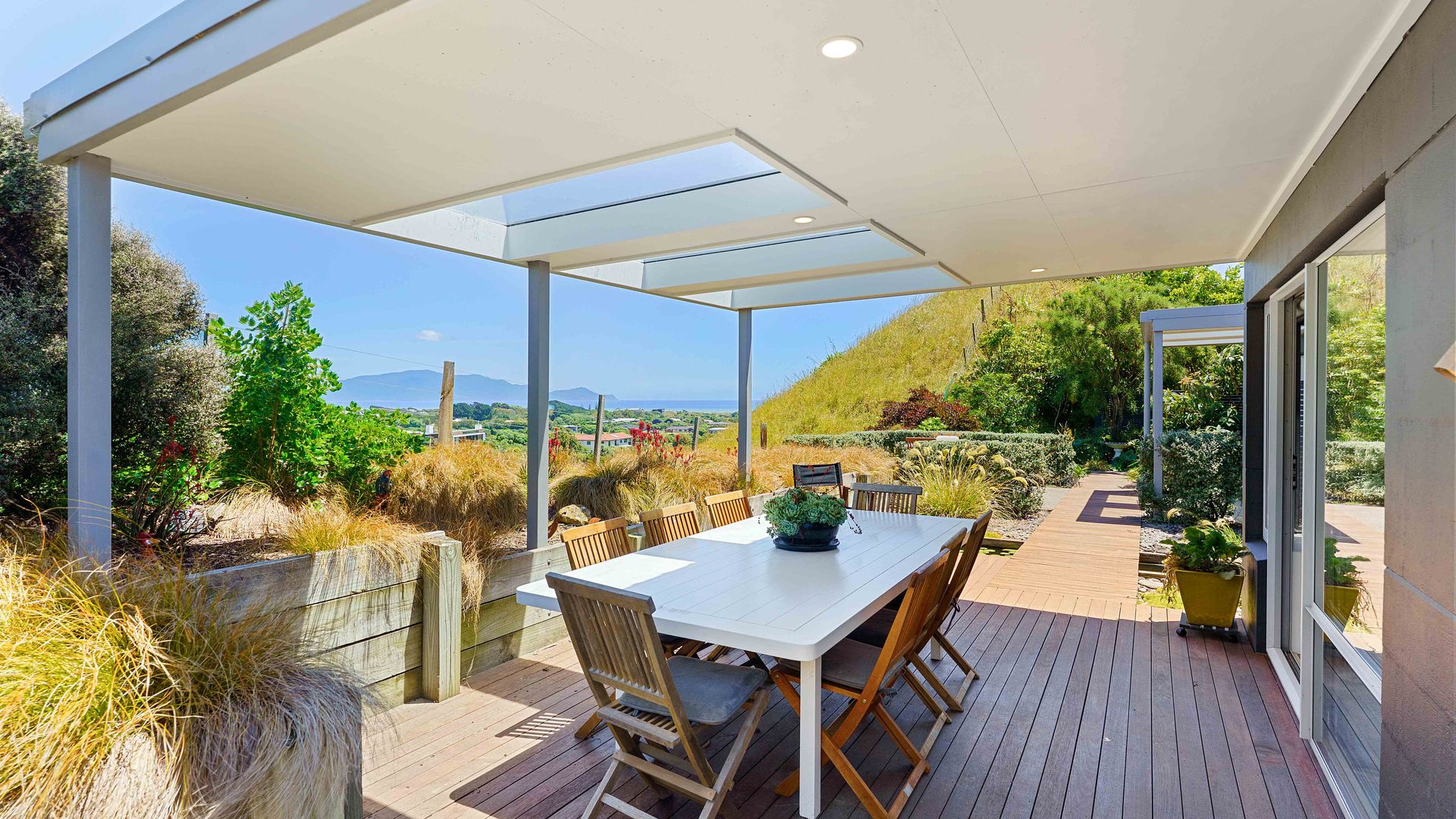 The expansive outlook is truly spectacular, with uninterrupted views of Kapiti Island, the ocean, and the mountain ranges beyond—a daily backdrop that few properties can rival.