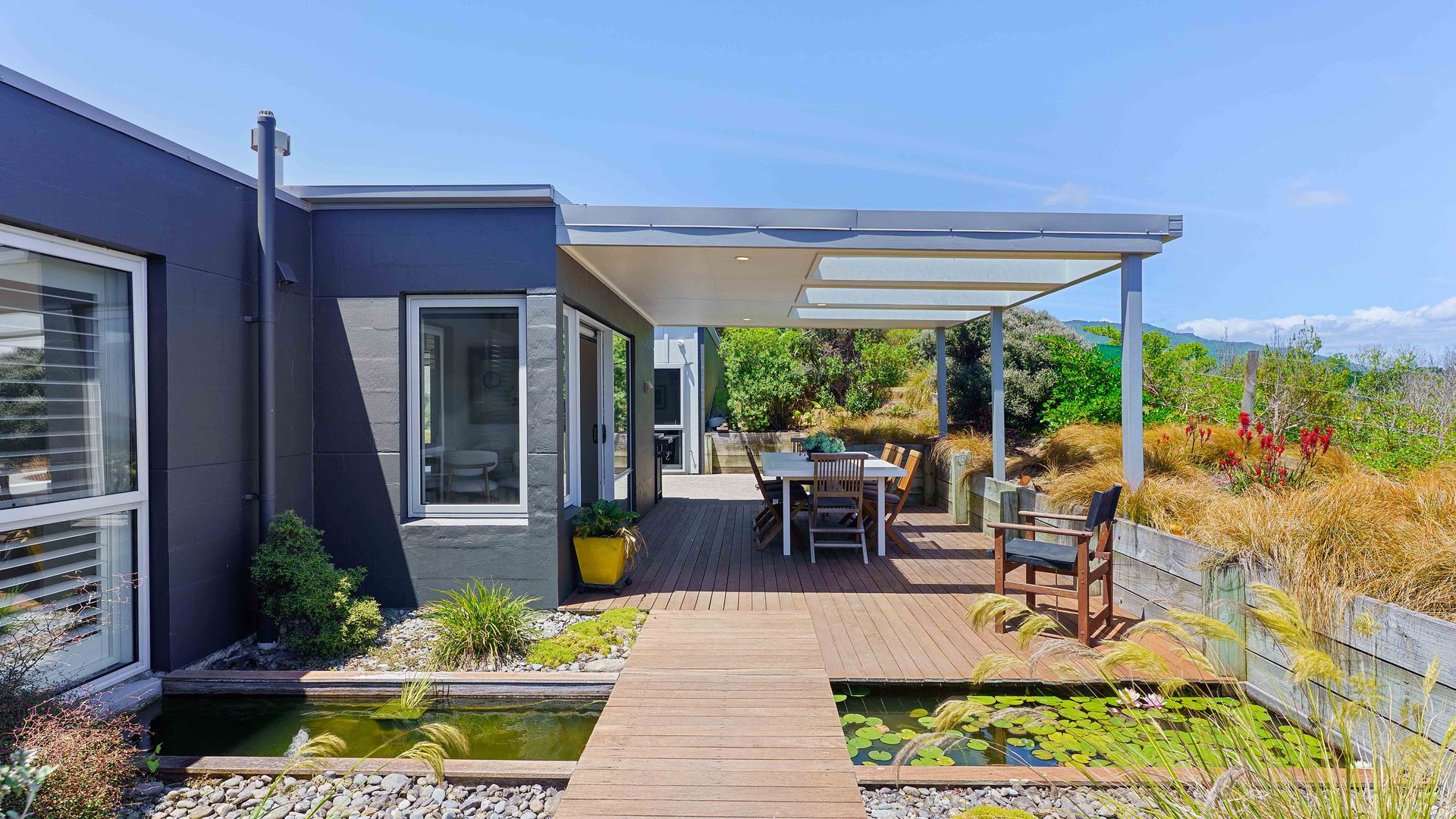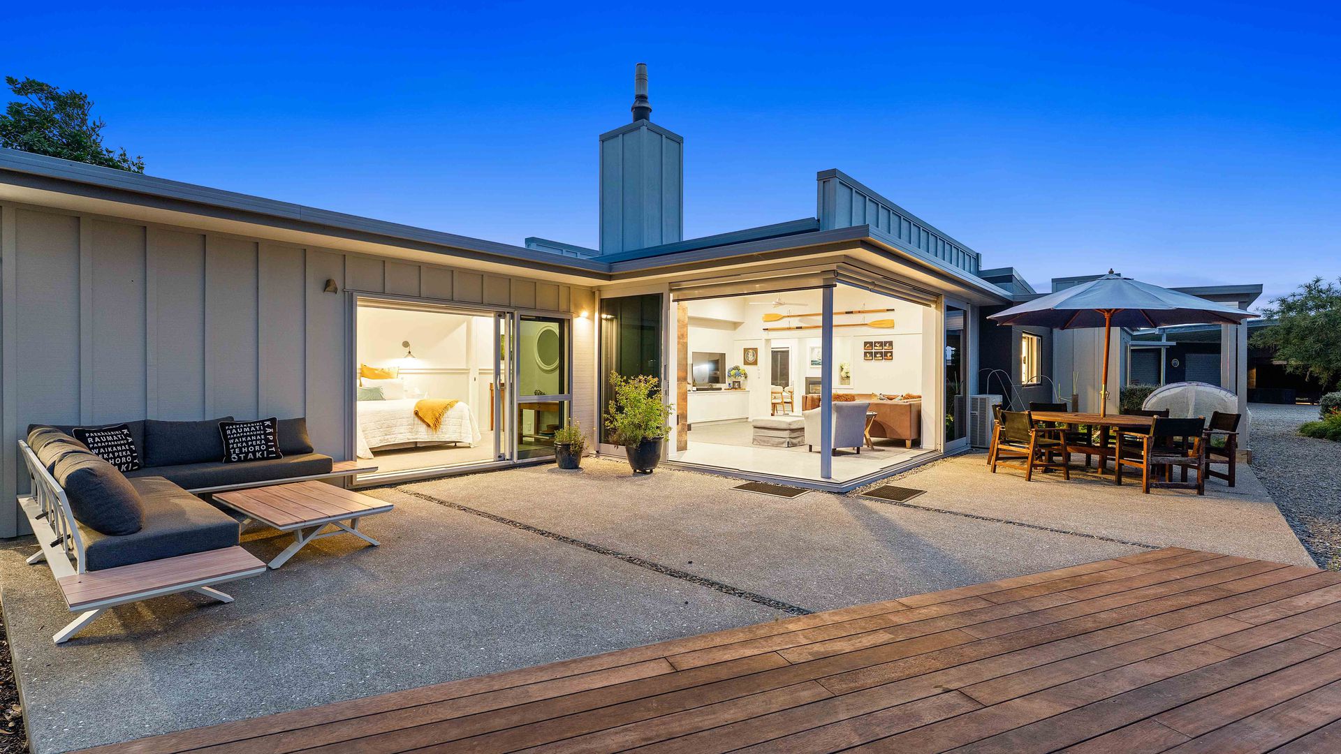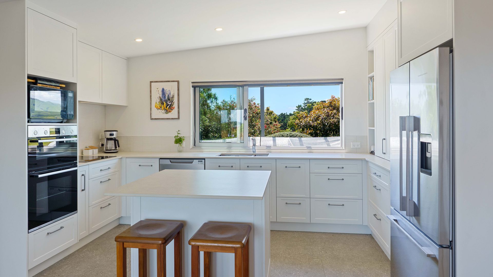 Thoughtfully designed for ease of living, two generous bedrooms are positioned at opposite ends of the home, creating separate wings for easy living and natural separation. A brand-new kitchen, with open plan dining and sun-drenched living areas create a central hub, where large sliders open to a wide deck—perfect for entertaining or simply soaking in the view.