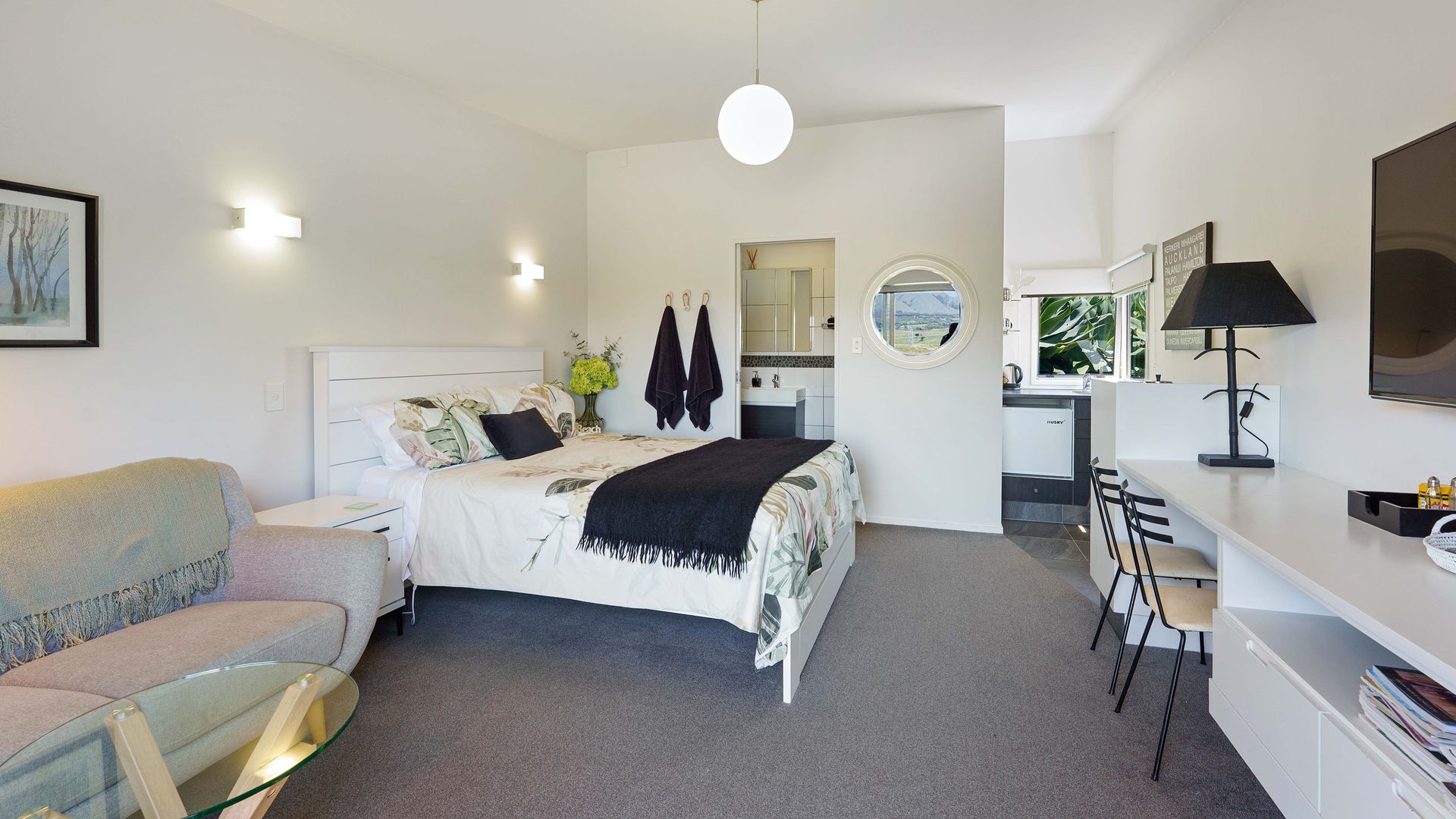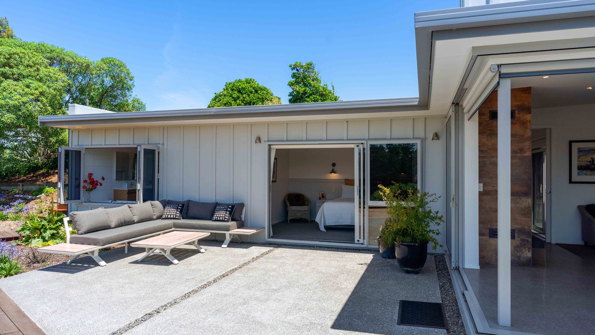 A separate studio with its own bathroom and kitchenette provides a flexible third bedroom or proven Airbnb income stream.