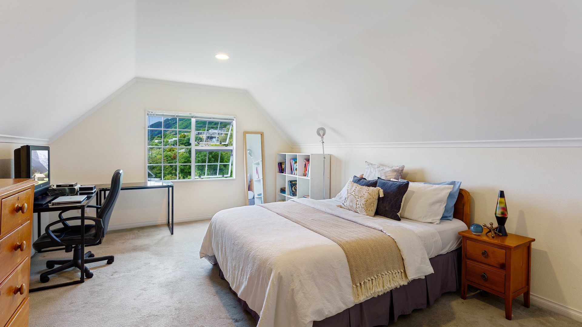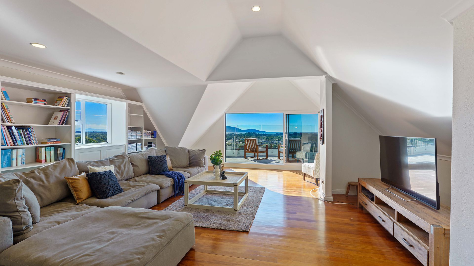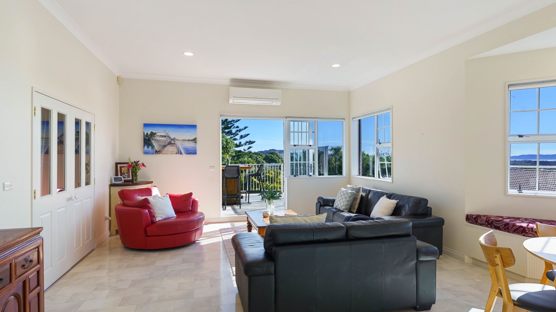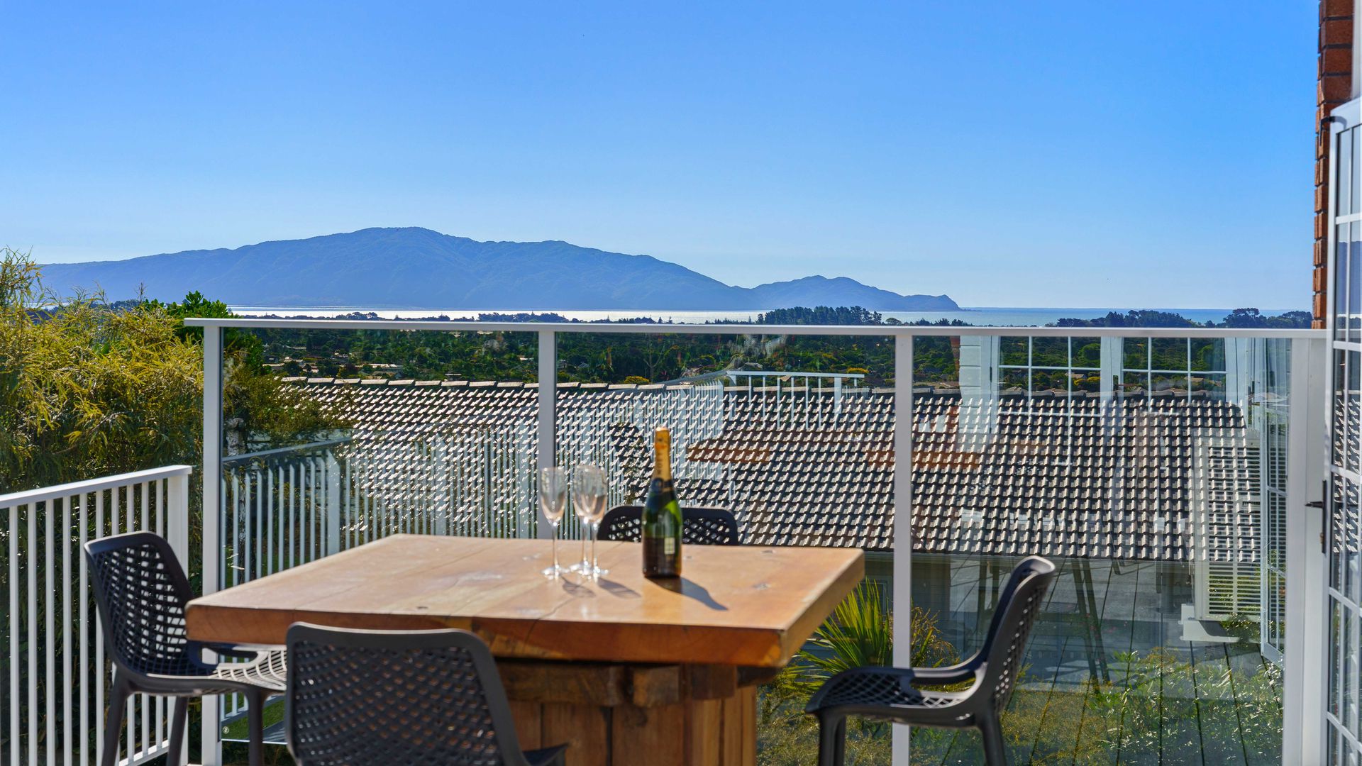 On a generous, potentially subdiviable section, framed by established trees, the home enjoys sweeping views across Waikanae, Kapiti Island, and on clear days all the way to the South Island and Kaikōura ranges.