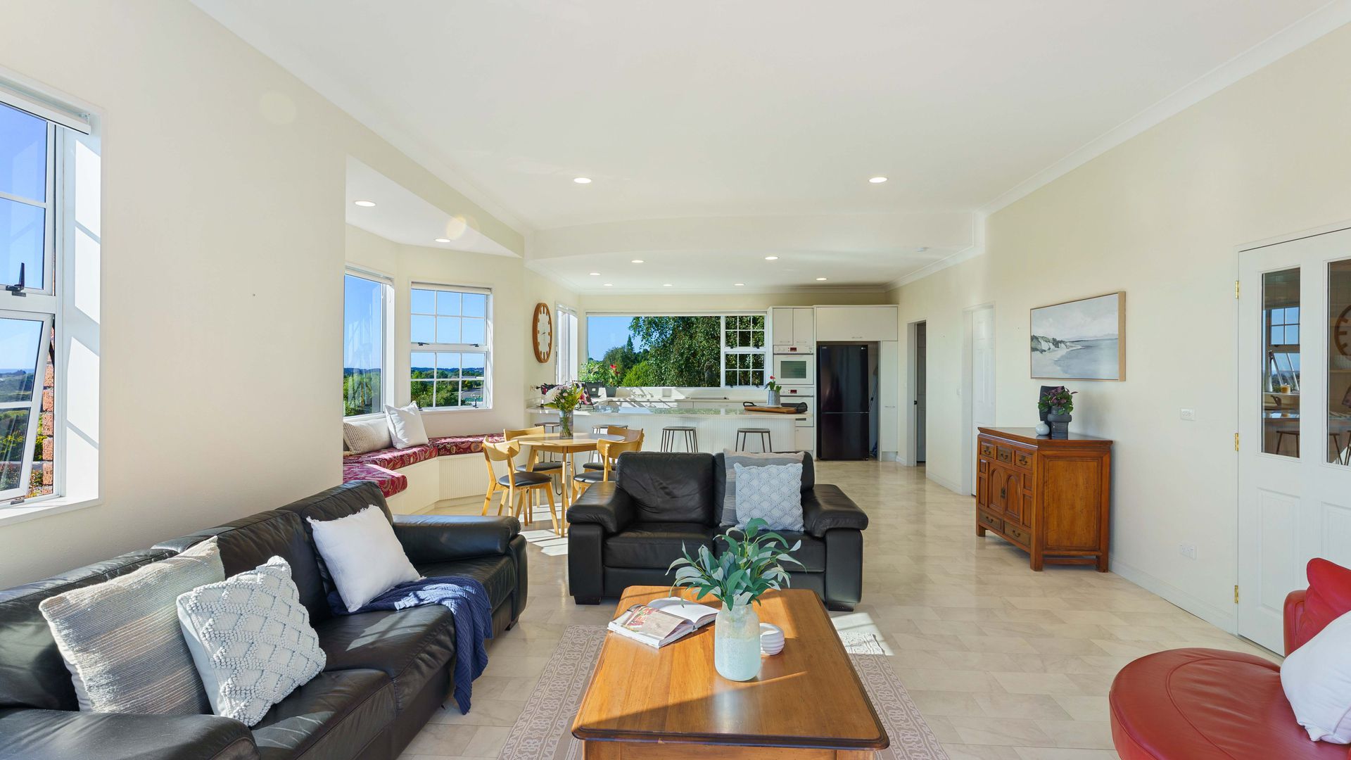 Beautifully crafted by renowned local builder Carl Van Der Meer for refined family living, this stunning home combines space, elegance, and breathtaking views, while offering exceptional flexibility for extended family living or home and income possibilities. Elevated in the hills of Waikanae and positioned down a private drive, the setting is immediately impressive.