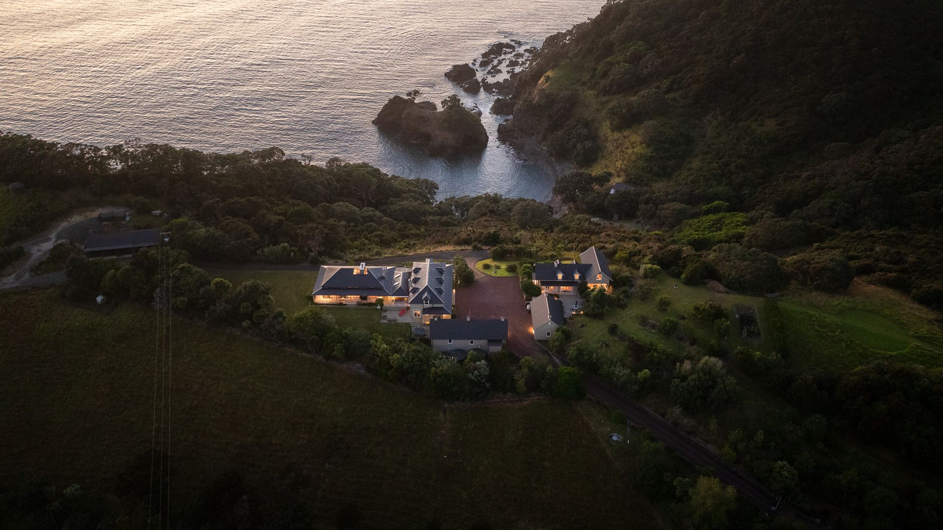 The estate's natural contours provide shelter from prevailing winds, ensuring complete privacy. Magnificent sunrises greet each day, with the nearby islands creating a breathtaking backdrop. Extensive planting has drawn native birds to the area, and the property borders the Kauri Mountain ecological reserve, offering stunning bush trails. Large areas of long-established native forest, complemented by a 25-year conservation and planting program, now provide a sanctuary for Kiwi and a vibrant bird population. Conveniently located just 2.5 hours north of Auckland and a short drive from Whangarei, Taiharuru Cove strikes the perfect balance between seclusion and accessibility. Designed by Wilson and Hill Architects, the grand homestead reflects timeless New Zealand style, while the guesthouse serves provides self-contained guest or family luxury lodge-type accommodation. With exceptional craftsmanship evident in every detail—from the stone cladding to the reclaimed native timbers—Taiharuru Cove is a rare opportunity to own a coastal sanctuary. Don't miss your chance to become the next custodian of this legacy property.