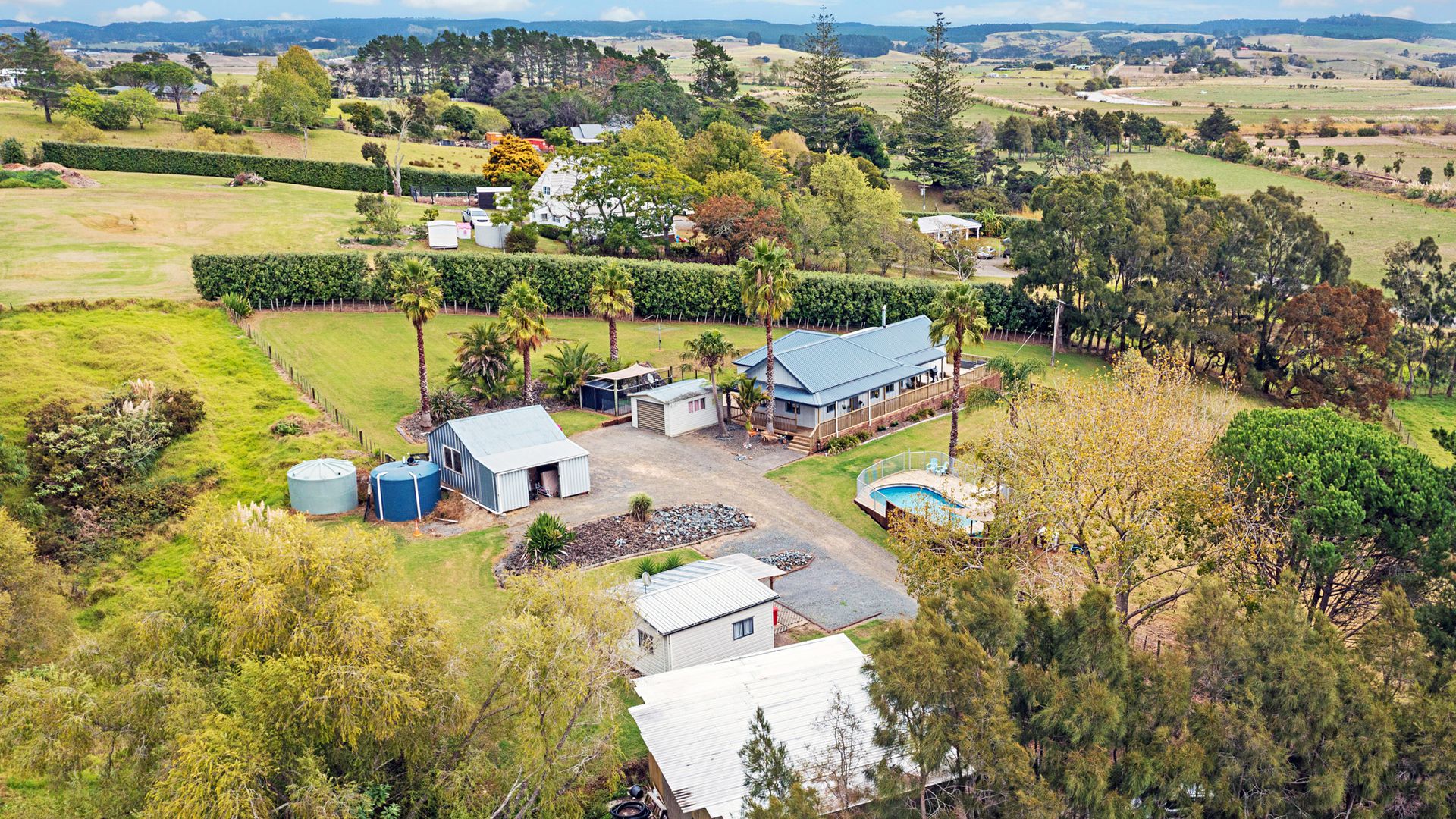 The end of an era - the siblings are ready to move on, and this lifestyle gem with pool, granny flat, sheds and land is now ready for its next lucky owner! Nestled just 5 minutes from the heart of Helensville, this exceptional lifestyle property offers the perfect blend of rural charm and modern convenience. Set on a beautifully maintained lifestyle block, this 4-bedroom home is designed for relaxed family living and effortless entertaining. Step inside the light-filled home featuring a spacious open-plan layout, a generous kitchen with ample bench space and storage, and seamless flow to multiple outdoor living areas. A wraparound deck and covered pergola create the ultimate space to soak in the stunning rural sunsets, entertain guests, or simply unwind with a glass of wine in hand.