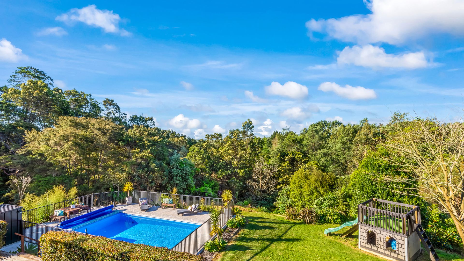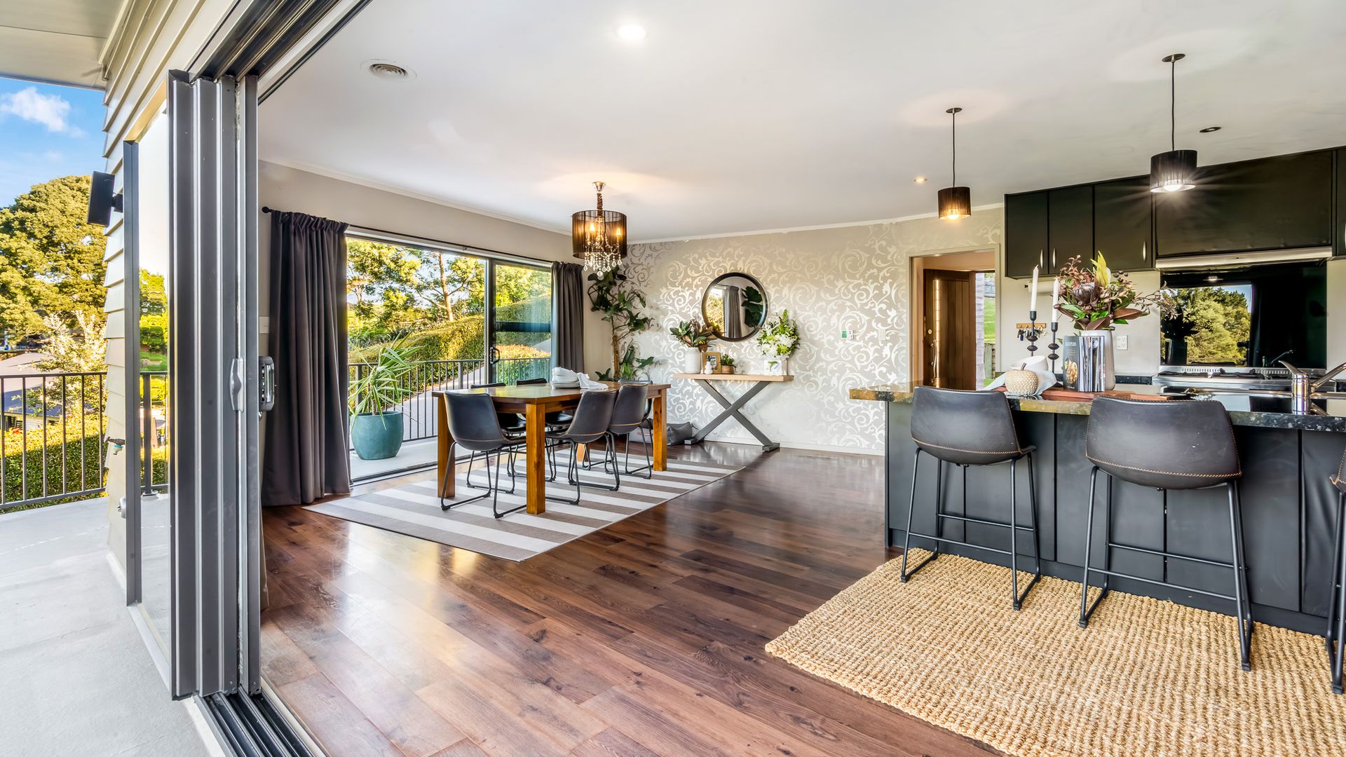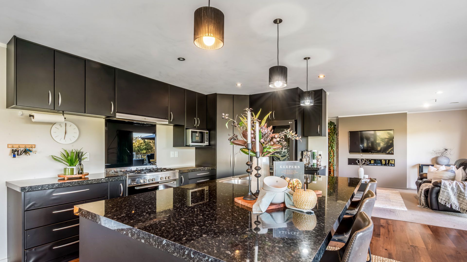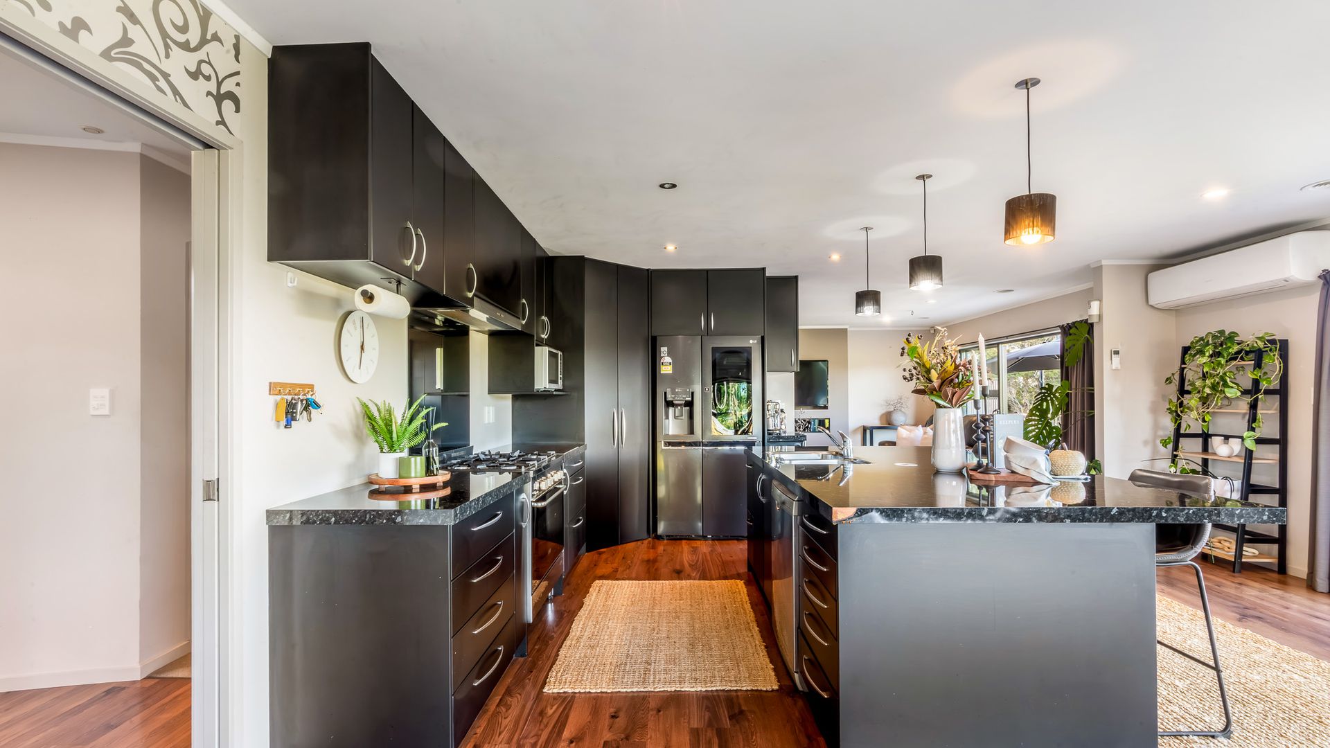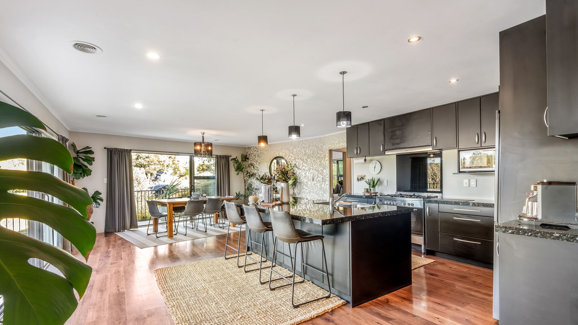 Wrapped in palms and sunshine, this stunning home captures the feeling of a permanent holiday, every single day. Blending luxury, space, and resort energy, Huntly Palms is that rare find. A four-bedroom plus office sanctuary with breathtaking views and effortless flow. From the moment you step inside, you’re met with breathtaking views that frame the native landscape like living art. Sunlight pours through the open-plan living, where the sleek, modern kitchen takes centre stage, and every space draws you outdoors to the north facing expansive deck the perfect spot to soak in the scenery year round.