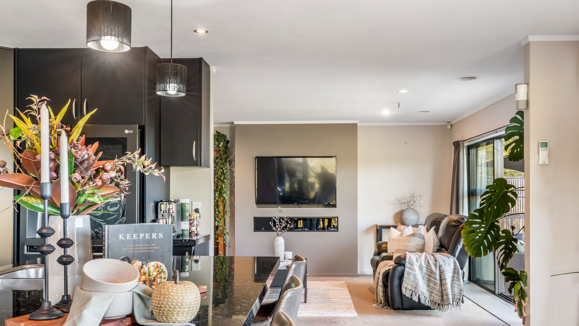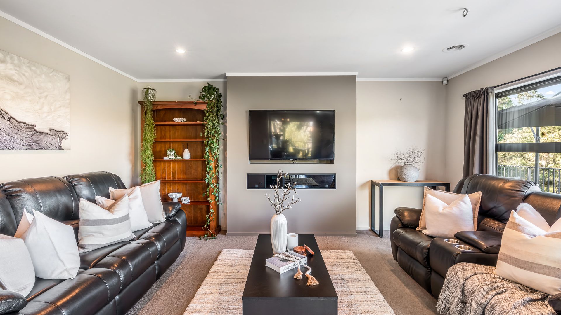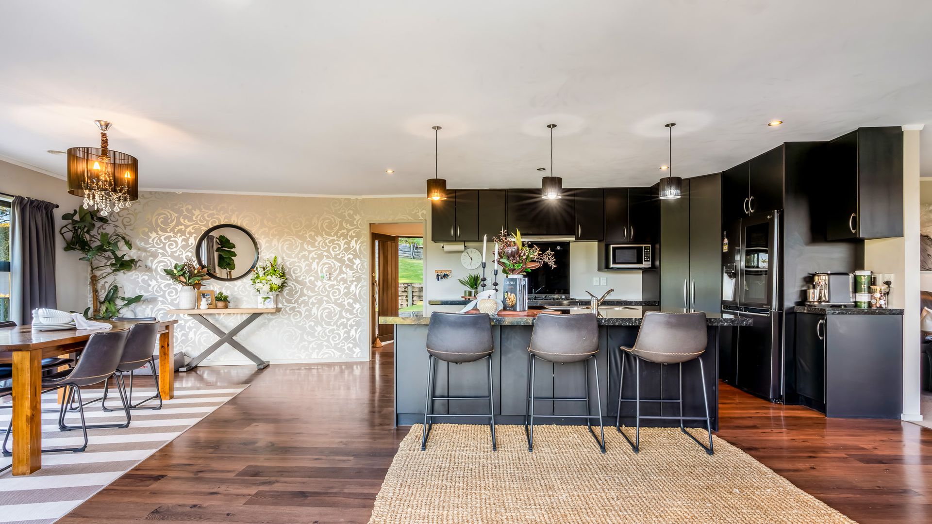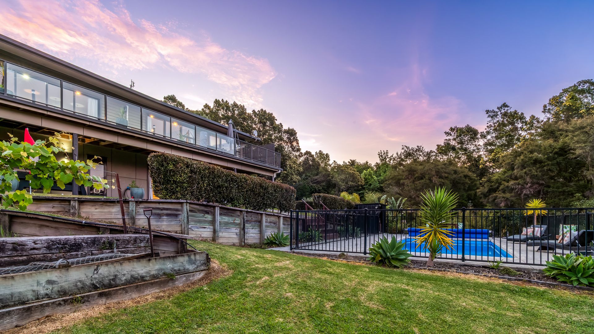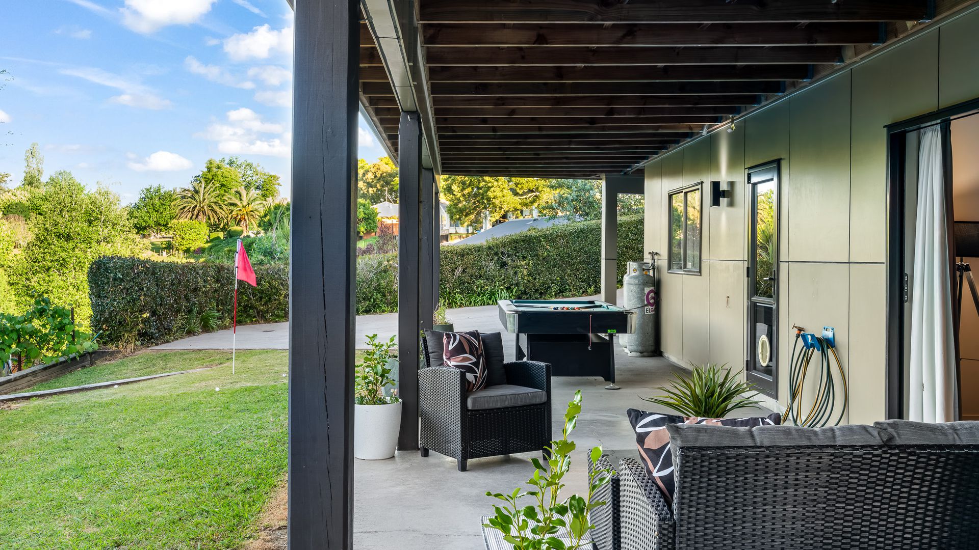 Wrapped in palms and sunshine, this stunning home captures the feeling of a permanent holiday, every single day. Blending luxury, space, and resort energy, Huntly Palms is that rare find. A four-bedroom plus office sanctuary with breathtaking views and effortless flow. From the moment you step inside, you’re met with breathtaking views that frame the native landscape like living art. Sunlight pours through the open-plan living, where the sleek, modern kitchen takes centre stage, and every space draws you outdoors to the north facing expansive deck the perfect spot to soak in the scenery year round.