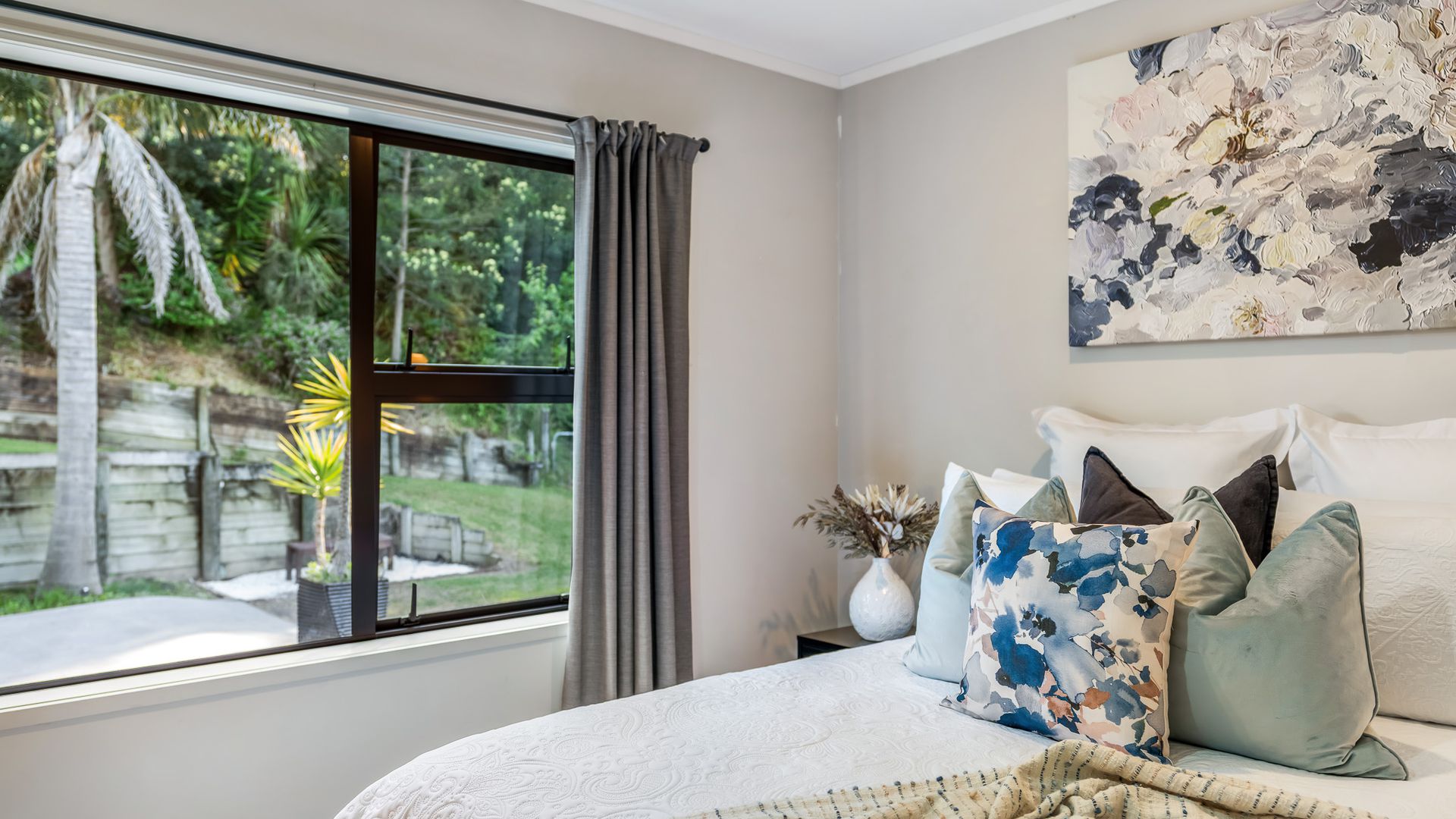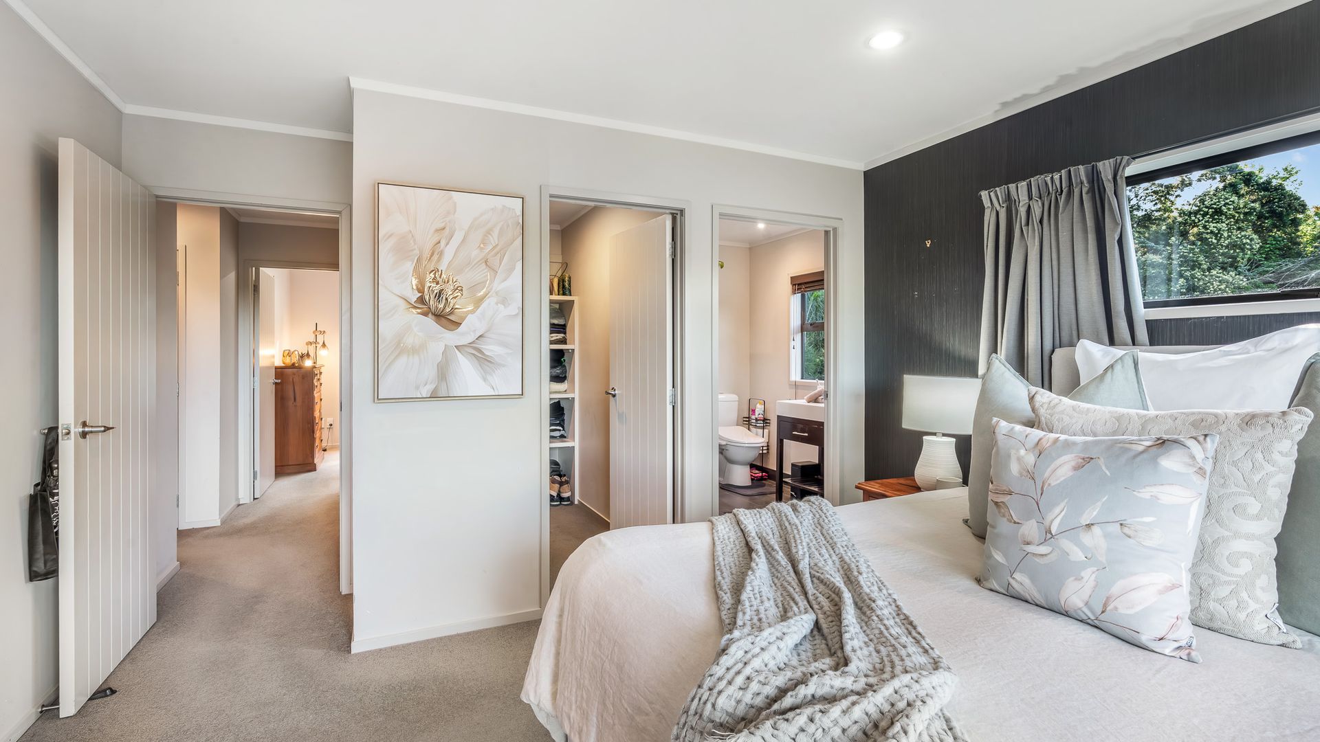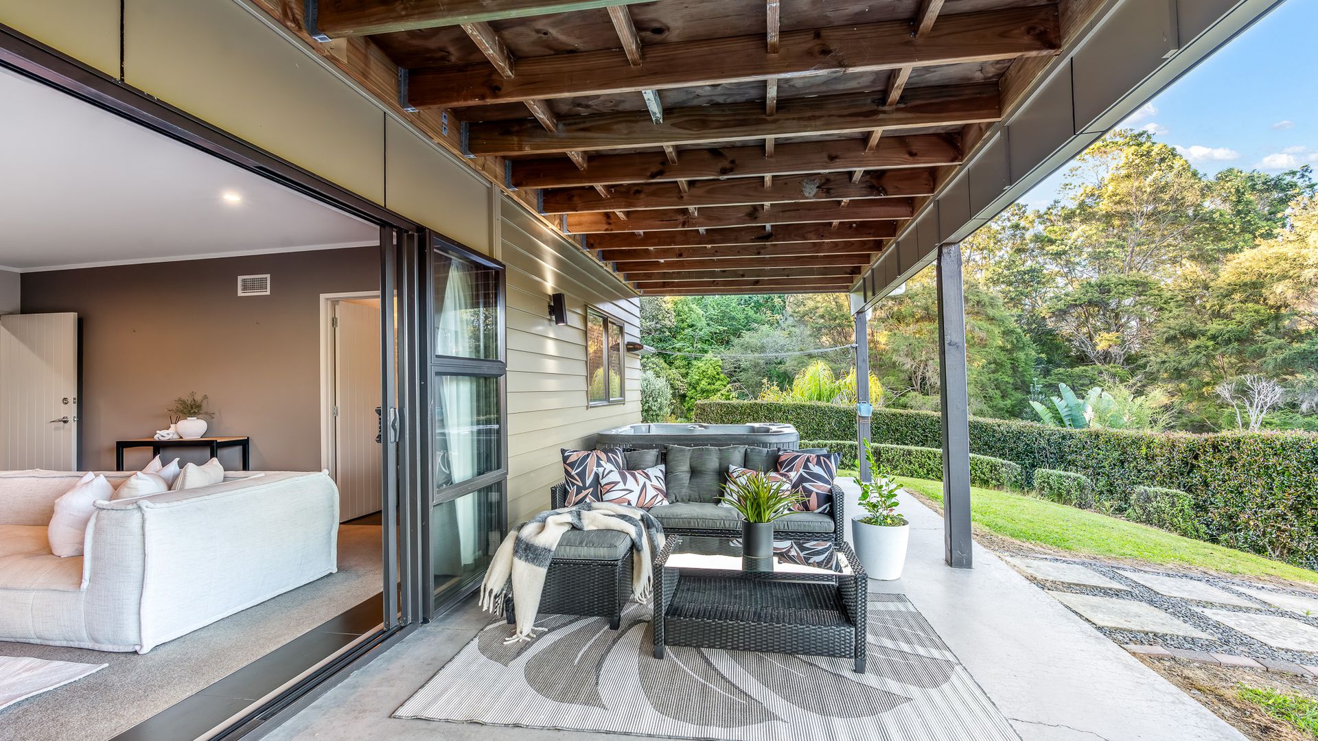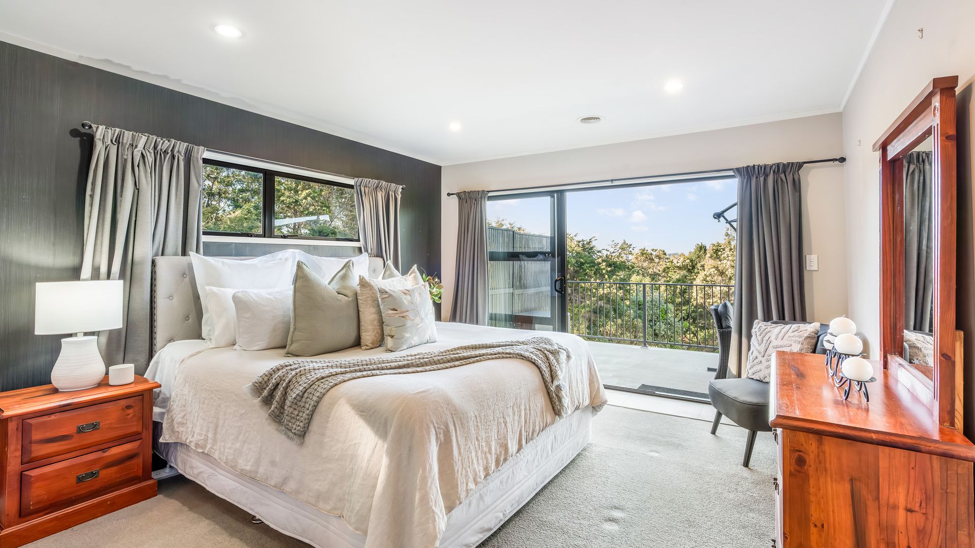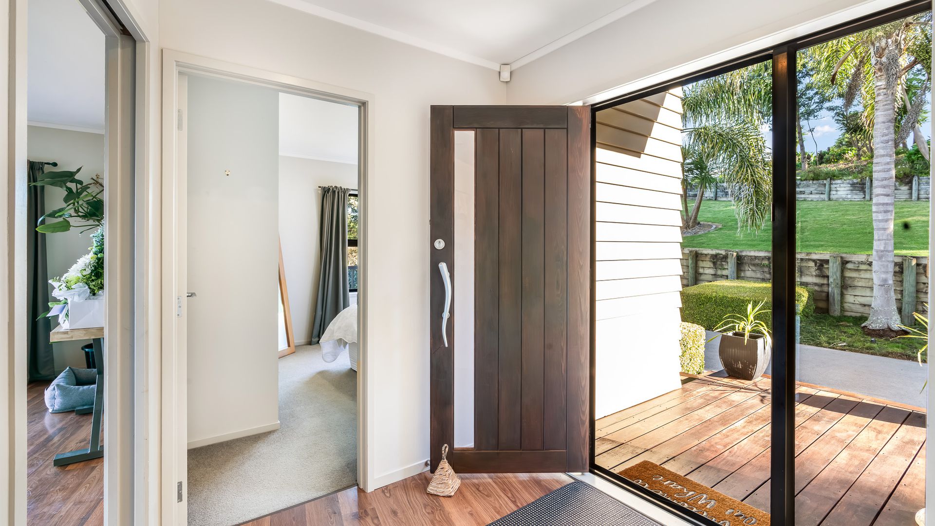 Wrapped in palms and sunshine, this stunning home captures the feeling of a permanent holiday, every single day. Blending luxury, space, and resort energy, Huntly Palms is that rare find. A four-bedroom plus office sanctuary with breathtaking views and effortless flow. From the moment you step inside, you’re met with breathtaking views that frame the native landscape like living art. Sunlight pours through the open-plan living, where the sleek, modern kitchen takes centre stage, and every space draws you outdoors to the north facing expansive deck the perfect spot to soak in the scenery year round.