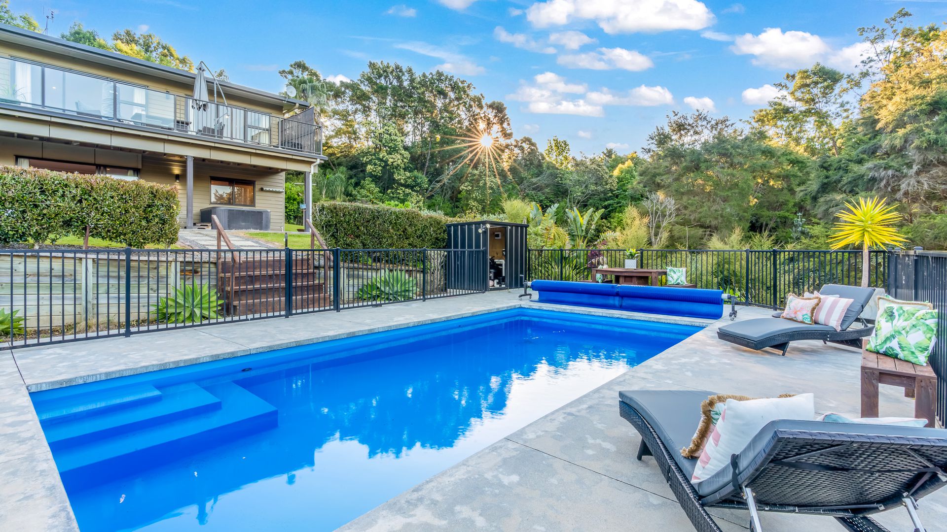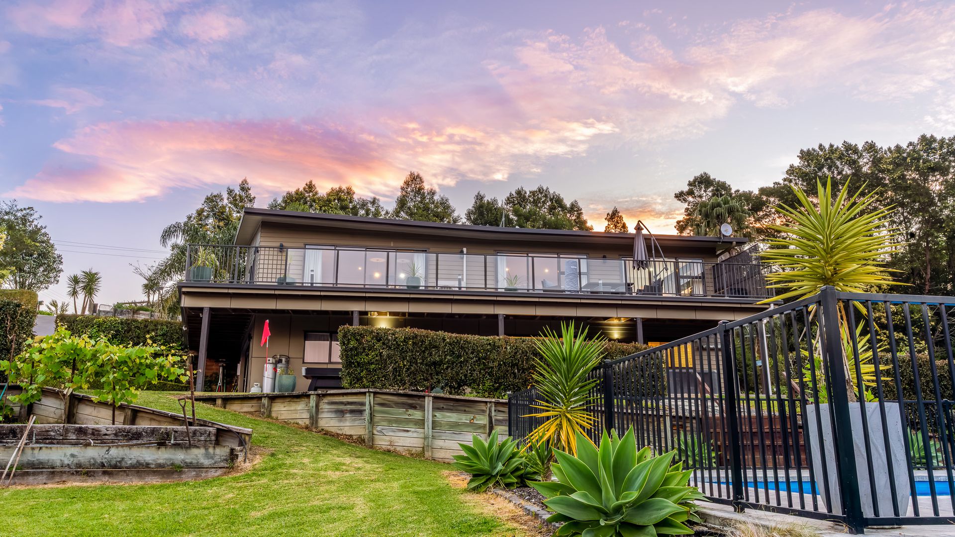 Upstairs features three bedrooms, a family bathroom with spa bath and floor-to-ceiling tiled showers, plus a dedicated office. Downstairs, the large rumpus room or large fourth bedroom plus bathroom make the ideal setup for guests, teens or extended family with its own entrance way. Outside, it’s all about lifestyle: a sparkling saltwater pool surrounded by nature, a sprawling 3,851 m² section ready for your green thumb, and plenty of lawn space where the kids and pets can play. There’s ample parking, a double internal garage, and more than enough room for the boat, trailer, or guests. This home is a space made for music, laughter, and good company. Practicality meets performance with owned solar panels, town water, bio-septic system, gas hot water and heating, 1x heat pump, fibre internet, and a large internal double garage with ample storage. - James Hardie weatherboard & Linear panels. - Ducted heating, Gas bottled - Fully fenced - Solar security light - Roof: Longrun and Coloured steel With excellent connectivity to major centres. From your front door at 161 Kimihia Road, you’re only about 20 – 25 minutes’ drive to Te Rapa Hamilton, around 38 minutes to Morrinsville and under an hour to Auckland At Huntly Palms, every day feels like an escape, your own luxury resort, right at home.