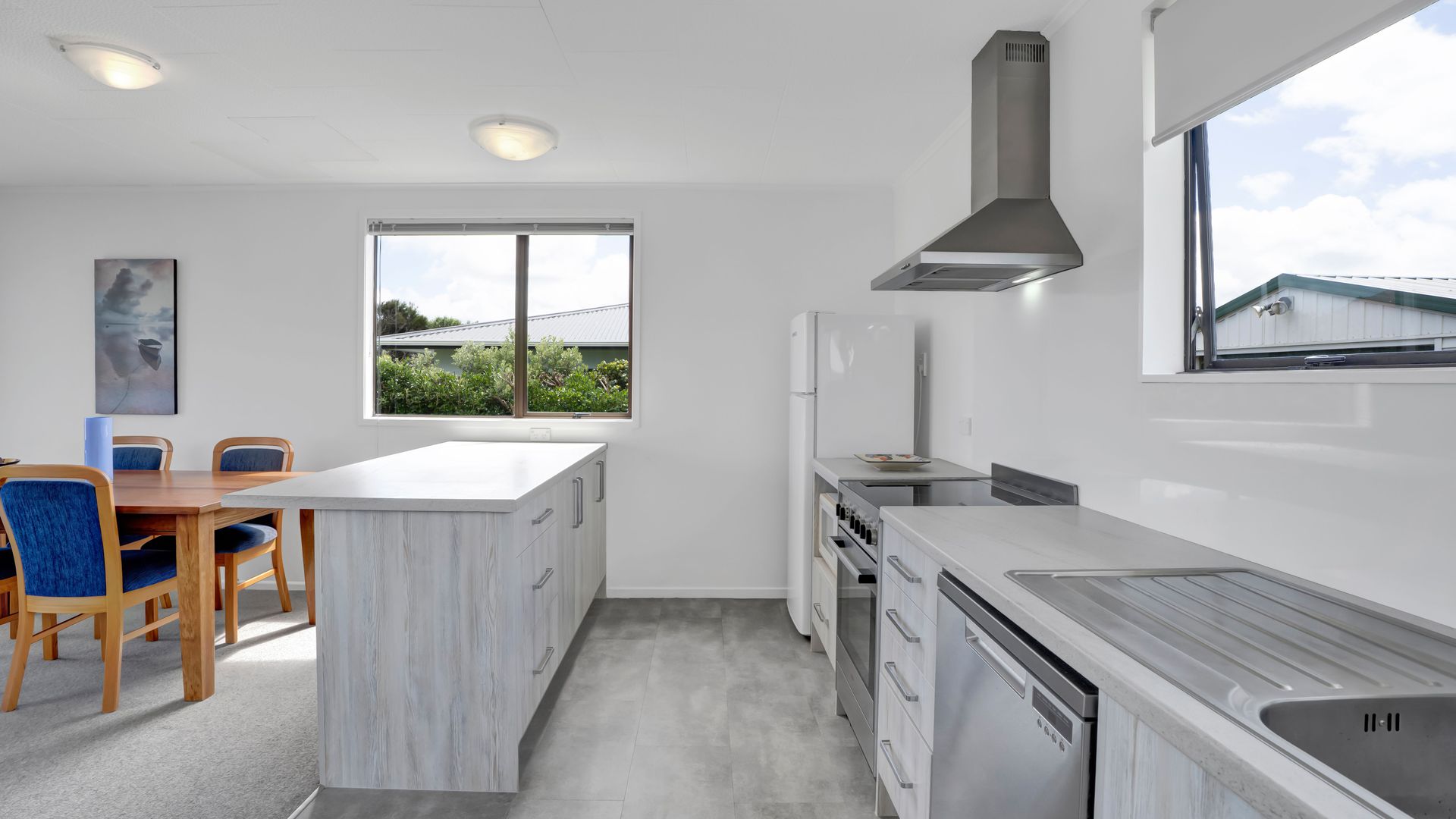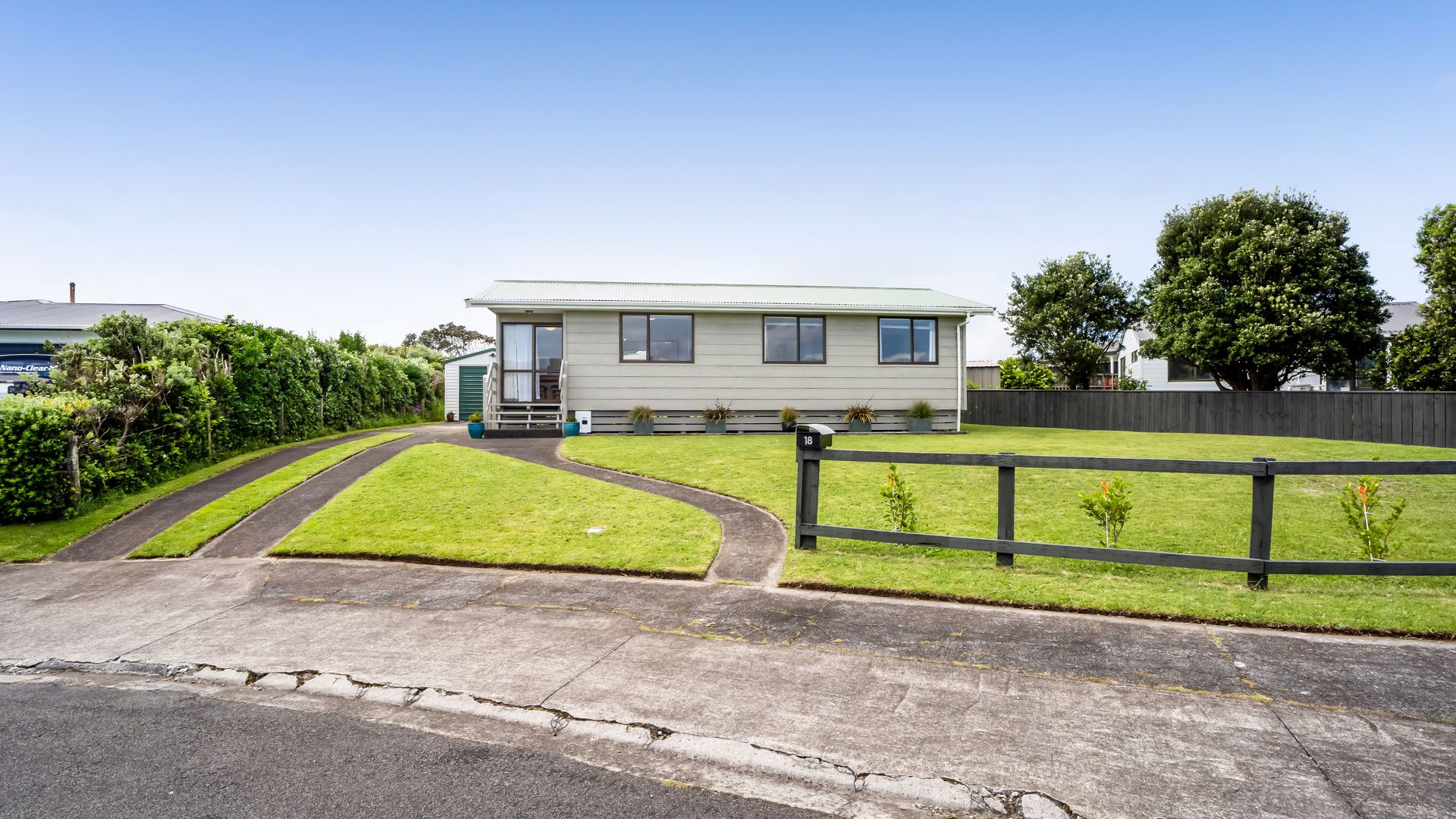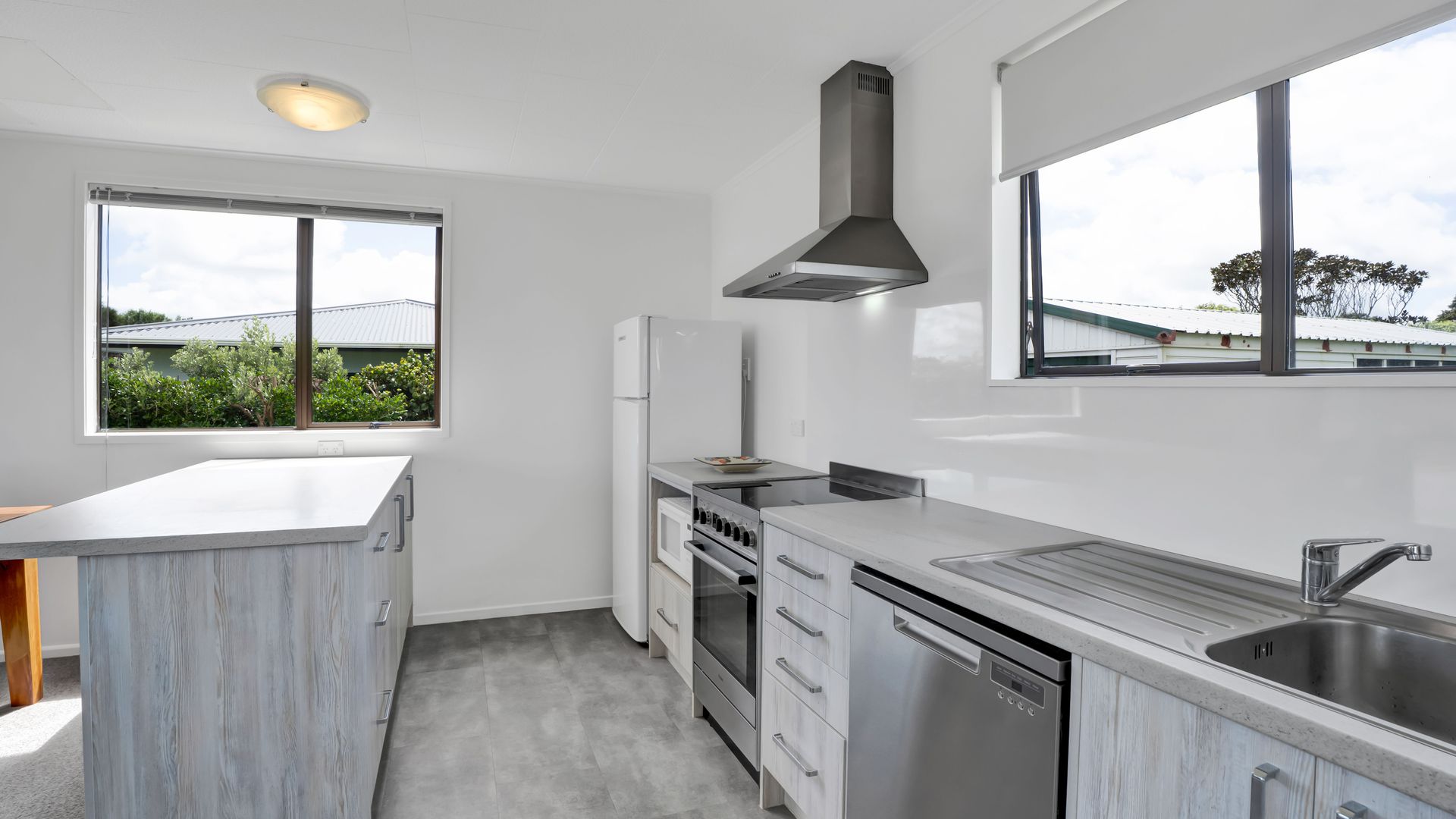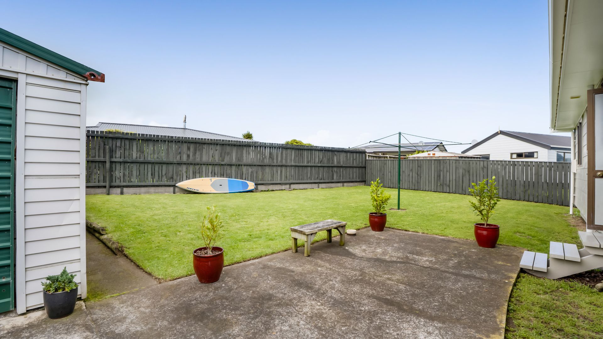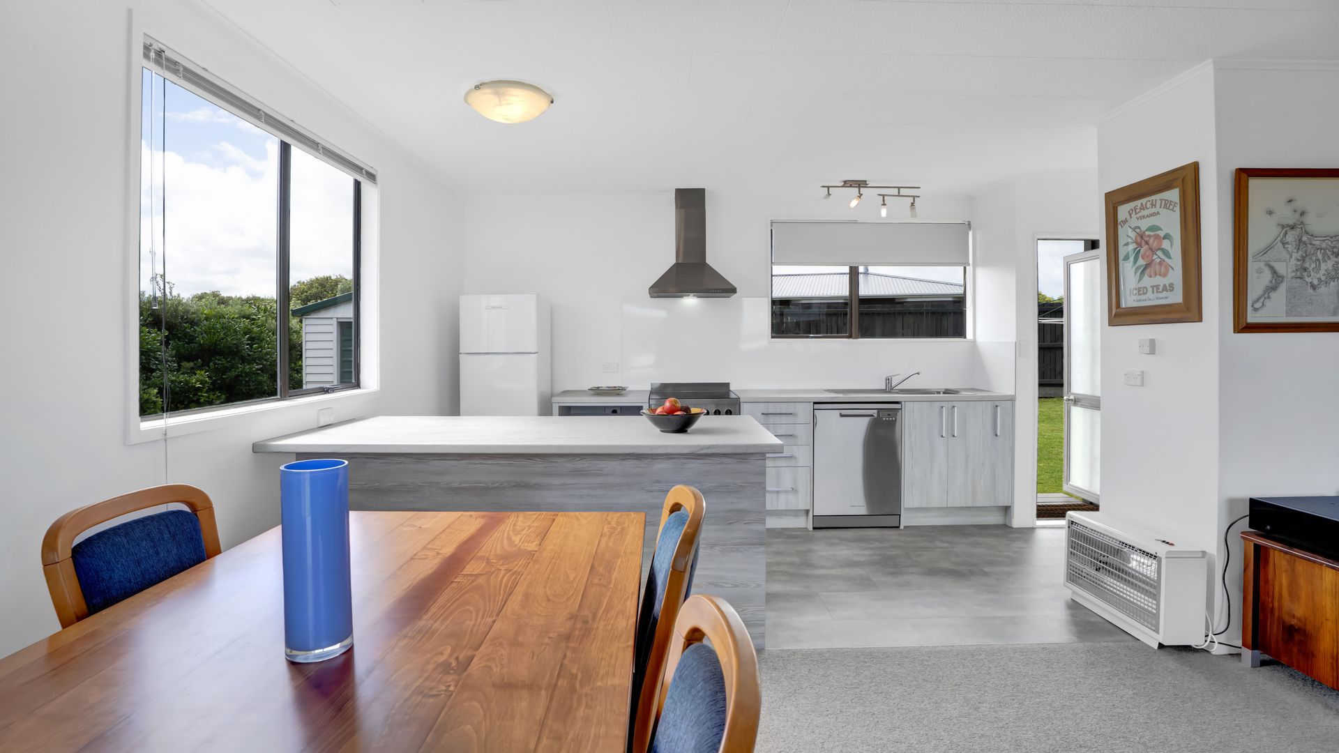 There’s a single powered garage for the boards, the bikes and the chilly bin, and that cul-de-sac location? Quiet, friendly and just a short flip-flop from Middleton Bay.