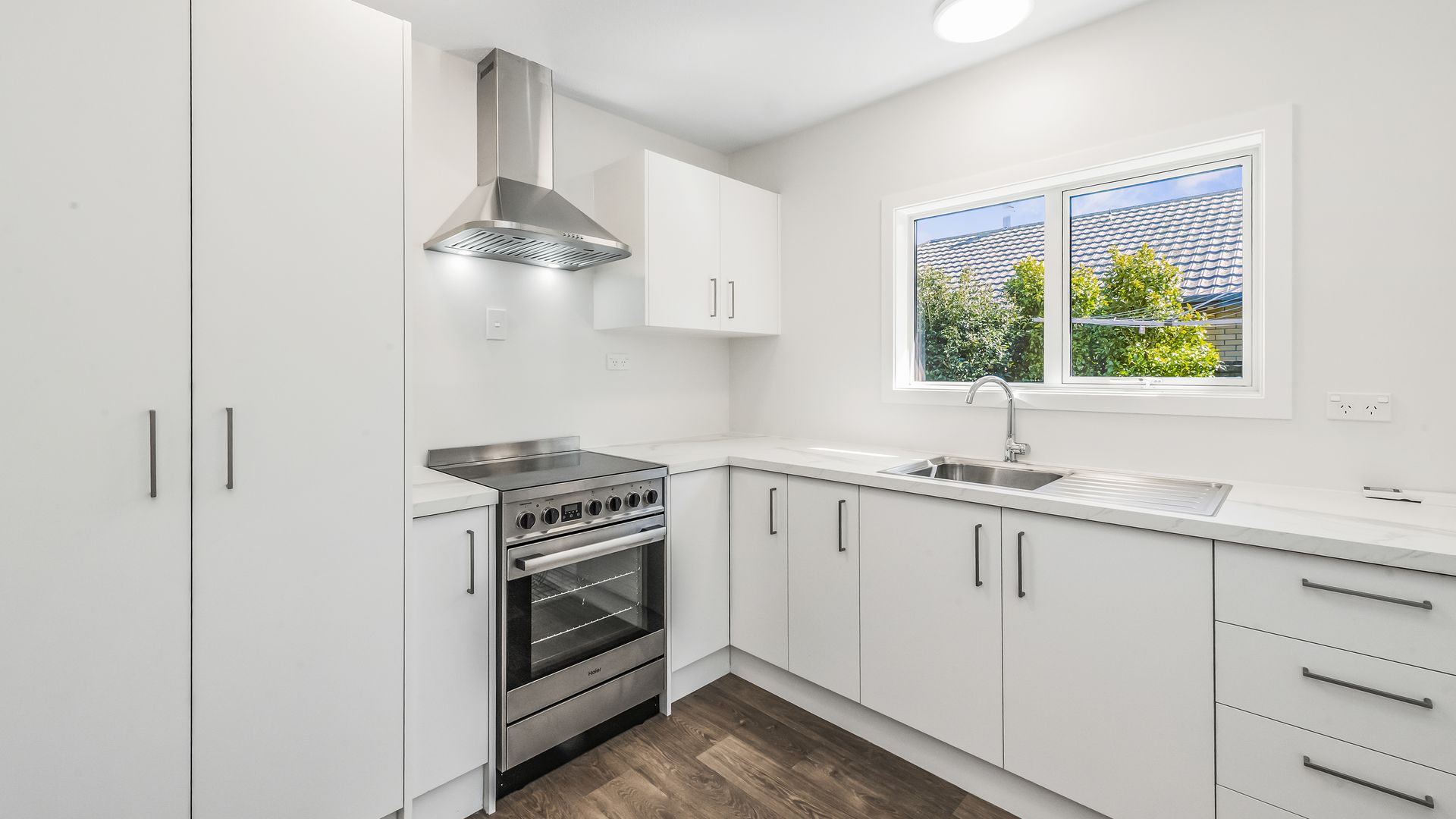 The open plan living and dining area is warm and inviting with a Mitsubishi heat pump, flowing through to a brand new kitchen complete with freestanding oven/hob and rangehood. Both bedrooms include built-in wardrobes, while the bathroom has been refreshed with new flooring, heater and heated towel rail. A separate toilet, updated laundry with new super tub and storage cupboard, plus freshly painted single garage add to the practicality.
