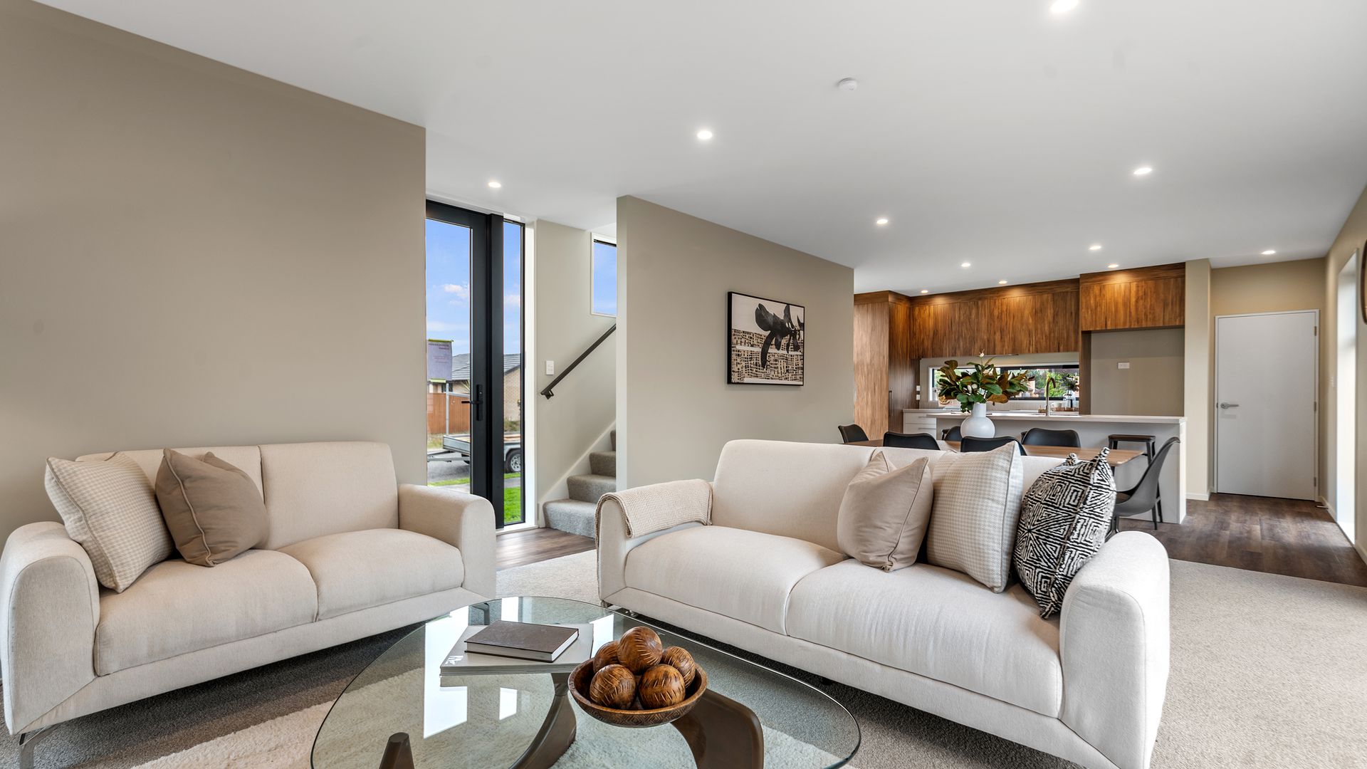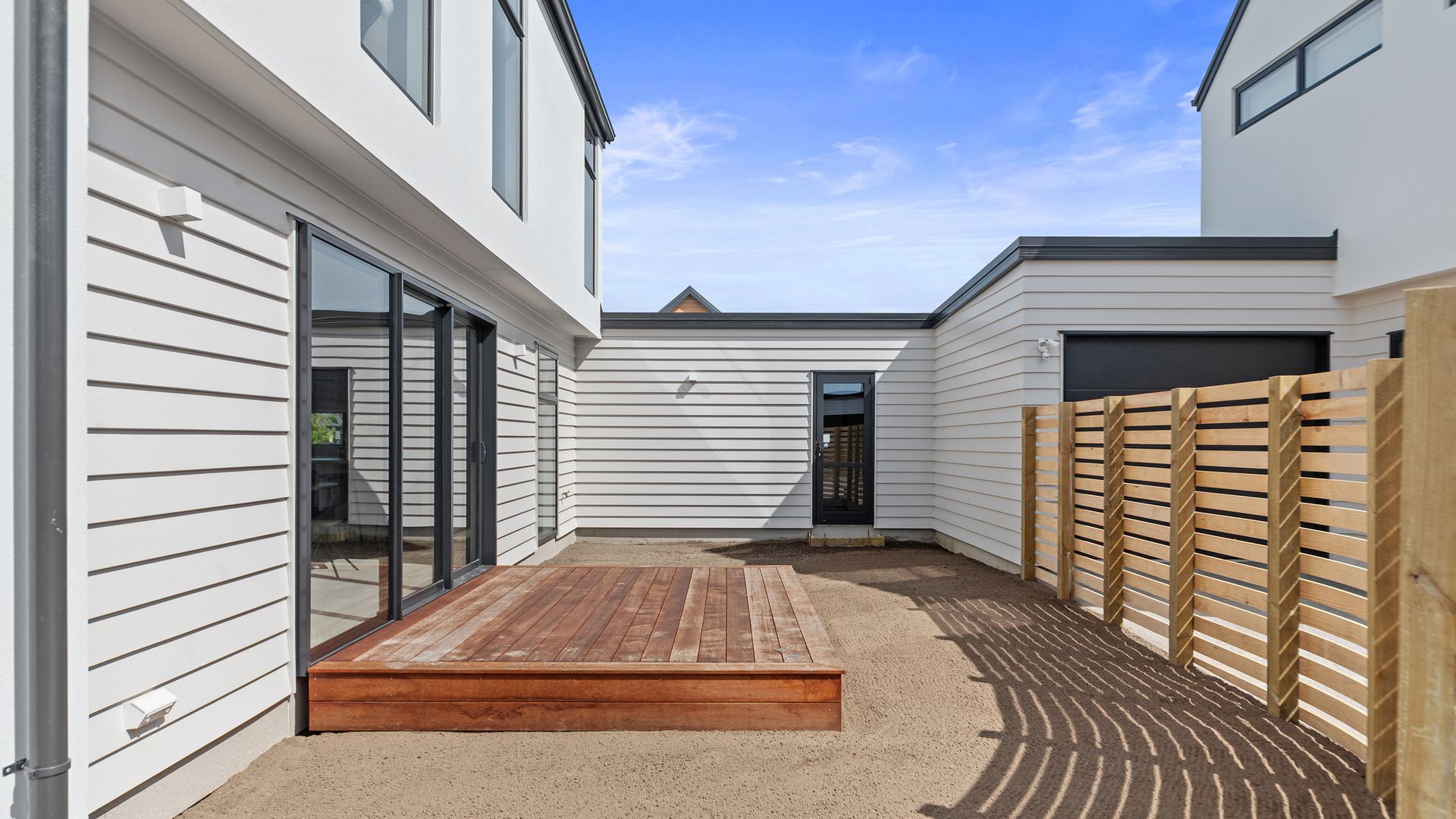 Situated on quiet George Street handy to the heart of Rolleston finds these four very well appointed three bedroom homes constructed by respected local builders. Perfect for the first home buyer these townhouses are designed with ease of living in mind with eye catching kitchens overlooking an open plan dining and living area which offers outdoor living via sliding doors to a sun soaked deck. Upstairs there are three double bedrooms and two bathrooms including the ensuite off the master and each house has three WCs and great storage.