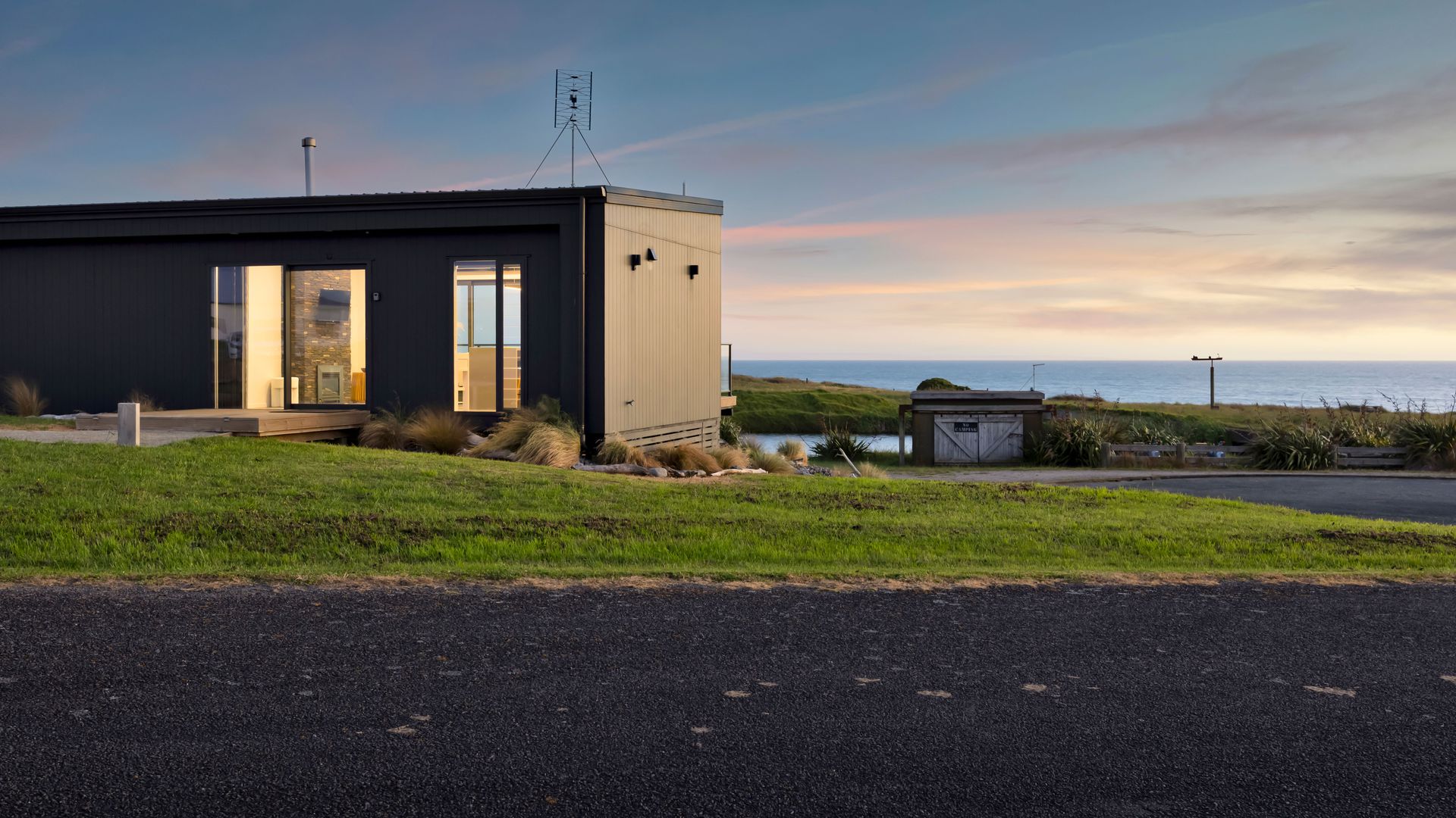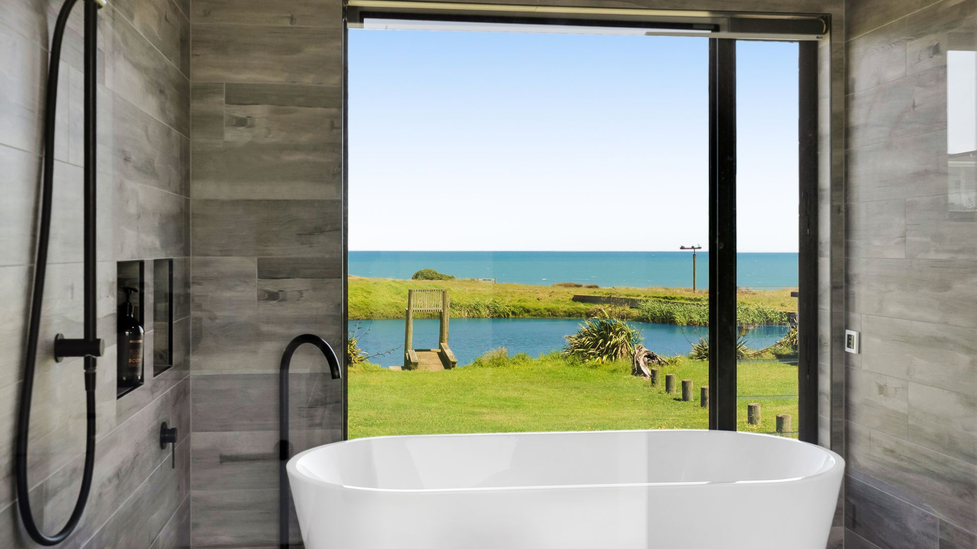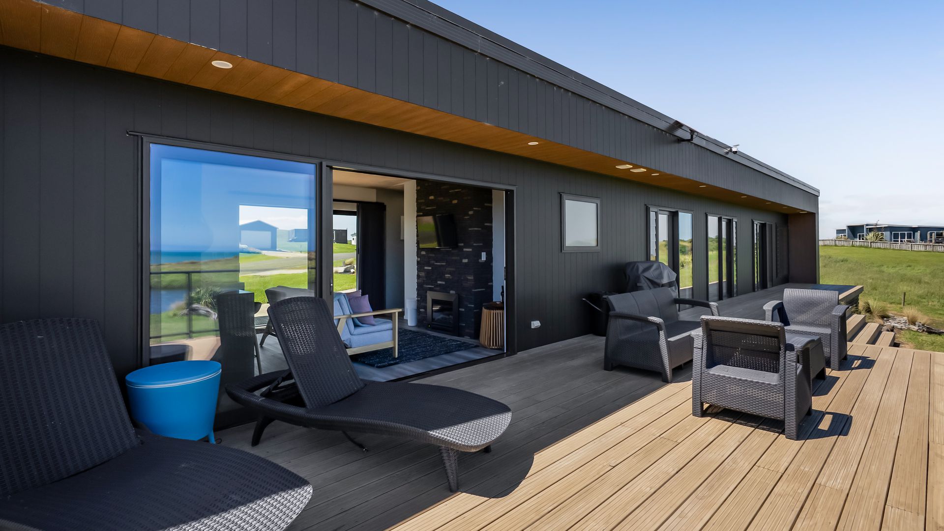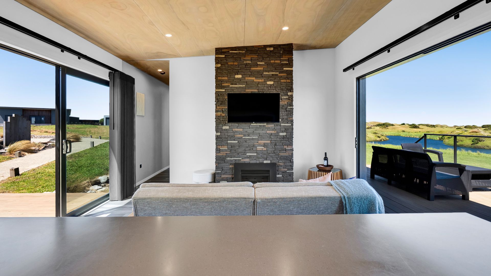 From the outside, the lodge blends nicely into its surrounding landscape through the combination of black smooth and woodgrain BCG Duragroove and extensive joinery that captures uninterrupted sea and lake views, while three generously sized bedrooms offer direct access to the expansive deck. Every room invites the outdoors in, creating seamless flow and effortless serenity. Inside, refined comfort meets effortless style. From the designer kitchen and gas fireplace to the opulent freestanding bath, every element speaks of quiet luxury. Whether you’re entertaining on the deck or curled up with a glass of wine beneath starry skies, this is a space that adapts to your mood and your moment. Step outside to a lifestyle like no other. From early morning swims in the lake to fishing and surfing just steps away, Waipipi offers true freedom, for both body and soul. Adventurers will love exploring nearby cathedral caves and waterfalls, while the inland views stretch as far as Mt Ruapehu and Mt Taranaki on a clear day. This is more than a beach home, it’s a private coastal retreat designed to restore, reconnect, and inspire. No traffic. No noise. Just nature at its most breathtaking… and luxury at its most thoughtful. “Every part of this lodge was designed to let you relax and take in the magic of the coast.” Blacksands Oceanview Lodge has had extensive bookings since its debut on Airbnb, Booking.com and Bookabach, racking up five-star reviews and even a 2025 Traveller Review Award. Available to purchase now, fully furnished! Whether you’re looking for a romantic retreat, a family escape, or a high-end investment, this home at Waipipi Beach offers something truly rare.