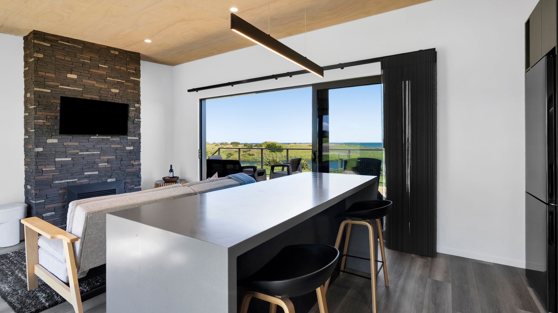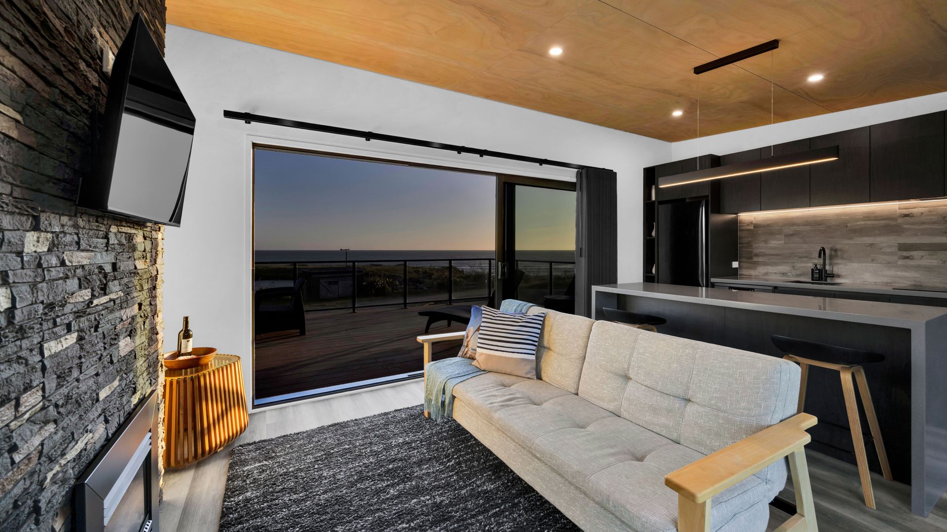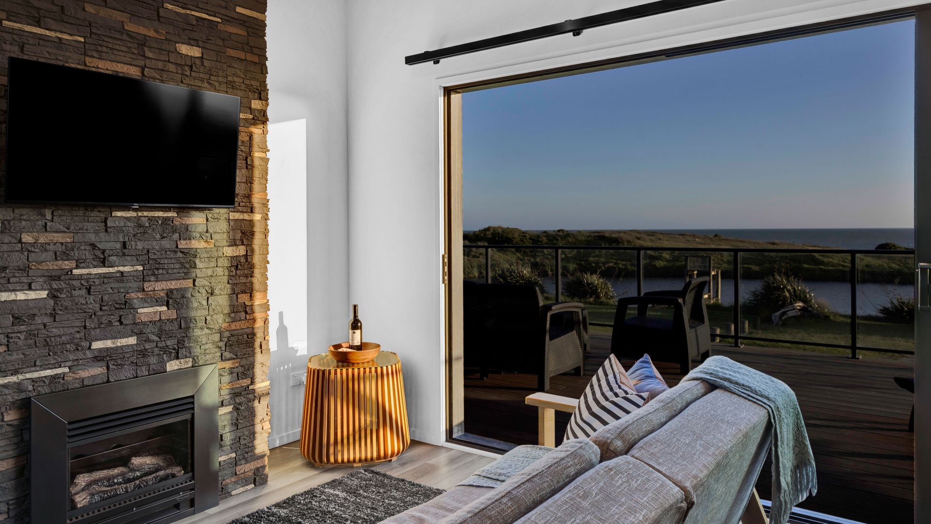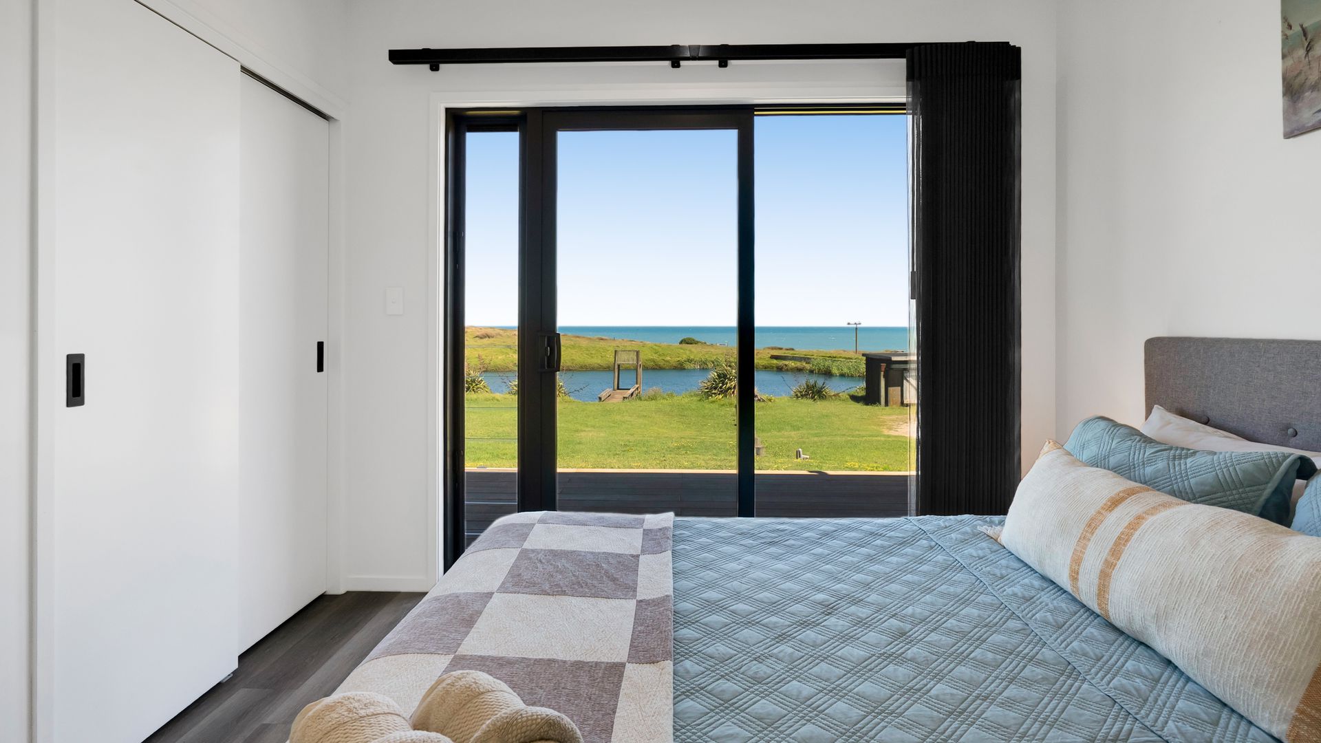 From the outside, the lodge blends nicely into its surrounding landscape through the combination of black smooth and woodgrain BCG Duragroove and extensive joinery that captures uninterrupted sea and lake views, while three generously sized bedrooms offer direct access to the expansive deck. Every room invites the outdoors in, creating seamless flow and effortless serenity. Inside, refined comfort meets effortless style. From the designer kitchen and gas fireplace to the opulent freestanding bath, every element speaks of quiet luxury. Whether you’re entertaining on the deck or curled up with a glass of wine beneath starry skies, this is a space that adapts to your mood and your moment. Step outside to a lifestyle like no other. From early morning swims in the lake to fishing and surfing just steps away, Waipipi offers true freedom, for both body and soul. Adventurers will love exploring nearby cathedral caves and waterfalls, while the inland views stretch as far as Mt Ruapehu and Mt Taranaki on a clear day. This is more than a beach home, it’s a private coastal retreat designed to restore, reconnect, and inspire. No traffic. No noise. Just nature at its most breathtaking… and luxury at its most thoughtful. “Every part of this lodge was designed to let you relax and take in the magic of the coast.” Blacksands Oceanview Lodge has had extensive bookings since its debut on Airbnb, Booking.com and Bookabach, racking up five-star reviews and even a 2025 Traveller Review Award. Available to purchase now, fully furnished! Whether you’re looking for a romantic retreat, a family escape, or a high-end investment, this home at Waipipi Beach offers something truly rare.
