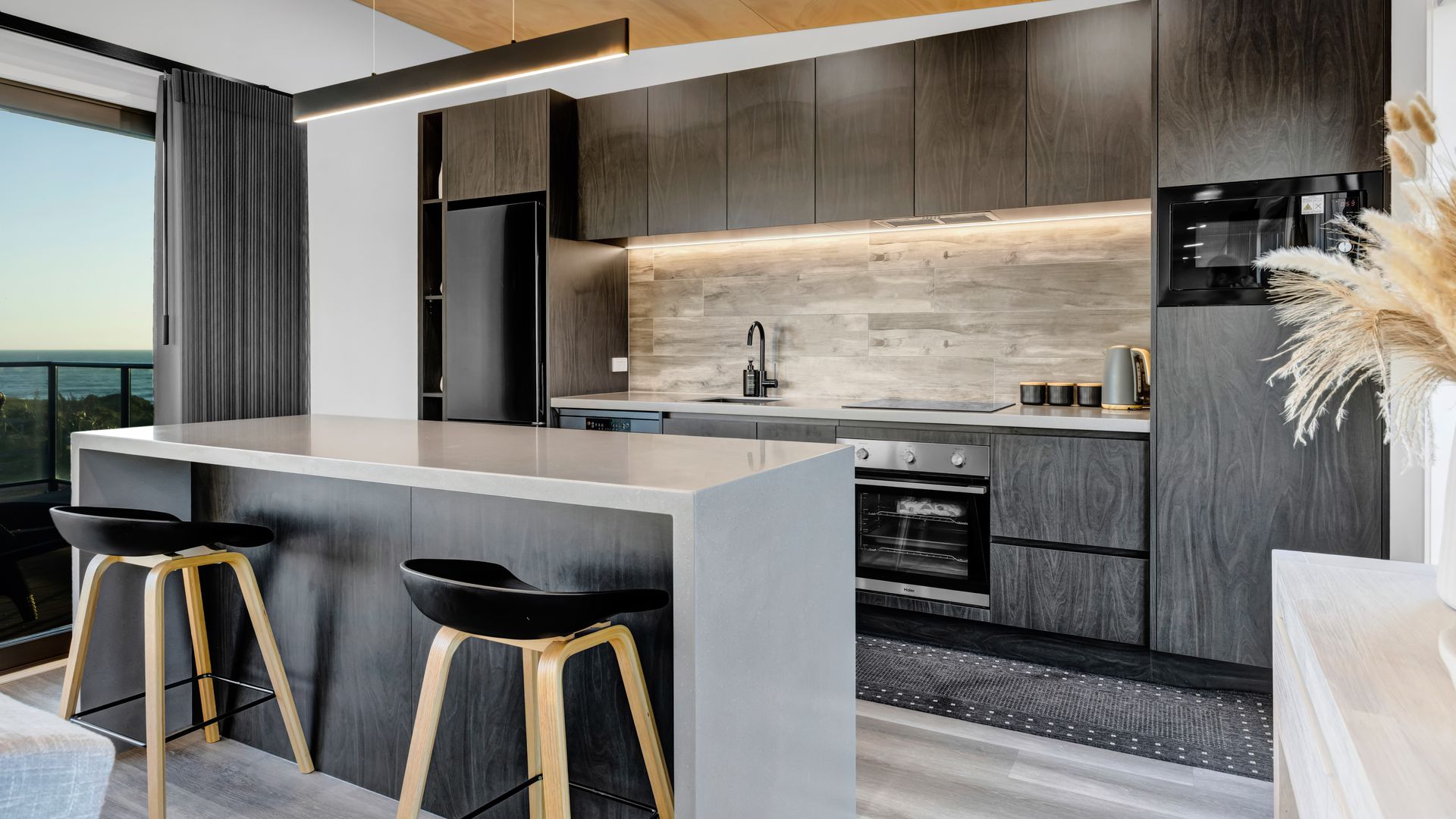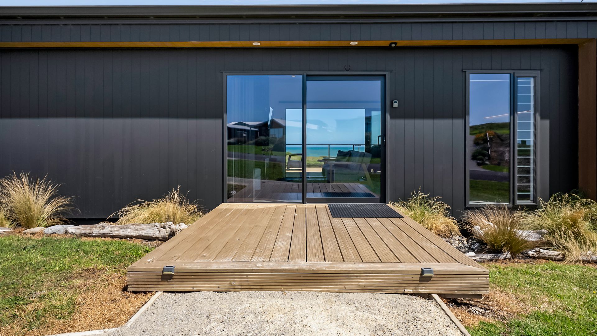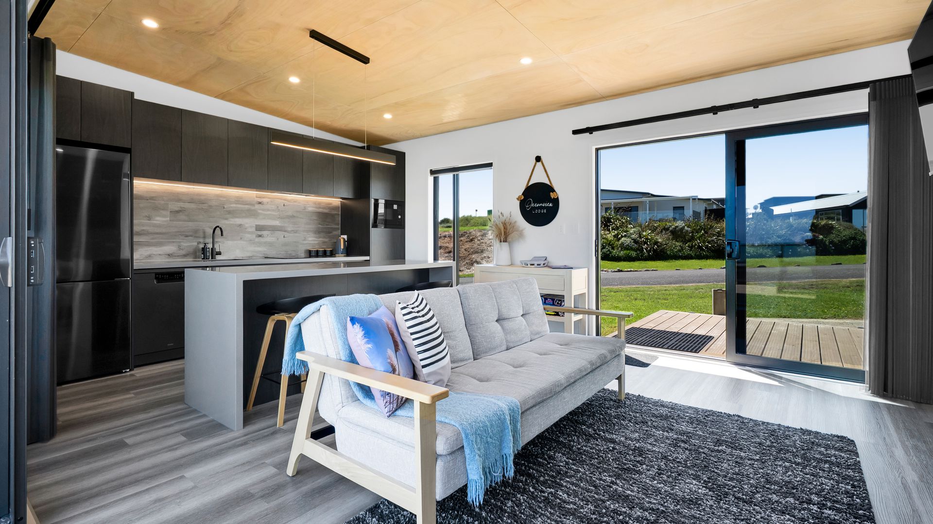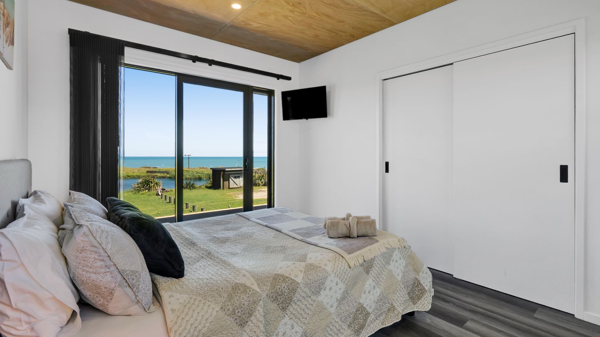From the outside, the lodge blends nicely into its surrounding landscape through the combination of black smooth and woodgrain BCG Duragroove and extensive joinery that captures uninterrupted sea and lake views, while three generously sized bedrooms offer direct access to the expansive deck. Every room invites the outdoors in, creating seamless flow and effortless serenity. Inside, refined comfort meets effortless style. From the designer kitchen and gas fireplace to the opulent freestanding bath, every element speaks of quiet luxury. Whether you’re entertaining on the deck or curled up with a glass of wine beneath starry skies, this is a space that adapts to your mood and your moment. Step outside to a lifestyle like no other. From early morning swims in the lake to fishing and surfing just steps away, Waipipi offers true freedom, for both body and soul. Adventurers will love exploring nearby cathedral caves and waterfalls, while the inland views stretch as far as Mt Ruapehu and Mt Taranaki on a clear day. This is more than a beach home, it’s a private coastal retreat designed to restore, reconnect, and inspire. No traffic. No noise. Just nature at its most breathtaking… and luxury at its most thoughtful. “Every part of this lodge was designed to let you relax and take in the magic of the coast.” Blacksands Oceanview Lodge has had extensive bookings since its debut on Airbnb, Booking.com and Bookabach, racking up five-star reviews and even a 2025 Traveller Review Award. Available to purchase now, fully furnished! Whether you’re looking for a romantic retreat, a family escape, or a high-end investment, this home at Waipipi Beach offers something truly rare.