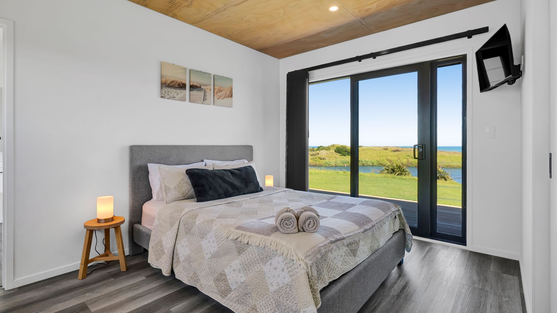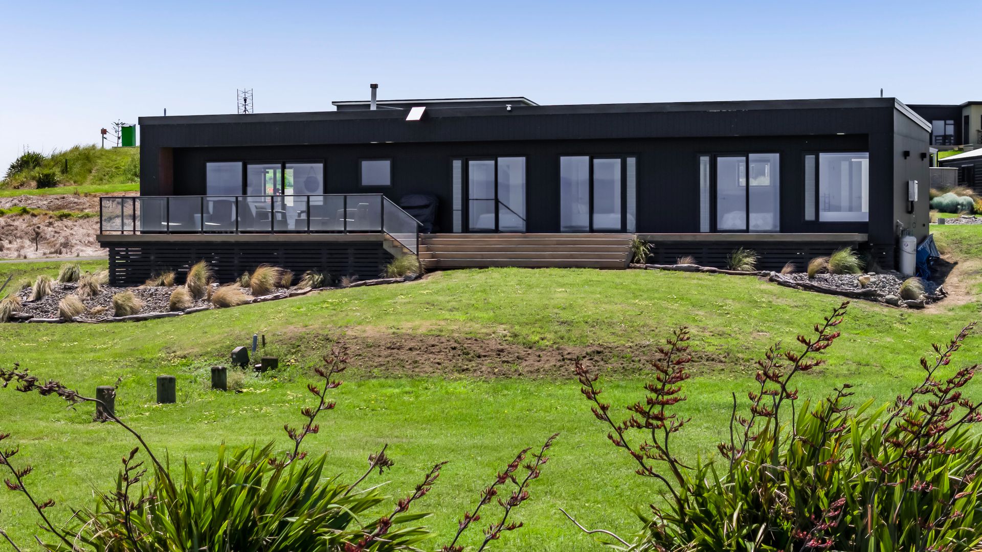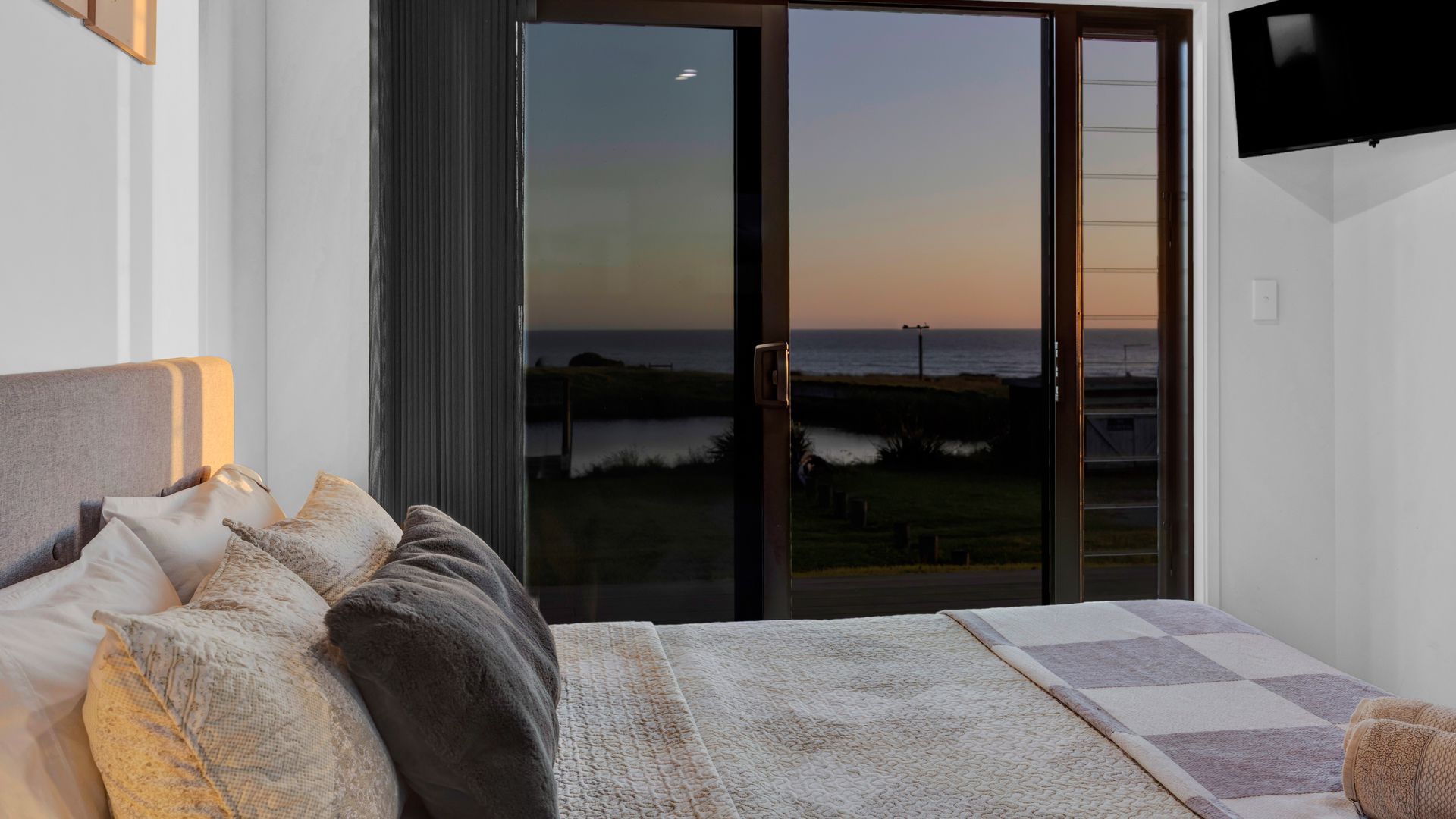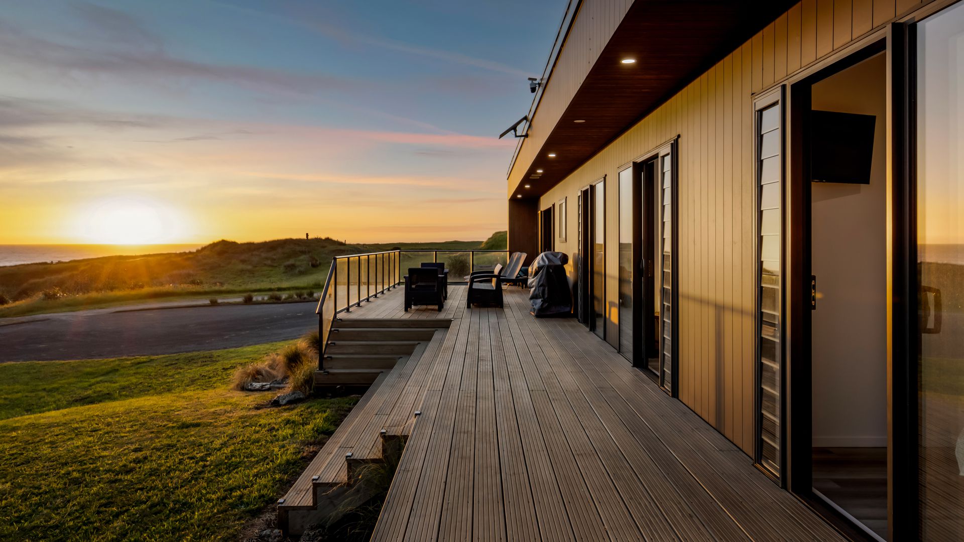From the outside, the lodge blends nicely into its surrounding landscape through the combination of black smooth and woodgrain BCG Duragroove and extensive joinery that captures uninterrupted sea and lake views, while three generously sized bedrooms offer direct access to the expansive deck. Every room invites the outdoors in, creating seamless flow and effortless serenity. Inside, refined comfort meets effortless style. From the designer kitchen and gas fireplace to the opulent freestanding bath, every element speaks of quiet luxury. Whether you’re entertaining on the deck or curled up with a glass of wine beneath starry skies, this is a space that adapts to your mood and your moment. Step outside to a lifestyle like no other. From early morning swims in the lake to fishing and surfing just steps away, Waipipi offers true freedom, for both body and soul. Adventurers will love exploring nearby cathedral caves and waterfalls, while the inland views stretch as far as Mt Ruapehu and Mt Taranaki on a clear day. This is more than a beach home, it’s a private coastal retreat designed to restore, reconnect, and inspire. No traffic. No noise. Just nature at its most breathtaking… and luxury at its most thoughtful. “Every part of this lodge was designed to let you relax and take in the magic of the coast.” Blacksands Oceanview Lodge has had extensive bookings since its debut on Airbnb, Booking.com and Bookabach, racking up five-star reviews and even a 2025 Traveller Review Award. Available to purchase now, fully furnished! Whether you’re looking for a romantic retreat, a family escape, or a high-end investment, this home at Waipipi Beach offers something truly rare.