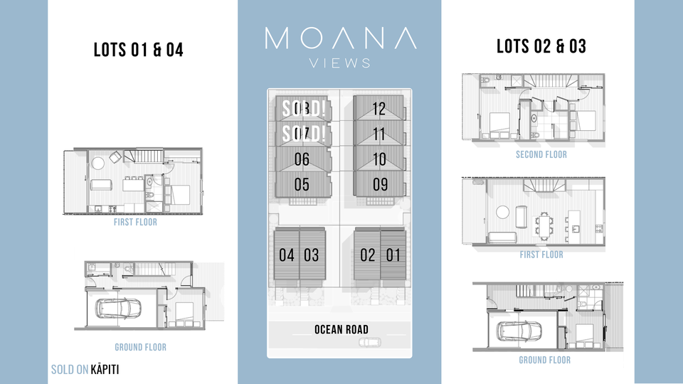 2-BED, 2-BATH TOWNHOUSES | FREEHOLD TITLES | NO BODY CORPORATE FEES Moana Views is a 12-townhouse development at 23-25 Ocean Road in the heart of Paraparaumu. With construction starting soon, there are 2-bedroom, 2-bathroom or 3-bedroom, 3-bathroom options. With each on their own freehold title – you get the security of a lock-up and leave without having to deal with body corporate fees. This is your answer if you have been questioning how to downsize without compromise! Just 200 metres from the beach, there are six architecturally designed two-bedroom, two-bathroom townhouses (2 already sold).