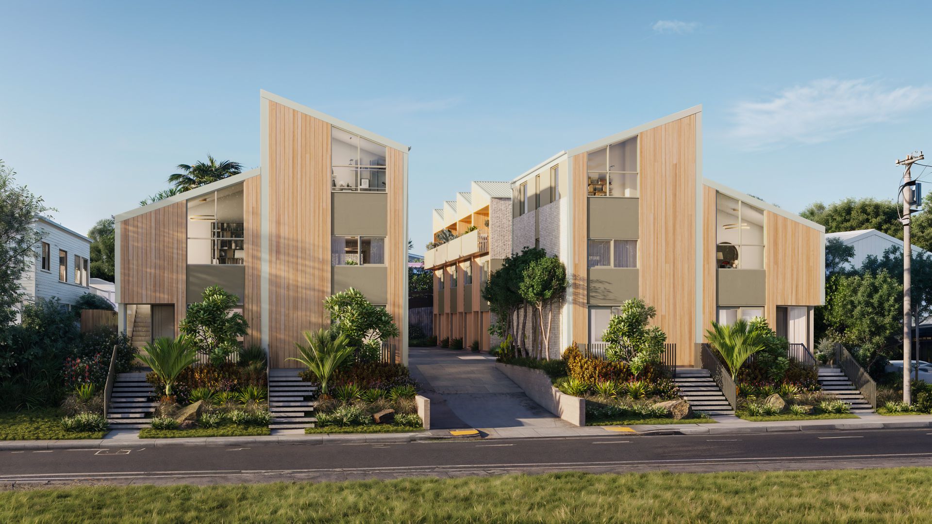 Just 200 metres from the beach, there are six architecturally designed three-bedroom, three-bathroom townhouses.