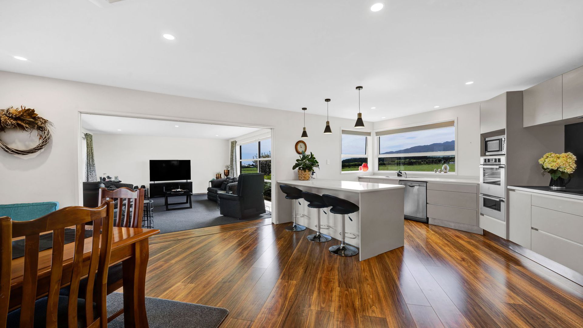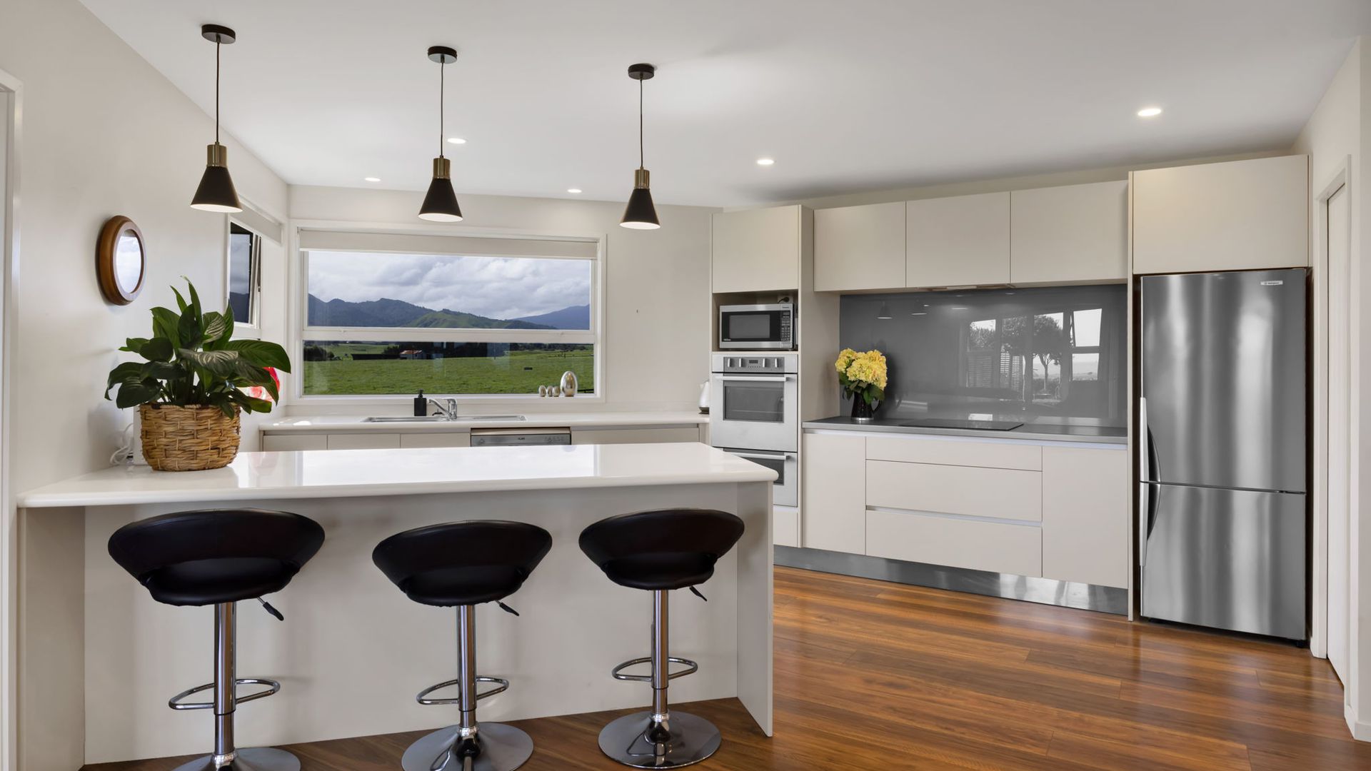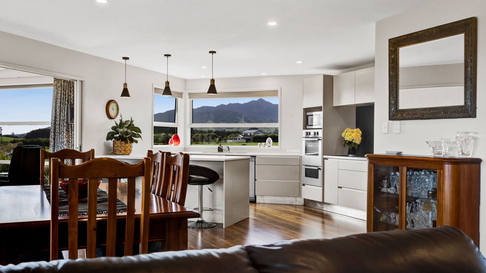 At the heart of the home lies a stunning open-plan kitchen, dining, and living area, a bright, inviting space where family and friends can gather with ease. The seamless flow to the outdoors makes entertaining a joy, while the thoughtfully designed kitchen ensures everyday living is both stylish and practical. A separate formal lounge offers a quiet haven to unwind, and an additional flexible living area can easily transform into a home office, gym, reading nook, or playroom, whatever best suits your lifestyle. The master suite is a private retreat, complete with a generous walk-in wardrobe and an elegant ensuite, while three additional bedrooms provide ample space for family or guests. Both bathrooms feature underfloor heating for that extra touch of comfort, and a separate WC adds everyday convenience. The home also includes a well-appointed laundry with internal access to the triple-car garage, which offers abundant storage and a versatile loft space above, perfect for hobbies or seasonal items. Step outside and the magic continues. The property is perfectly set up for those who love space, with well-fenced paddocks ideal for stock or horses, and three versatile sheds to accommodate every need. There’s a two-bay shed on the top paddock, a 10m x 11m powered shed with a concrete pad, and a 9m x 3.6m powered shed, also on a concrete base, ideal for tools, machinery, or creative projects. Whether you’re a hobby farmer, tradesperson, or simply appreciate room to spread out, this property has you covered. And then there’s the river, your own natural playground. With a boundary that opens to a private swimming hole, it’s the perfect spot for cooling off on warm summer days, picnicking with the family, or simply soaking in the serenity of nature. It’s a touch of paradise that makes this property truly one of a kind. Combining modern design, generous proportions, and a breathtaking natural setting, this home delivers the best of both worlds, peaceful rural living within easy reach of the coast, village cafés, schools, and city conveniences. From your morning coffee overlooking the mountain to evenings spent watching the sun dip into the sea, every moment here feels like a getaway. This is more than just a home, it’s a lifestyle, a sanctuary, and a place to create lasting memories. Come and experience the space, the serenity, and the spectacular setting for yourself.