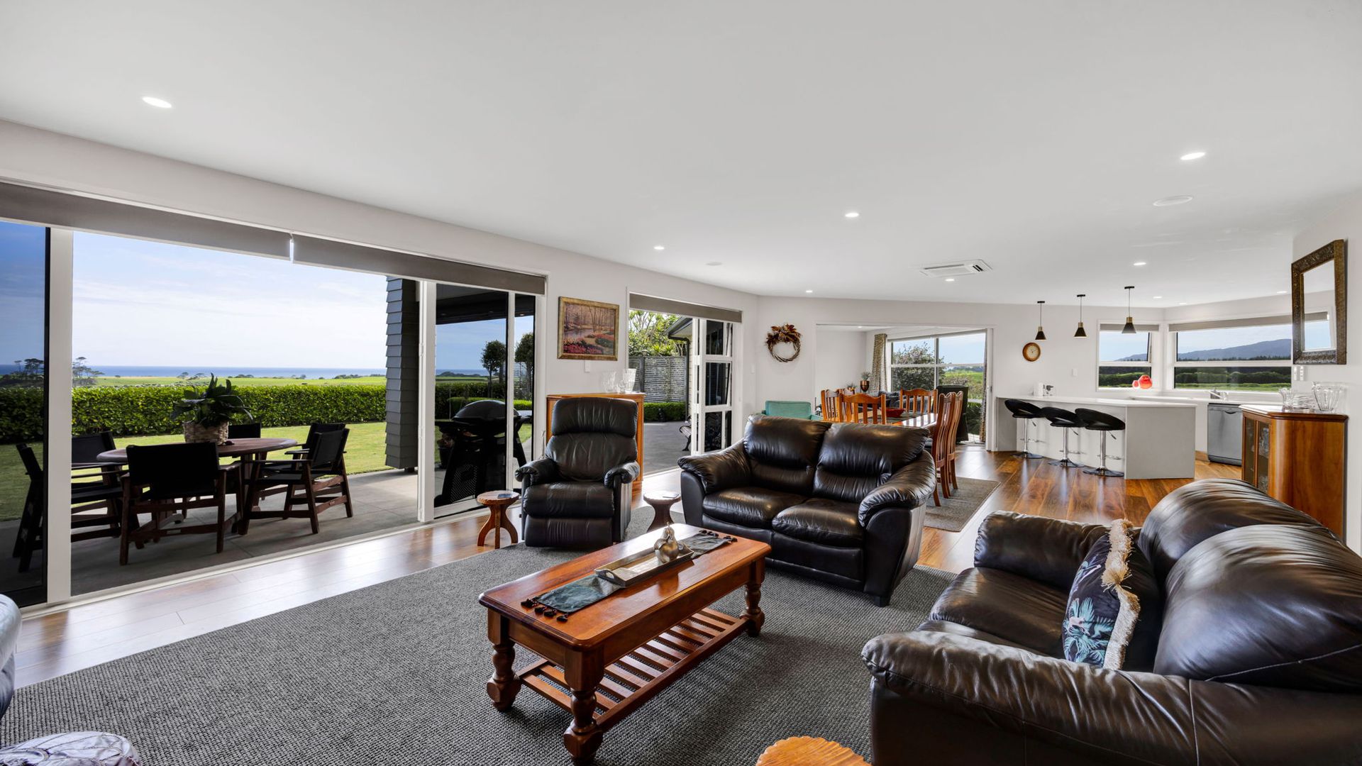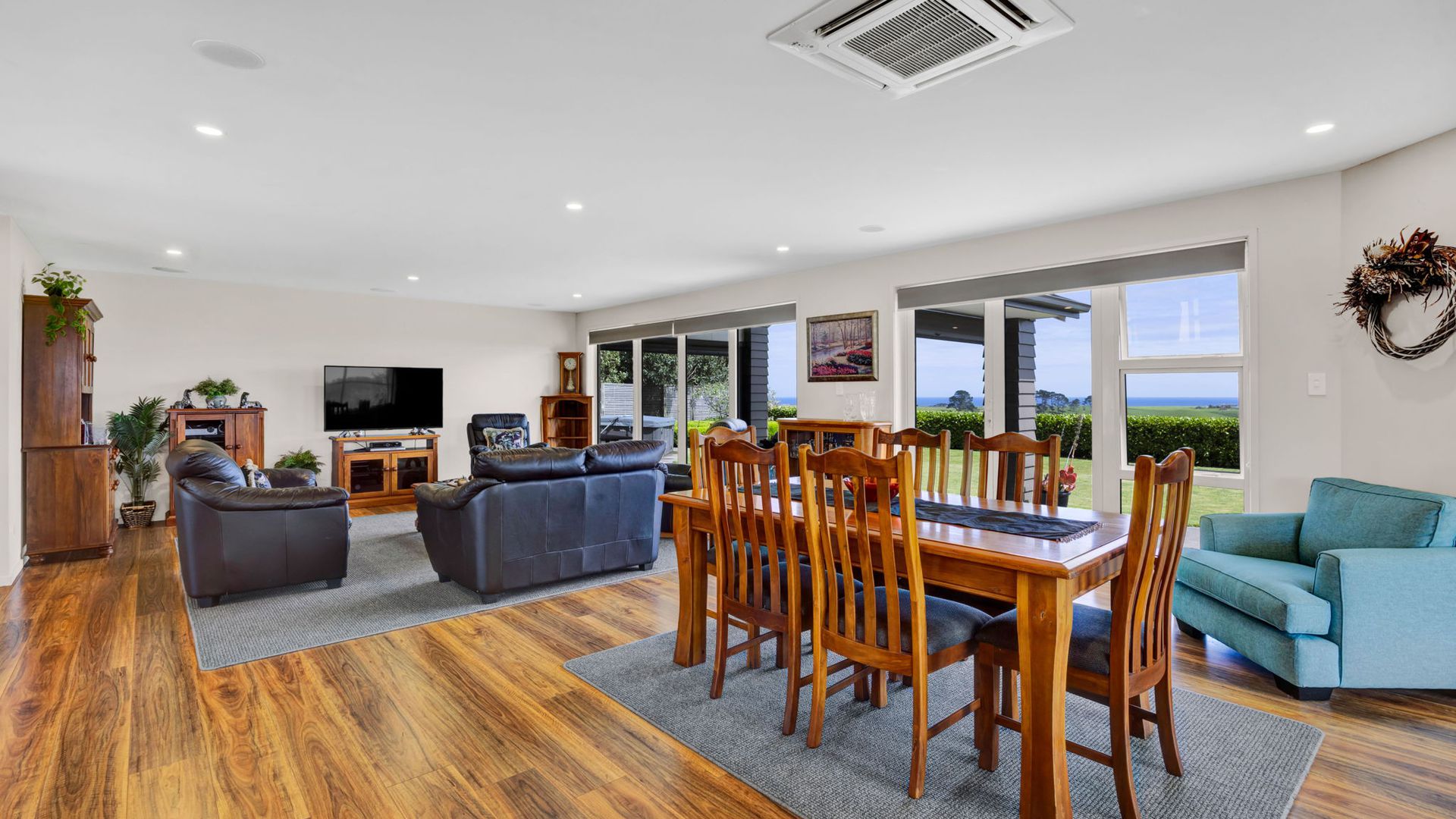 Welcome to a home where lifestyle, comfort, and location unite in perfect harmony. Nestled in picturesque rural surroundings with breathtaking mountain and sea views, this remarkable property offers a rare blend of contemporary luxury and country serenity, all just a short drive from Oakura Village, Okato, and New Plymouth. As you turn into the cherry tree-lined driveway, you’ll immediately feel the sense of calm and privacy this property provides. The beautifully designed four-bedroom, two-bathroom home exudes warmth and character, featuring double glazing, central heating, and a heat transfer system for effortless year-round comfort.