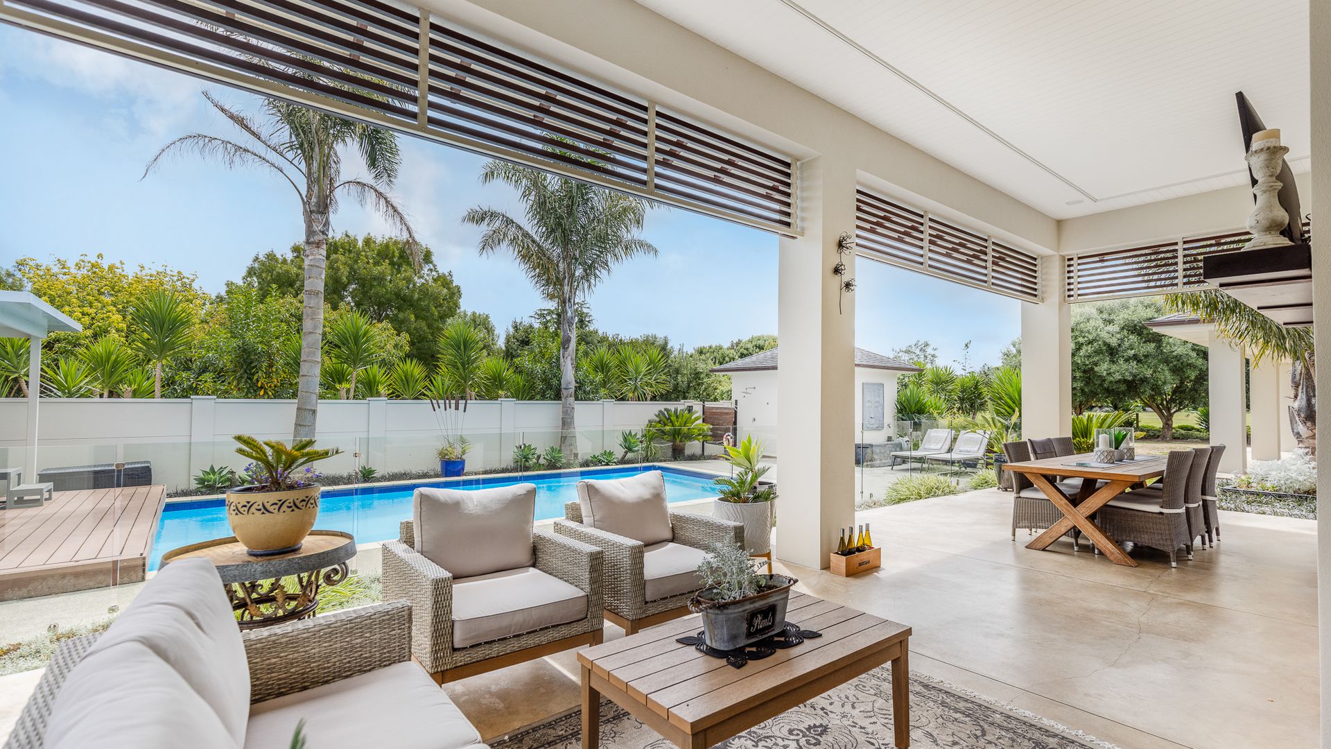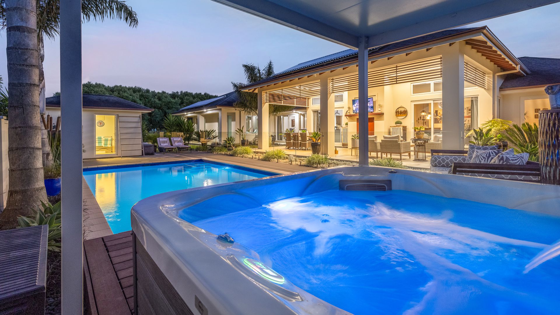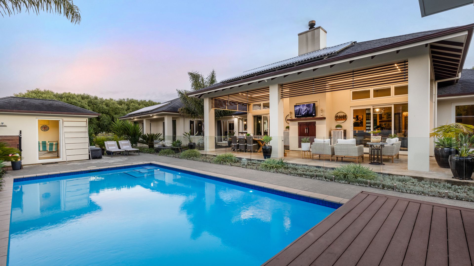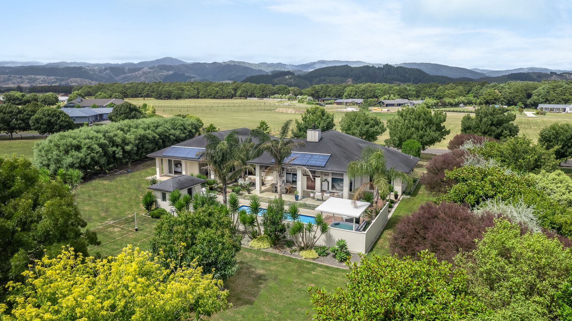 The lush, low-maintenance tropical surroundings create a resort-style ambiance, providing privacy and shade in the additional 53m2 alfresco dining area (more or less). The heated pool and spa area, complete with a changing room, toilet, and outdoor shower, transform your everyday life into a holiday. With a fully flat site that has been well-landscaped, offering tropical, native planting, fruit trees, and a vegetable garden. Ensuring ultimate comfort, this home boasts a plethora of features, including double glazing, 16-zone underfloor heating, two heat pumps, a hot water solar system and a custom European fire. Nestled amidst the vines in Ohau, this haven offers tranquillity while remaining conveniently accessible to amenities, Wellington, and beyond. Embrace a lifestyle where every day feels like a retreat. Viewing by appointment only. RV $2,020,000. Call Sold on Kapiti on 0800 527 181 to chat further. Floor area 367m2 (source – CoreLogic) Land area 3055m2 (source – LINZ)