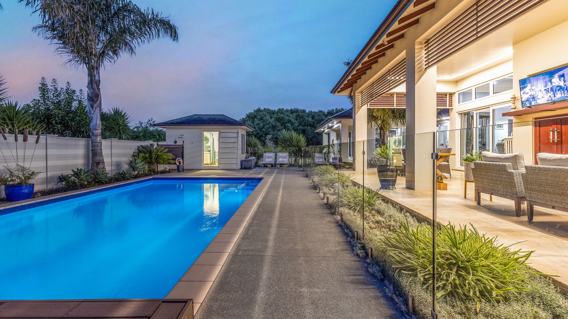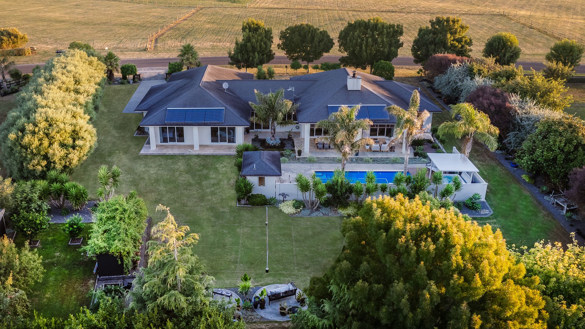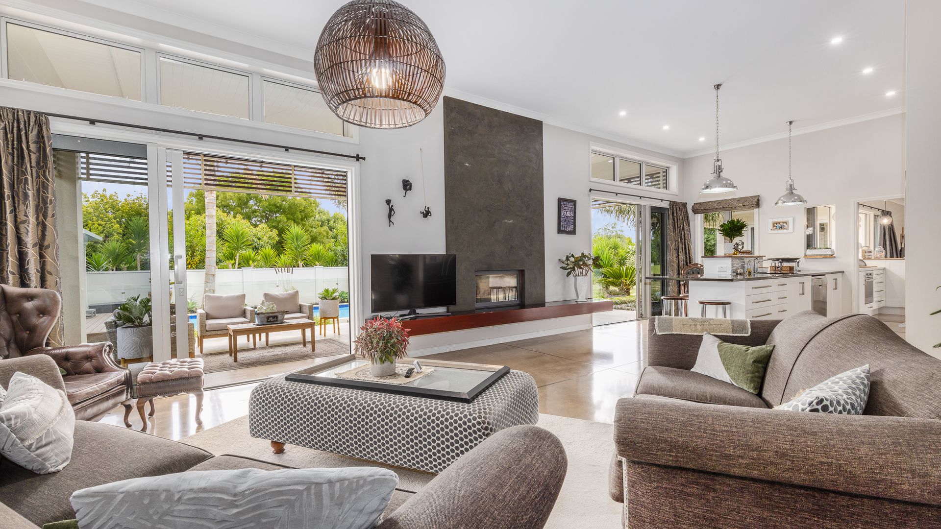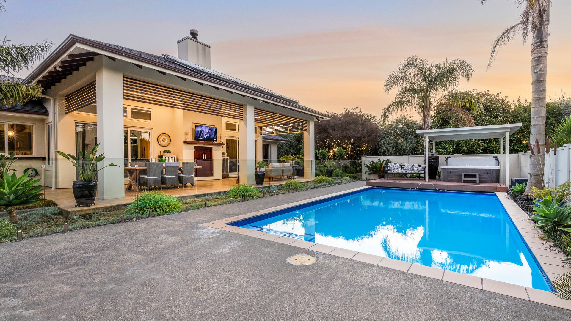 The lush, low-maintenance tropical surroundings create a resort-style ambiance, providing privacy and shade in the additional 53m2 alfresco dining area (more or less). The heated pool and spa area, complete with a changing room, toilet, and outdoor shower, transform your everyday life into a holiday. With a fully flat site that has been well-landscaped, offering tropical, native planting, fruit trees, and a vegetable garden. Ensuring ultimate comfort, this home boasts a plethora of features, including double glazing, 16-zone underfloor heating, two heat pumps, a hot water solar system and a custom European fire. Nestled amidst the vines in Ohau, this haven offers tranquillity while remaining conveniently accessible to amenities, Wellington, and beyond. Embrace a lifestyle where every day feels like a retreat. Viewing by appointment only. RV $2,020,000. Call Sold on Kapiti on 0800 527 181 to chat further. Floor area 367m2 (source – CoreLogic) Land area 3055m2 (source – LINZ)