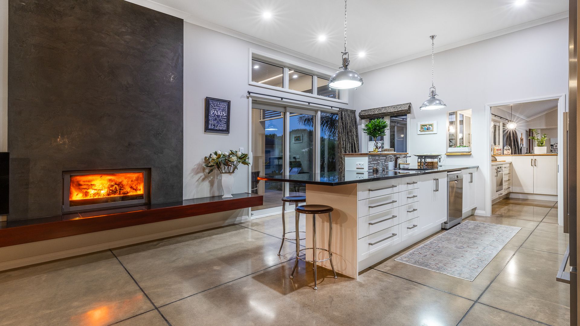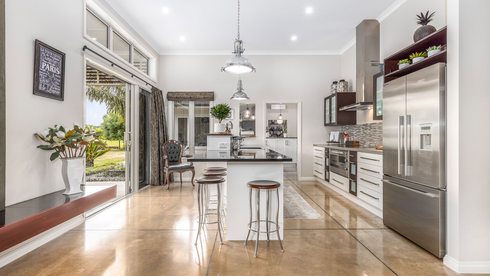 Indulge in quality with this custom home built to the highest spec. Thoughtfully designed with a soaring 3.3 meter stud, this home sprawls across 367m2, seamlessly marrying height and width and providing ample living space. Constructed of premium materials from top to bottom, including, concrete cladding, copper spouting, and an asphalt-shingle roof. Every detail has been thought through, setting an unparalleled standard of luxury. Boasting 4 bedrooms, 3 bathrooms, 4 toilets, a study, a home gym/recreation room, a double garage, dedicated storage room and expansive living areas, the layout offers flexibility. All bedrooms are generously sized, offering ample storage and natural light while the master suite; a sanctuary of luxury, features a dressing room, spacious ensuite, and seamless access to the outdoors. The chef's kitchen, equipped with top-of-the-line appliances, makes cooking a joy, complemented by an adjoining open scullery/second kitchen.