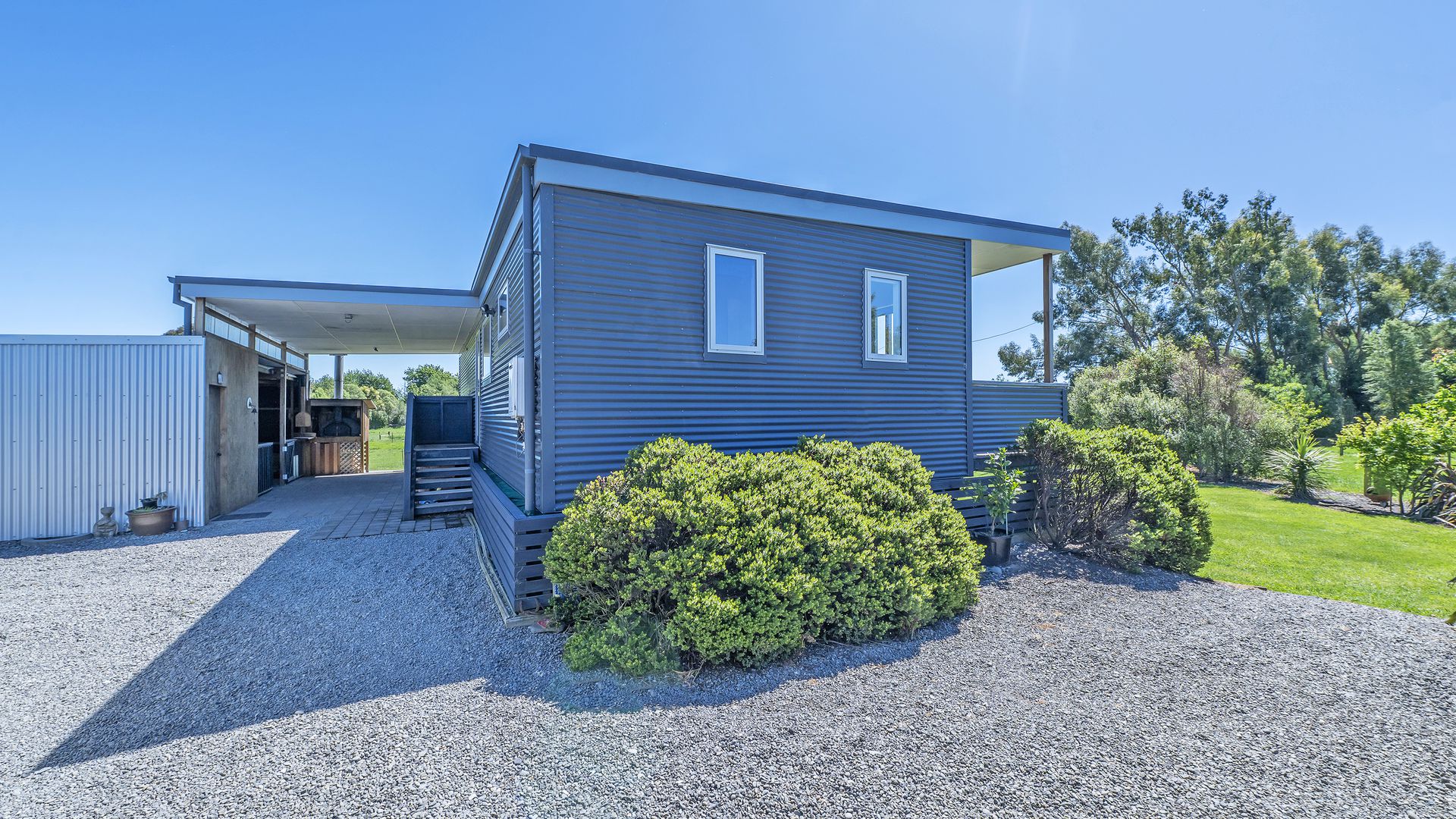 Fully off-grid and future-ready, the property runs on solar power with a generator backup, a biolytix septic system, its own well, and a water softener system — delivering true independence without compromise. Outdoors, every detail invites relaxation and connection. Entertain under the enclosed alfresco area with its kitchen nook and pizza oven, or make the most of the well-planned extras — an outdoor laundry, a large concrete-floored shed, an additional sleepout or storage room, and excellent firewood storage below the home. The land is just as enchanting — with fenced paddocks, a flourishing fruit orchard with a variety of apples, pears, plums, peaches, figs, feijoas and cherries, and a greenhouse ready for year-round growing. This is more than a home; it’s a sanctuary for those seeking space, serenity, and a life lived in harmony with the land.