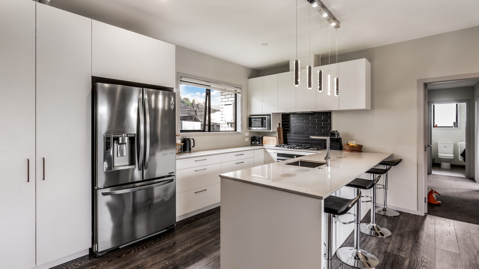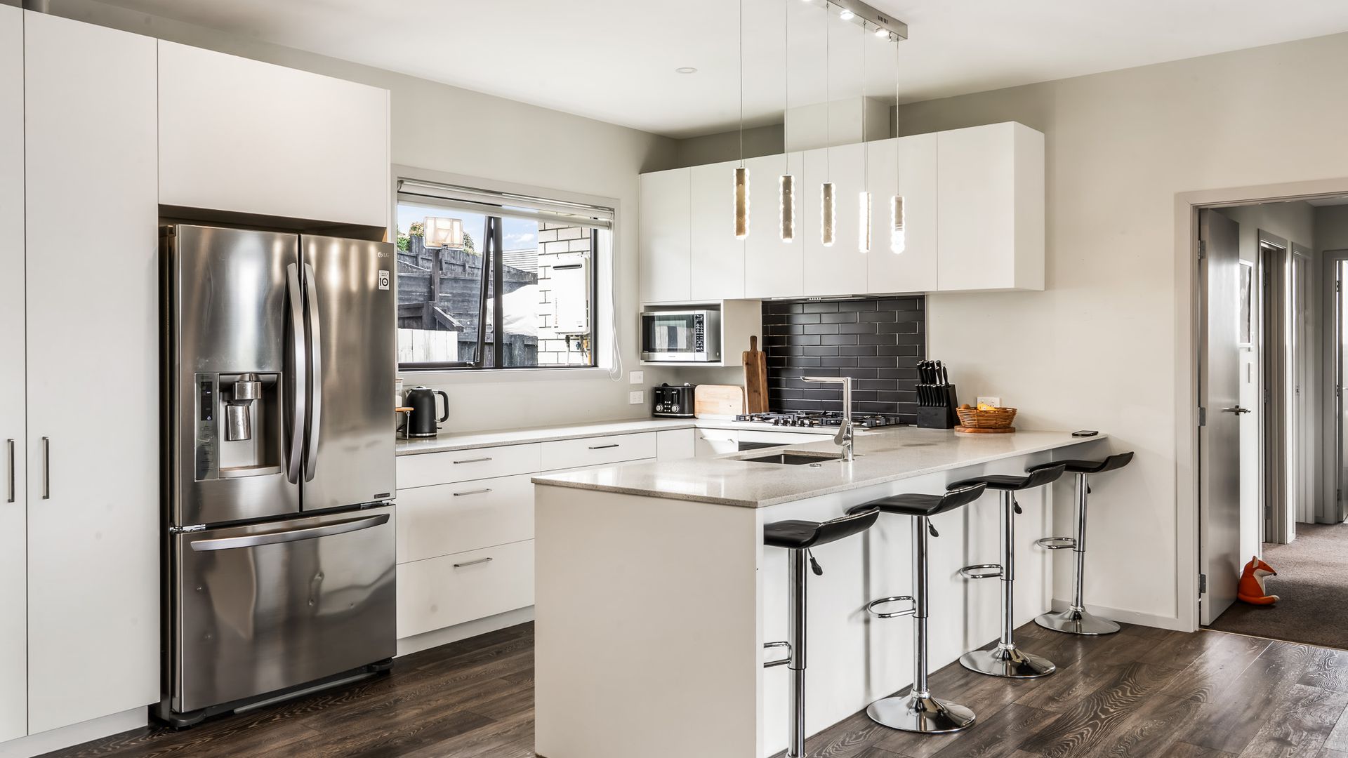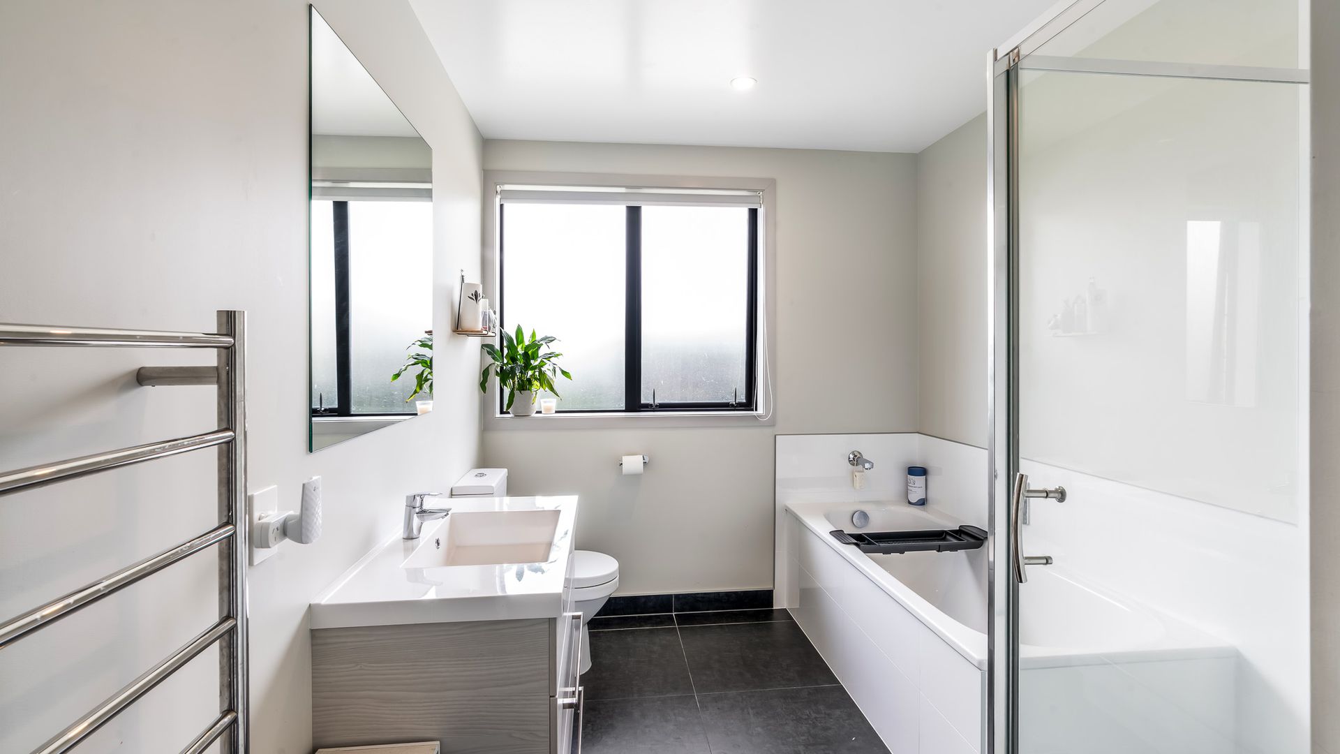 This modern brick and tile beauty delivers the perfect balance of privacy, comfort, and easy-care living, with no houses behind and relaxing lake views from the top of the section. Step inside and feel the space unfold, the open-plan kitchen, dining, and living area is the heart of the home, designed for connection and effortless flow. The sleek, modern kitchen features stone bench tops, pendant lighting, and quality stainless appliances, ideal for entertaining or easy family living. The floor plan is cleverly designed for privacy, with the master suite (complete with walk-in wardrobe and ensuite) tucked privately down one end, and three double bedrooms plus a family bathroom and separate toilet at the other.