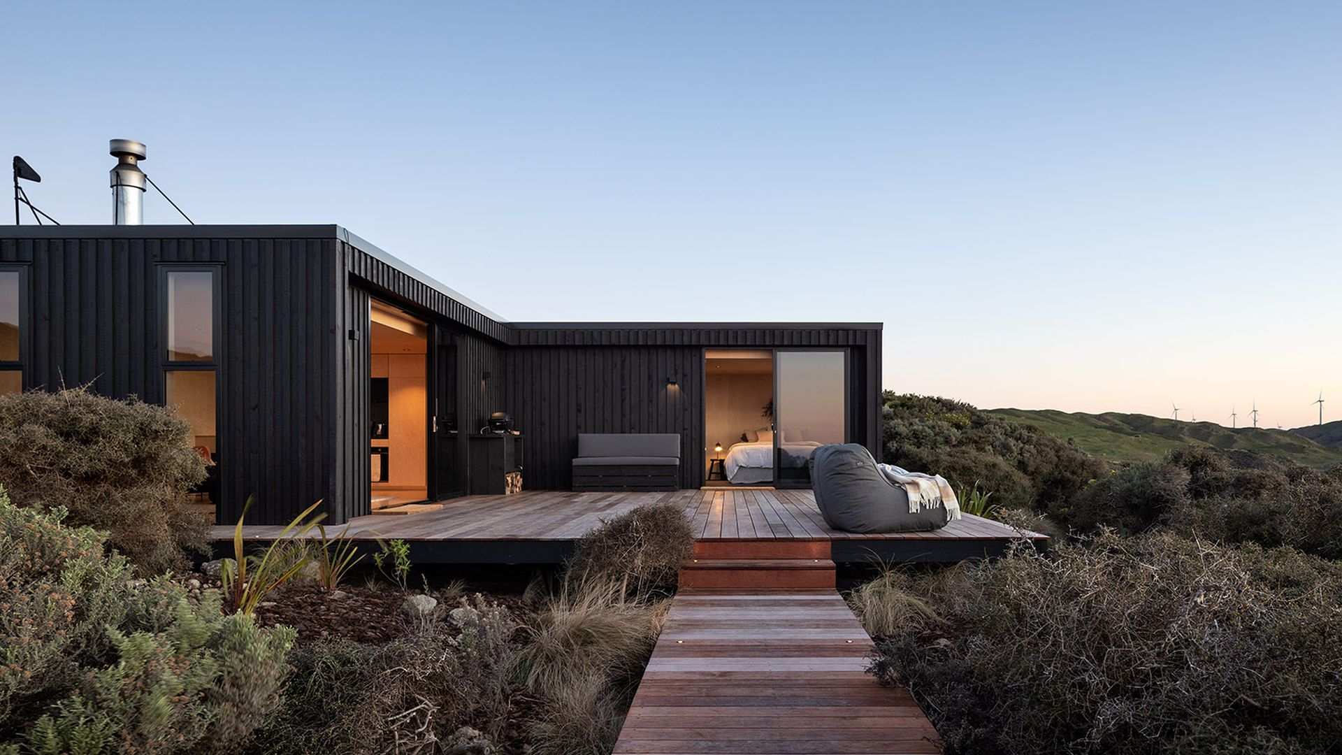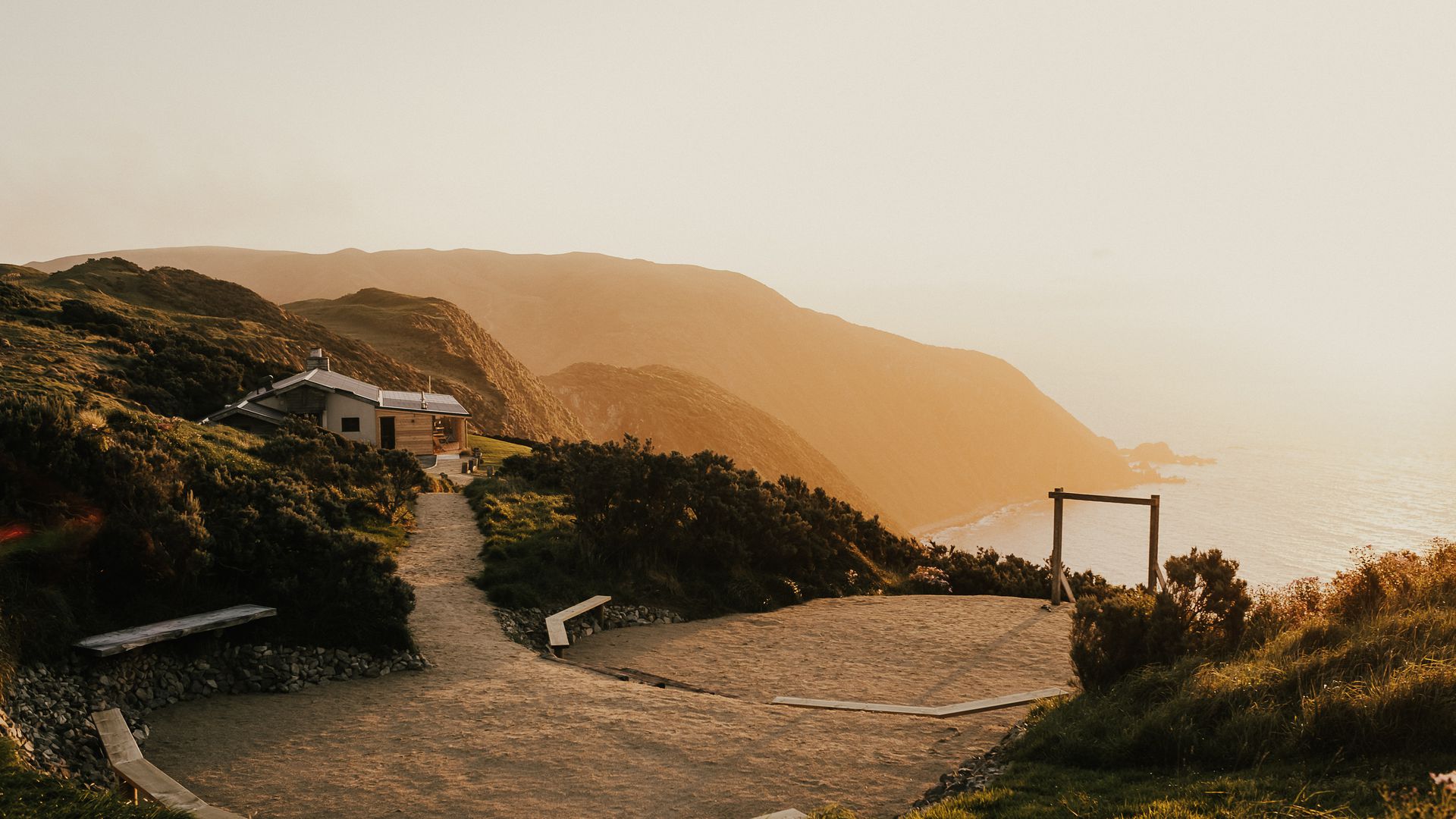 The land carries a century of care and stewardship from the Eastwick family, and its sweeping views reach across Cook Strait to the South Island. Native forest thrives, sunsets burn over the water, and the sense of privacy is absolute.