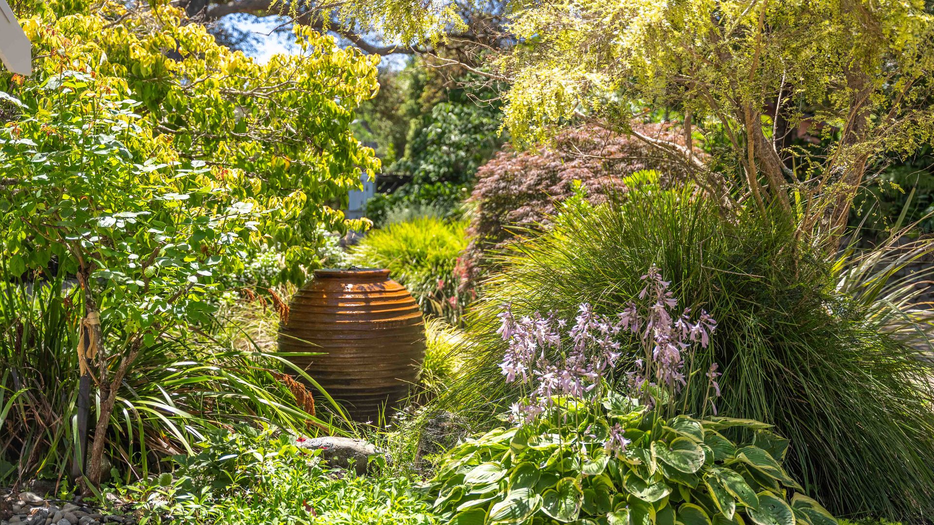 At the rear, a large private garden is a true highlight. Framed by mature trees and lush, designer landscaping, it’s a peaceful retreat for outdoor living, quiet moments or weekend gatherings.