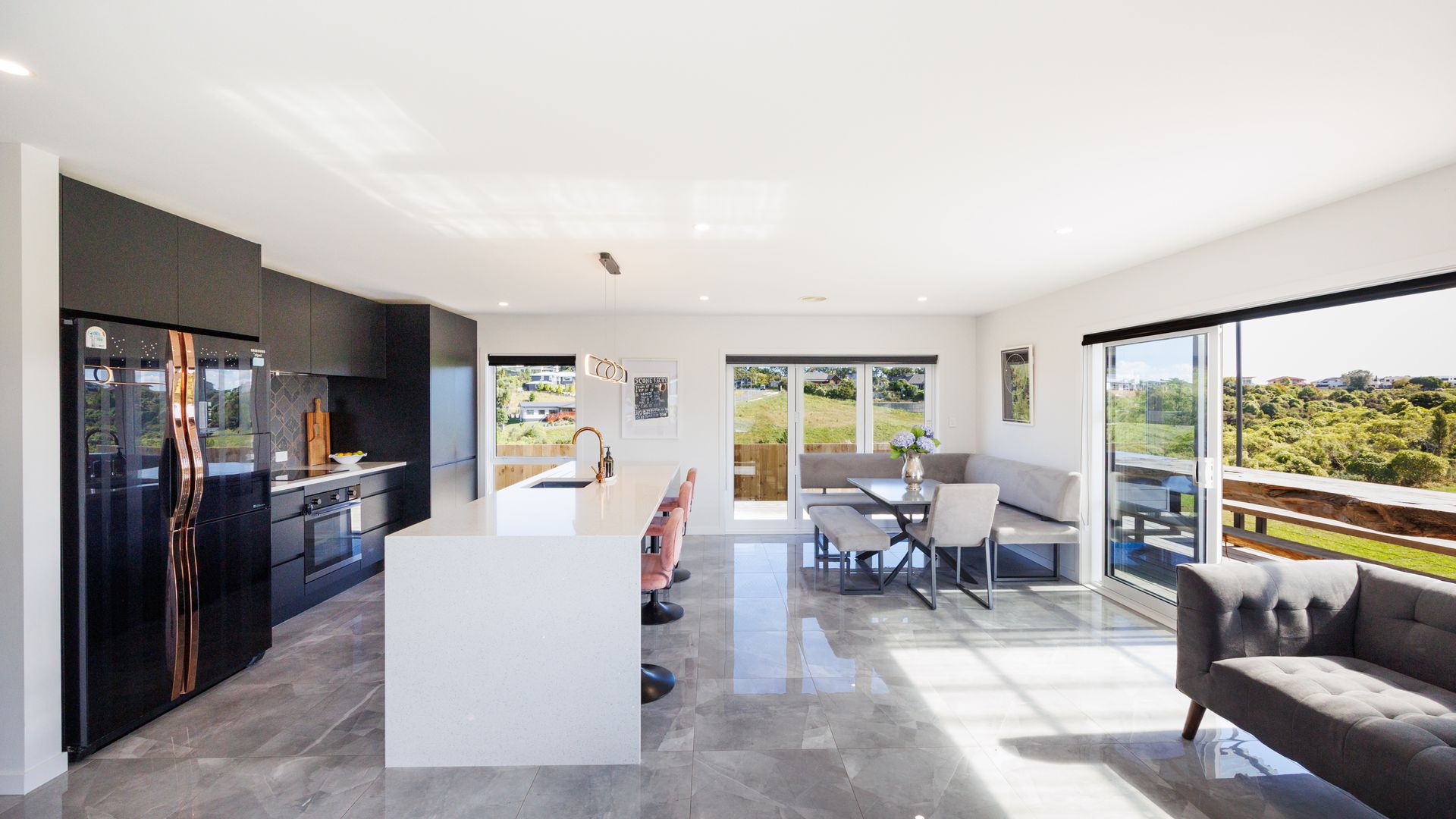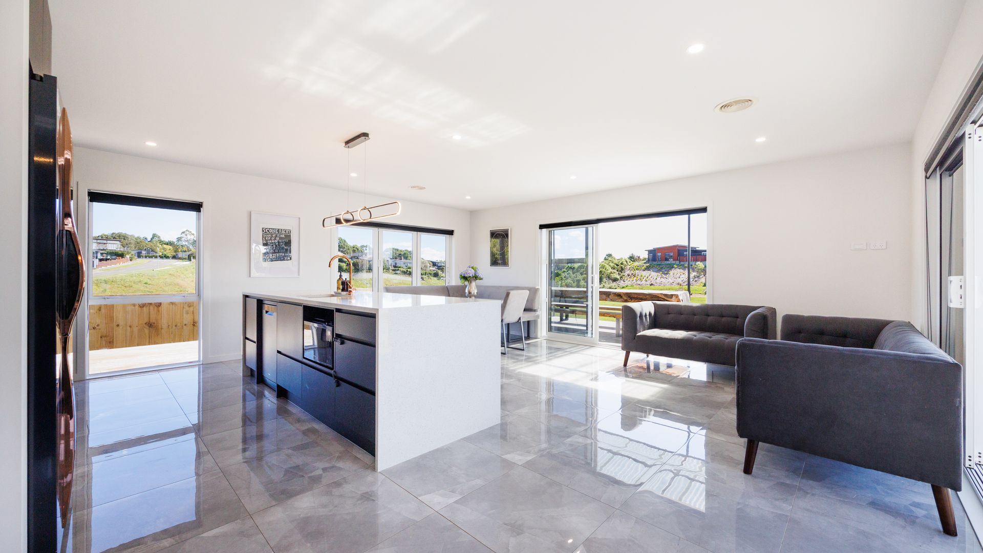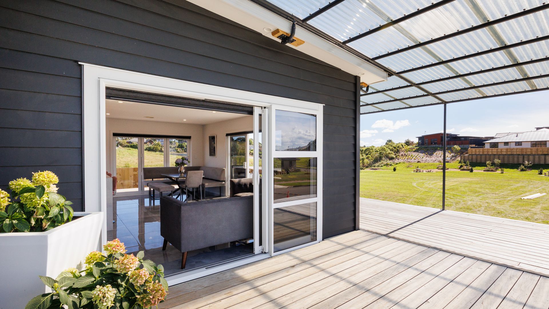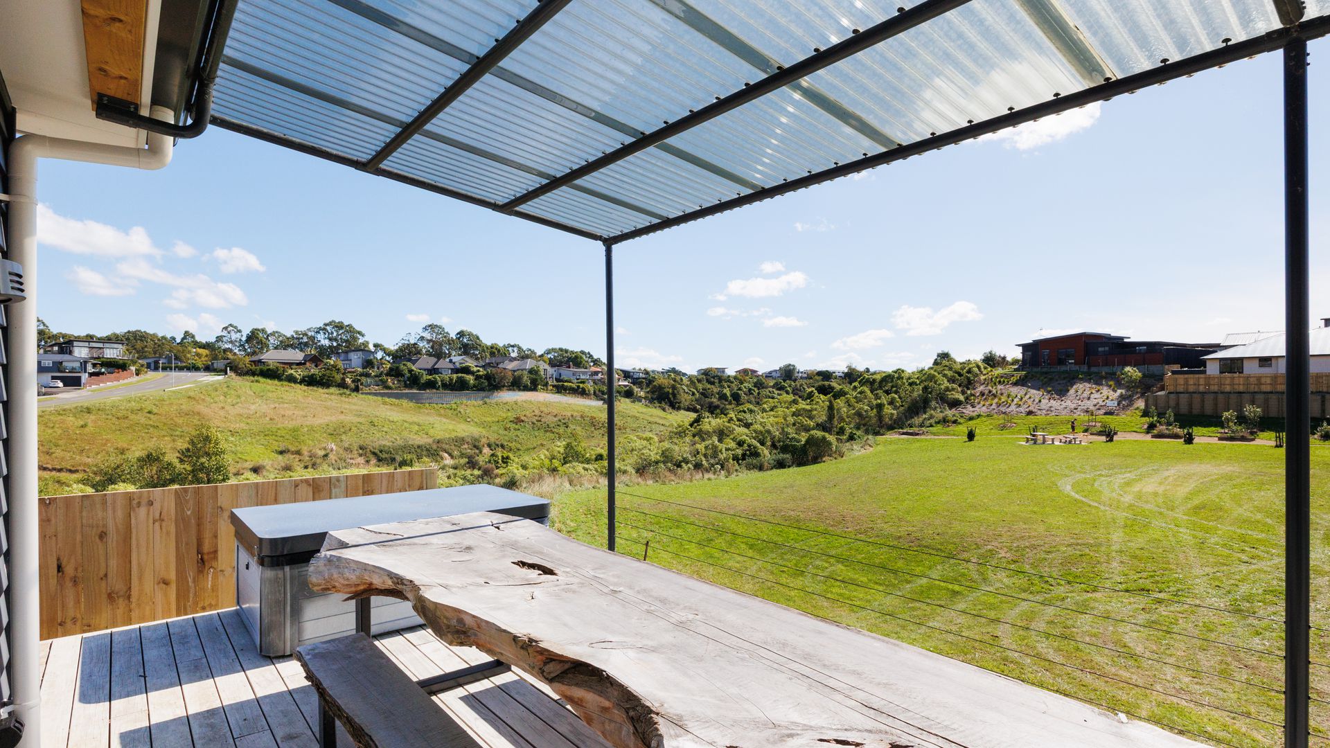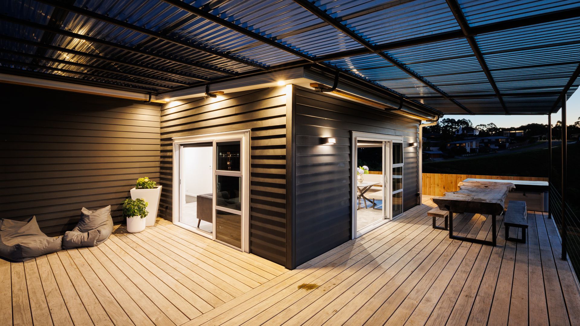Large sliding doors extend the living areas out to an expansive deck designed for entertaining, making the most of the private outdoor setting and the tranquil outlook to the reserve beyond.