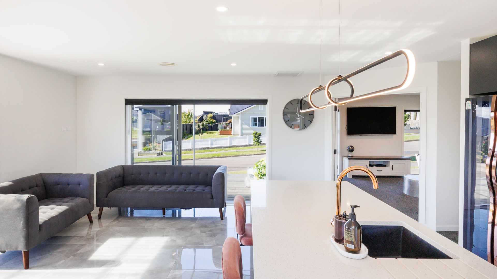At the heart of the home is a well-appointed kitchen connecting seamlessly with the open-plan dining and family living area, creating a natural hub for everyday living and entertaining. A separate second living room provides flexibility for families wanting additional space to relax or unwind.
