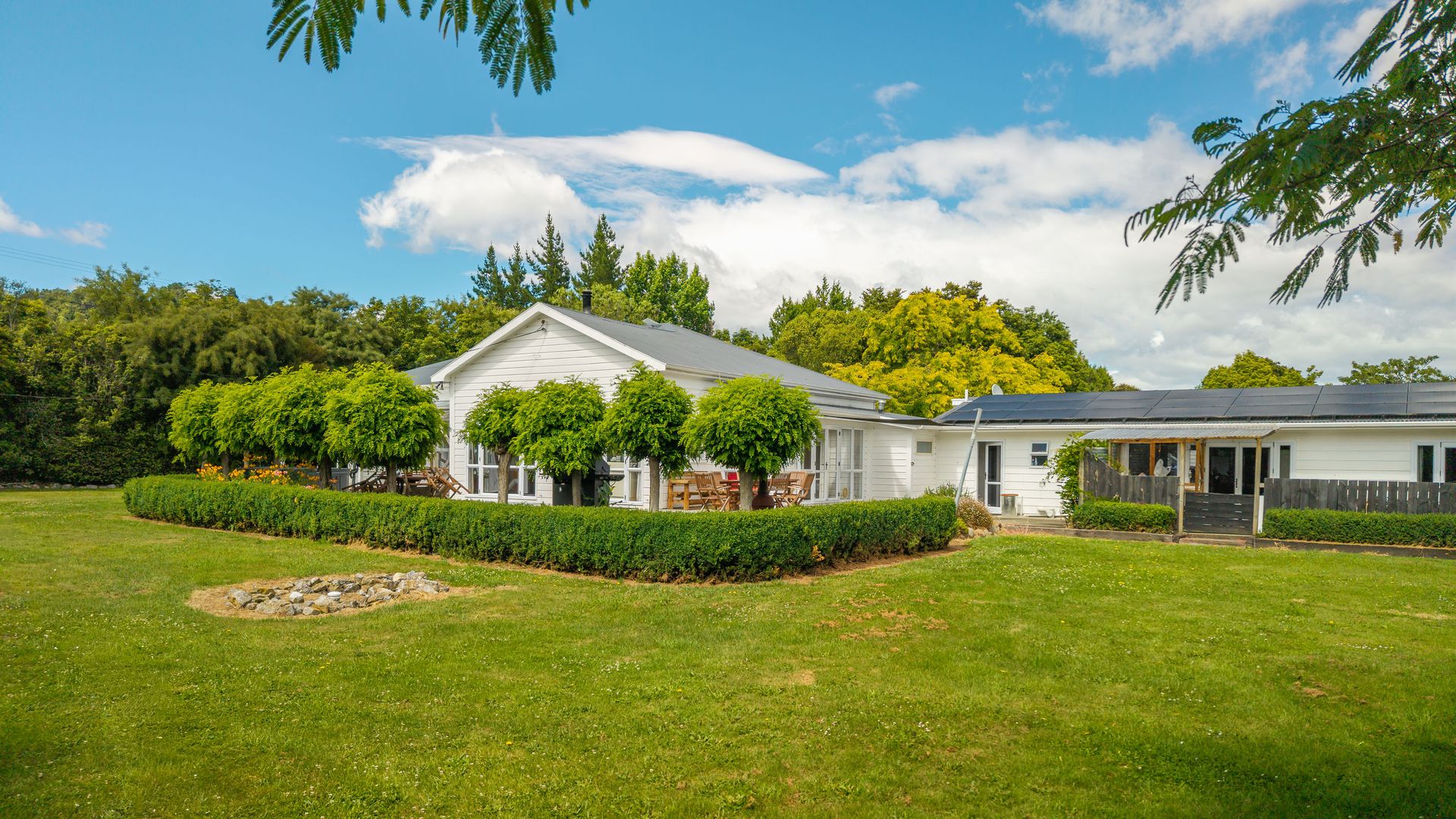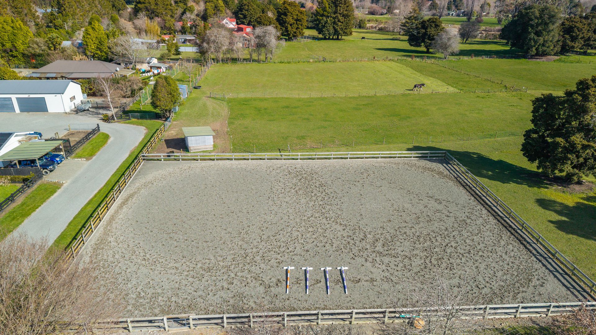 We are delighted to bring to market one of the best and most beautiful equine properties set up for horses and their agistment in the Tasman region. Located only 5 minutes out of Wakefield village on a flat 7 hectare block dotted with beautiful totara trees and colourful exotics, the property offers a wealth of accommodation options including a beautifully presented and renovated 4 bedroom character home, a 2 bed unit ( currently tenanted with tenants who wish to stay) and a one bedroom bedsit. The main dwelling enjoys the benefits of a fully owned PV system complete with battery storage for greatly reduced power costs, selling power back to the grid to be in credit all summer, and has been very well maintained. If your needs aren’t extended family oriented and more income stream focused, on top of the separate rental opportunities, the property offers agistment to up to 8 horses, depending upon how many horses you have of your own. Facilities include a 40m x 30m sand equestrian arena, a round pen, 2 large covered yards, multiple field shelters, a mains electric fence system, reticulated water to most paddocks and those beautiful shade trees. The outbuildings are excellent – a modern 3 car garage/workshop, 4 and 3 bay barns, a single garage/storage room, and various hay, tack or storage sheds, muck collection bays, and a fully enclosed chicken run and walk in hen house. A tree lined raceway down the length of the property is extremely practical, and solid timber fencing around the home and entrance add to the quality of this property. You can hack directly off the property to both Trass valley forest and the Wai-iti loop, via the river. Please note – this property was NOT affected by the recent flood event.