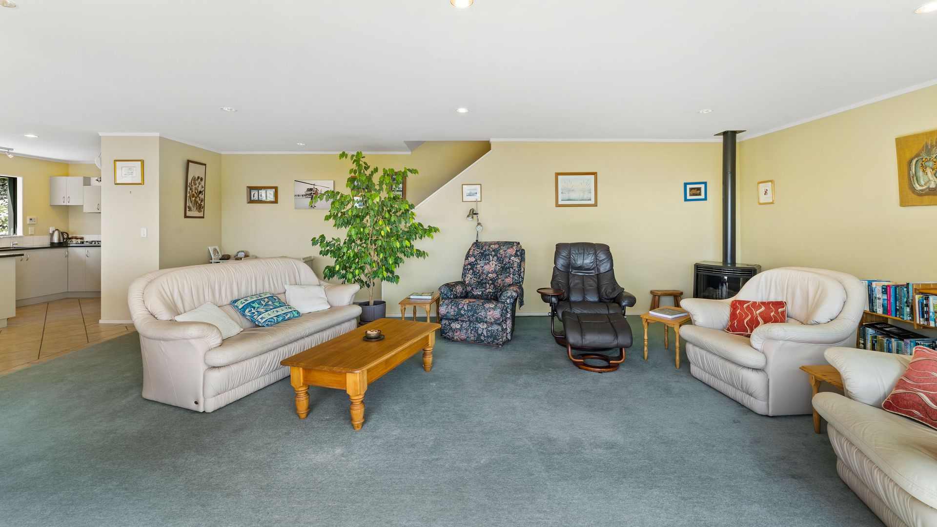 The light-filled living area makes the most of the setting, with doors that open out to a private deck and established gardens bursting with colour, whilst the sunroom provides another space to sit back and enjoy the view in all seasons. A cosy gas fire, heat pump, double glazing, and insulation in the ceiling and walls help keep things comfortable year-round.