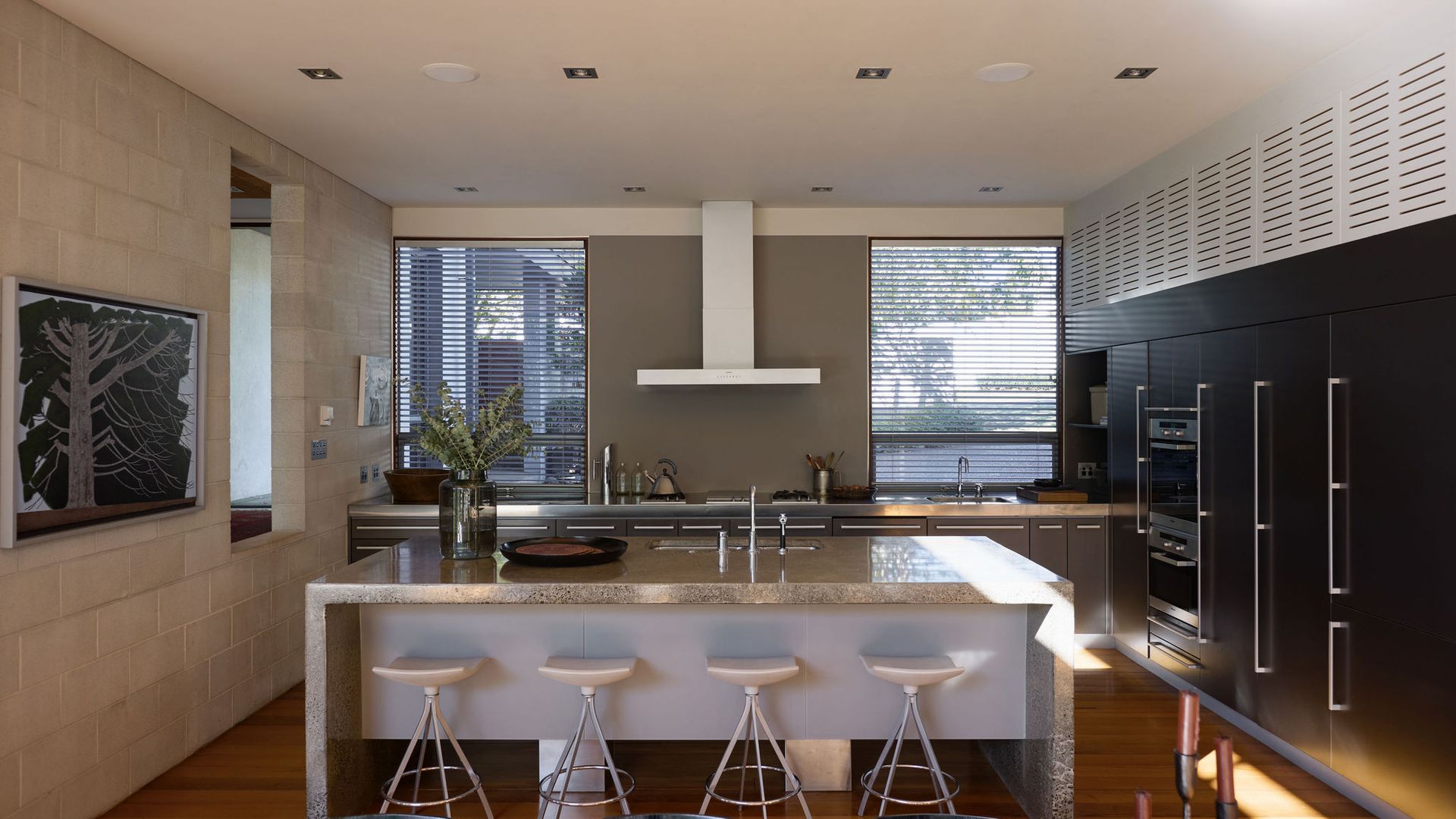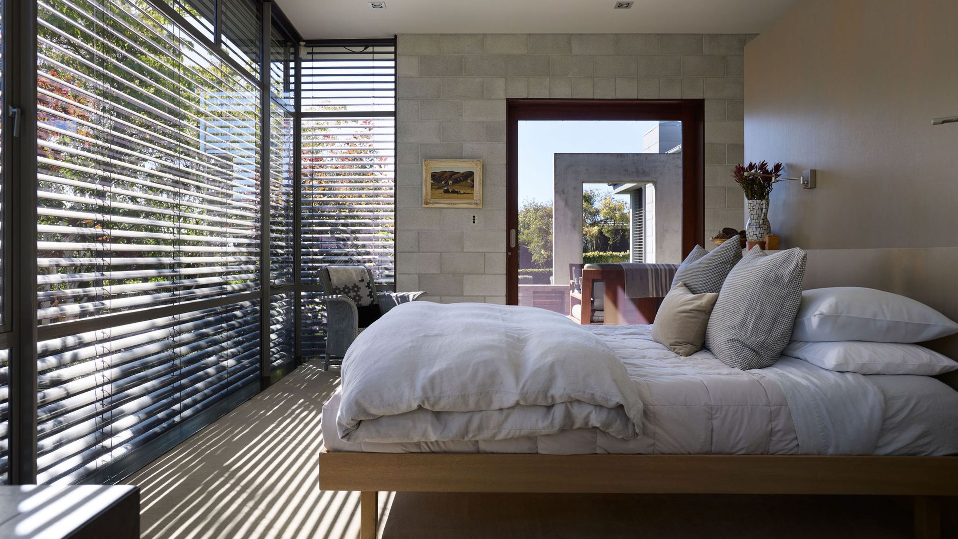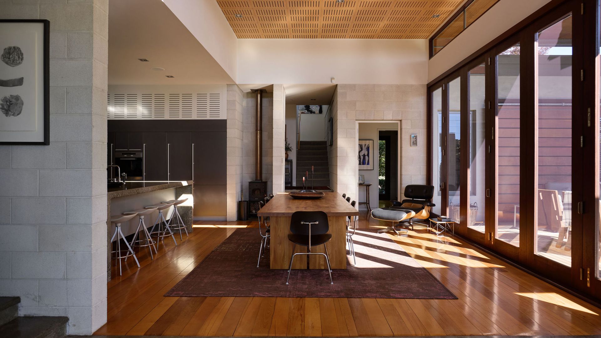 Greystones is a rare example of timeless residential architecture - designed by Nick Bevin (Bevin + Slessor Architects), inspired by the quiet confidence of Frank Lloyd Wright and Philip Johnson’s “house in the woods”. Strong horizontal lines, honest materials and subtle level changes anchor the home to its site, creating privacy, calm and a distinct sense of retreat. At its heart is a sun-oriented outdoor pavilion - a defining space designed to be used from morning through to late evening. Inside, living zones connect effortlessly to the outdoors, while the terraced garden has been shaped into a sequence of landscaped “rooms”, linked by steps and paths - creating atmosphere, shelter and intimate moments across the site.