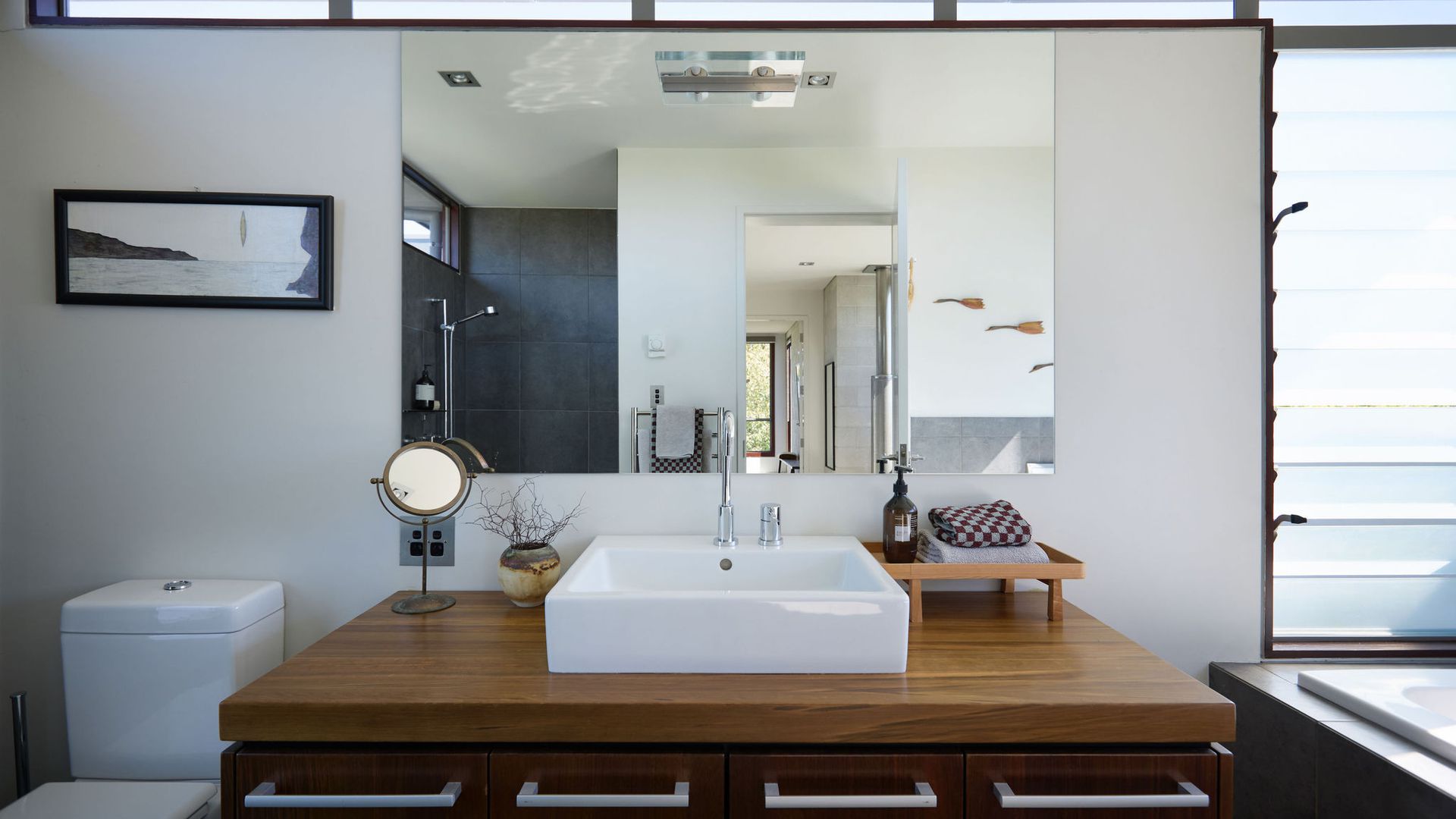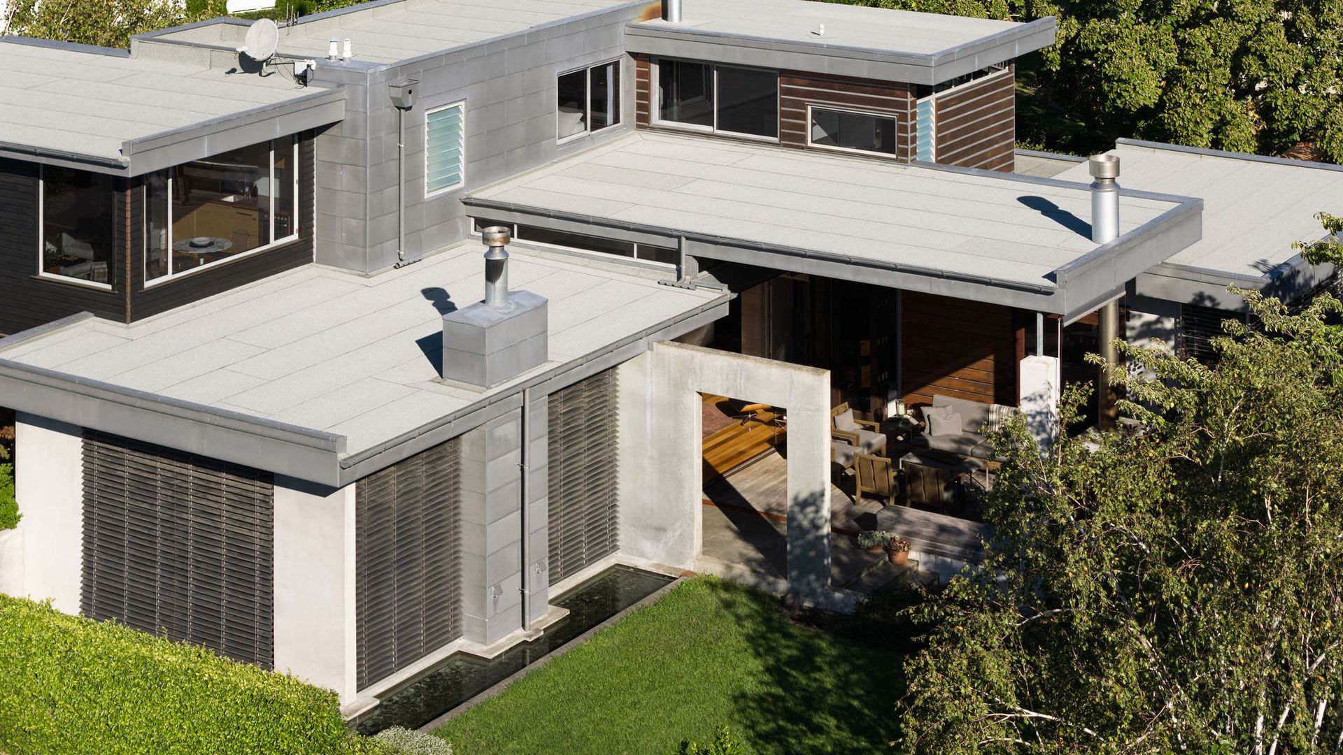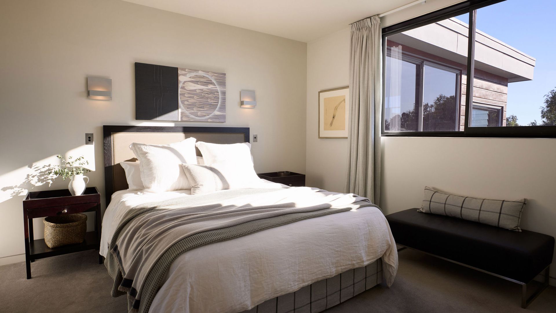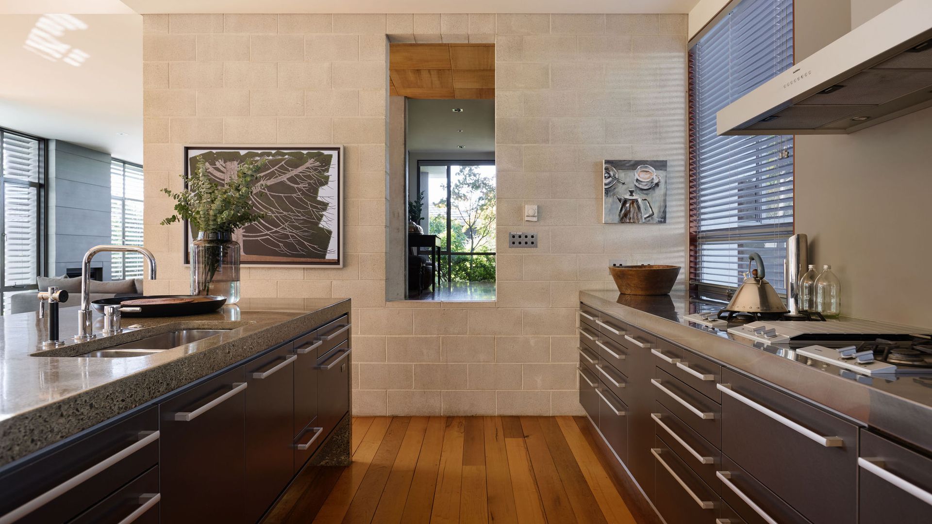 Greystones is a rare example of timeless residential architecture - designed by Nick Bevin (Bevin + Slessor Architects), inspired by the quiet confidence of Frank Lloyd Wright and Philip Johnson’s “house in the woods”. Strong horizontal lines, honest materials and subtle level changes anchor the home to its site, creating privacy, calm and a distinct sense of retreat. At its heart is a sun-oriented outdoor pavilion - a defining space designed to be used from morning through to late evening. Inside, living zones connect effortlessly to the outdoors, while the terraced garden has been shaped into a sequence of landscaped “rooms”, linked by steps and paths - creating atmosphere, shelter and intimate moments across the site.