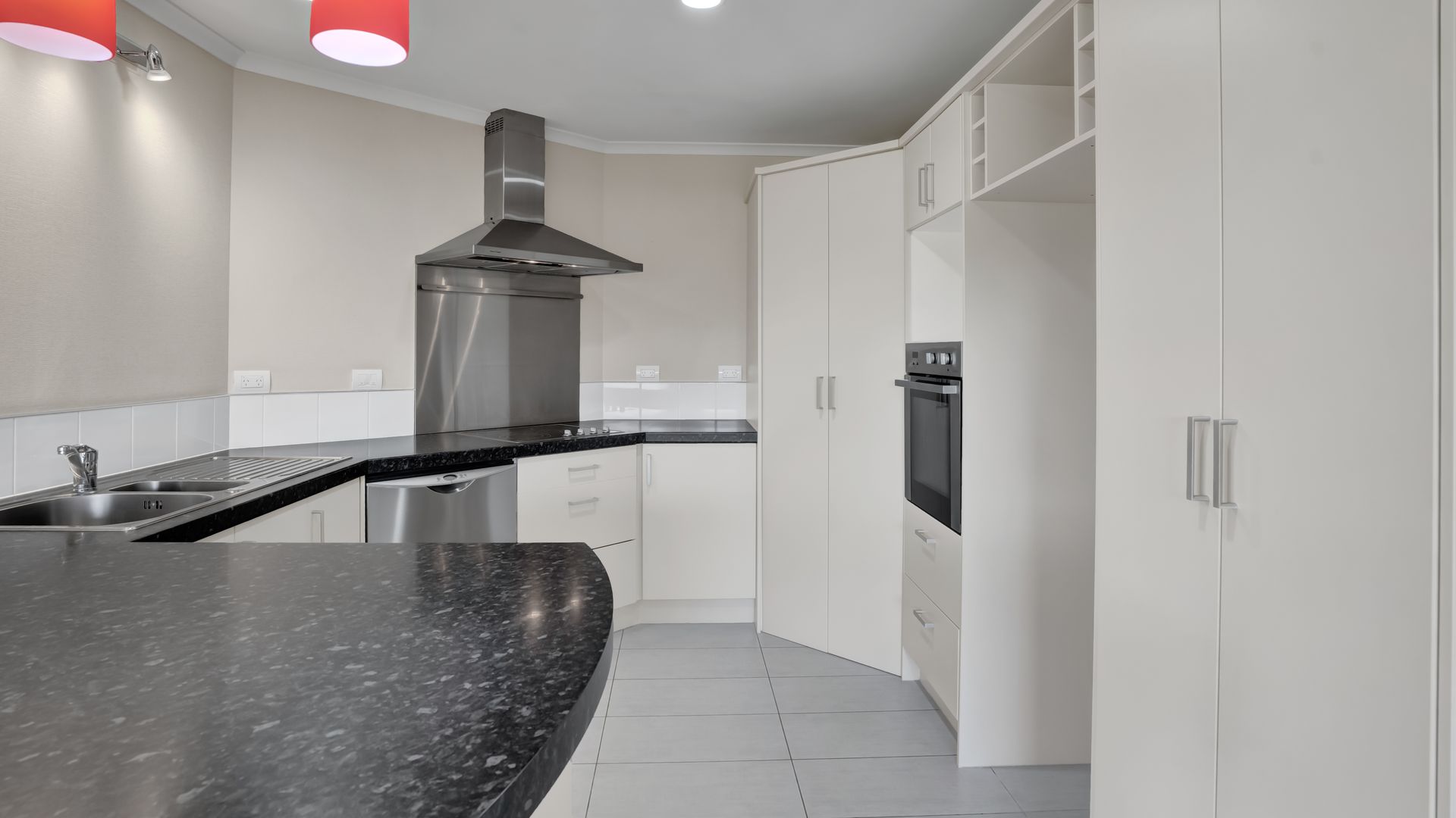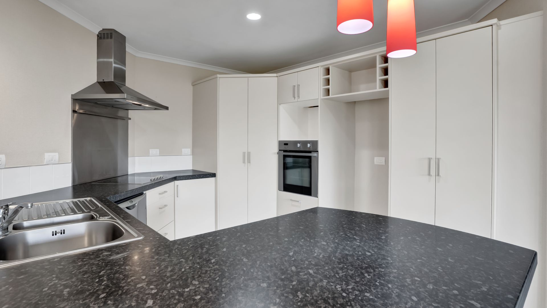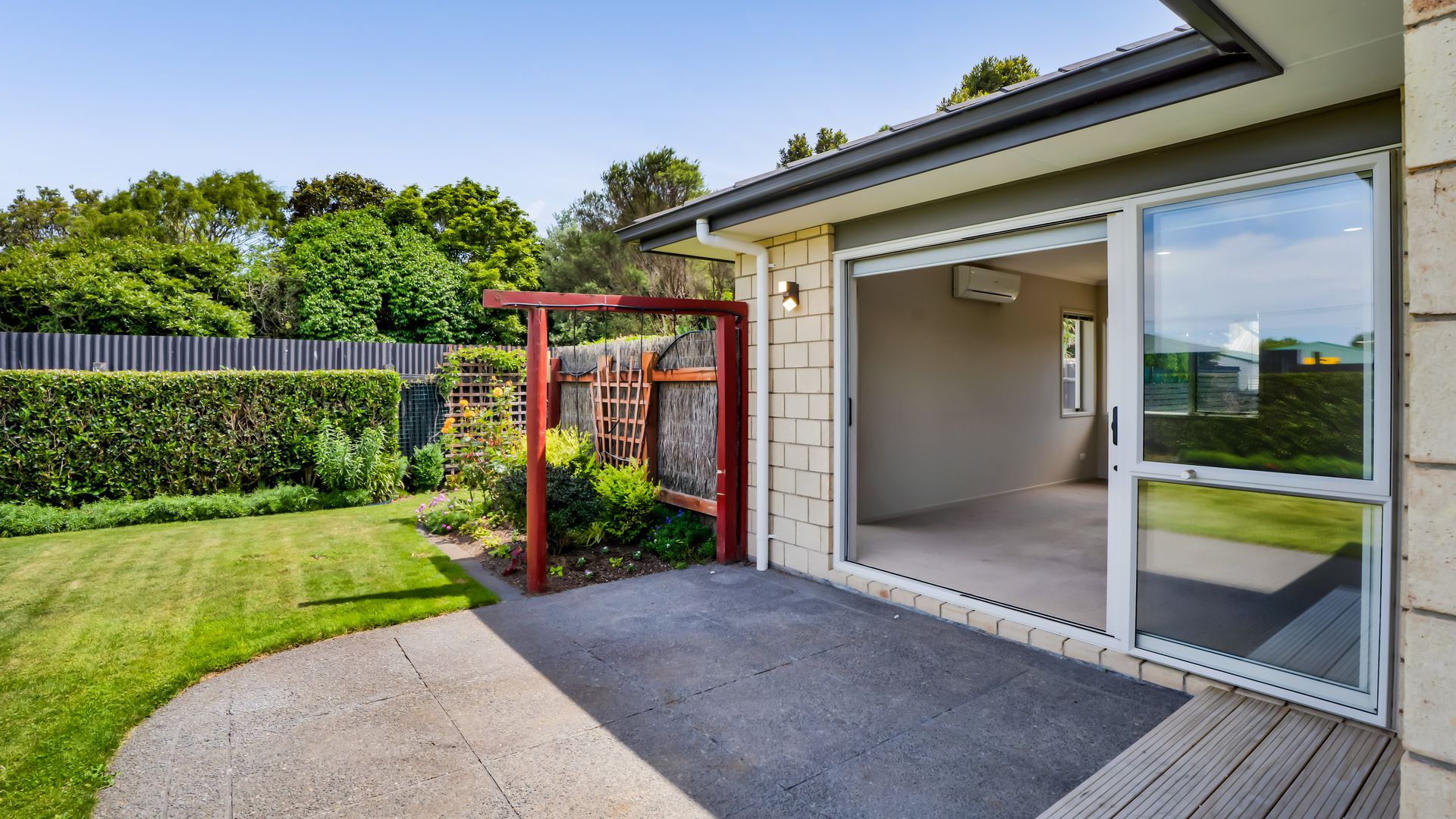 It’s an easy, comfortable layout: a heat pump installed while the open plan kitchen and dining area keep everyone connected. With great storage, a kitchen built for real life … morning chaos, shared meals, weekend baking and ranch sliders make the step out to the patio effortless, perfect for young kids or enjoying a quiet cuppa in the sun.