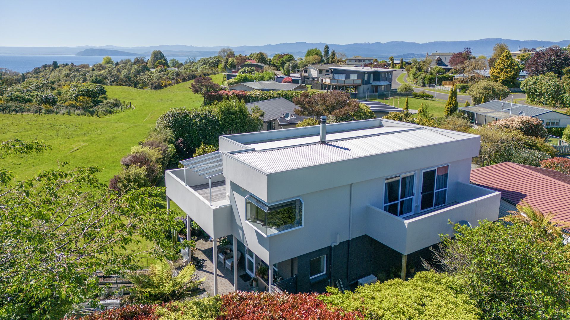 Arrive at 49 Kaimanawa Street and just down the drive, on a private and very quiet rear section. lies this much loved dual level home. Sitting proudly to the North-West overlooking farmland with views to the lake, this well maintained home is wrapped lovingly by colourful easy-care gardens that bring in fantastic birdlife - who's song every morning will remind you of exactly where you are. The dwelling begins with entry into a separate games room/second living area – ideal as a kids’ zone, TV room, hobby space or extra overflow when friends and family arrive. On this floor there are two double bedrooms, a laundry and a bathroom with a shower.