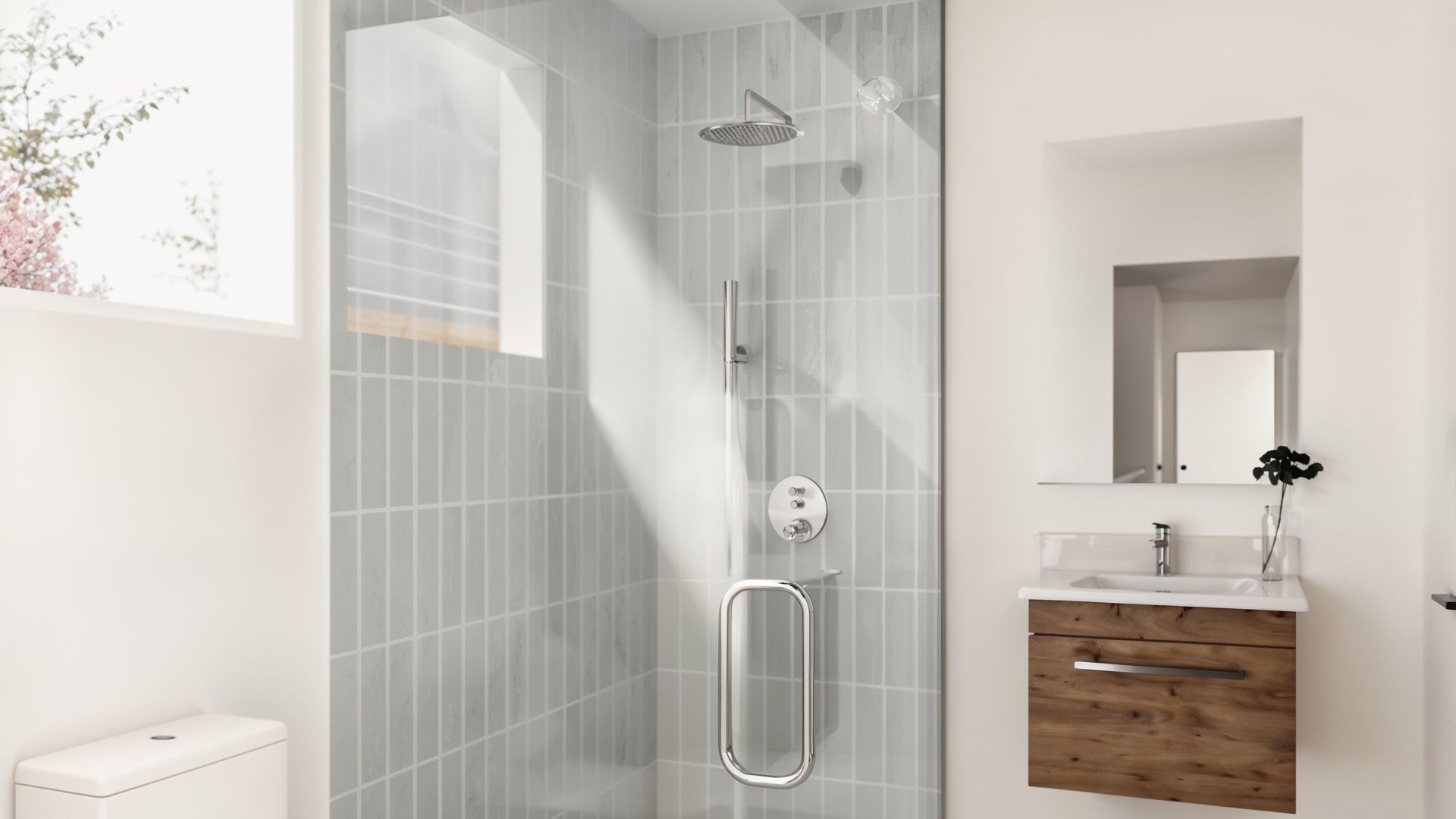 The first-floor features generously sized double bedrooms. All bedrooms include built-in wardrobes. The bathrooms have tiled showers with a glass and floating vanity.