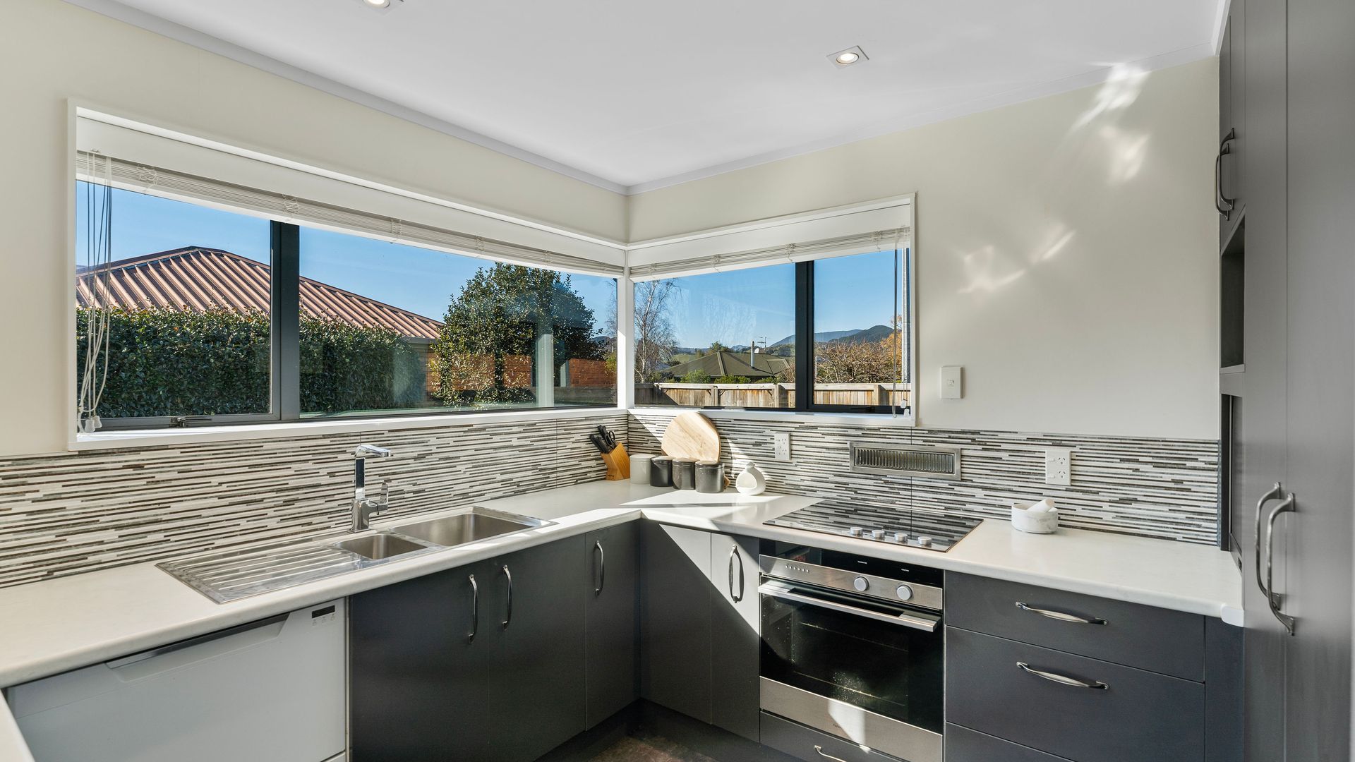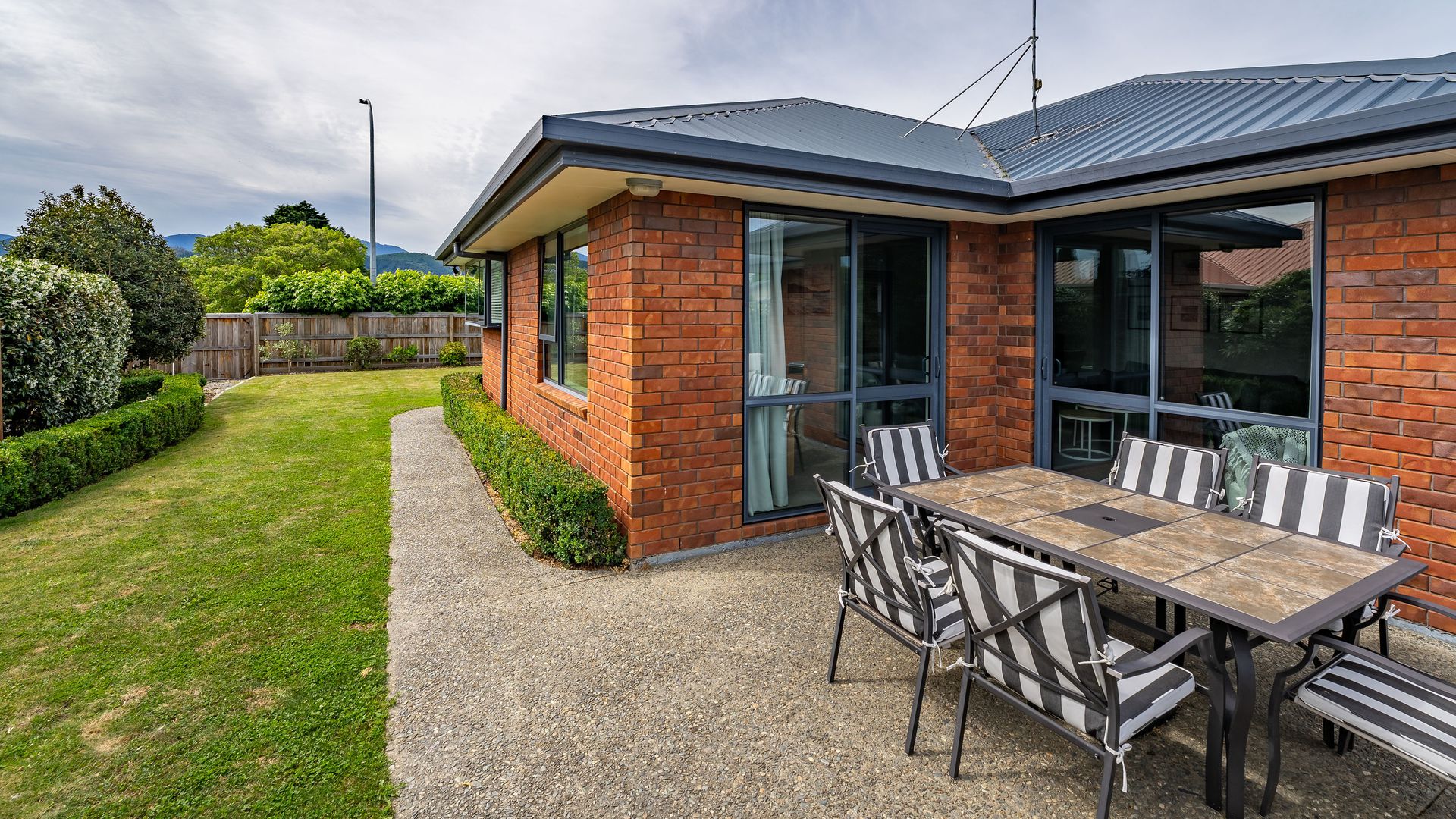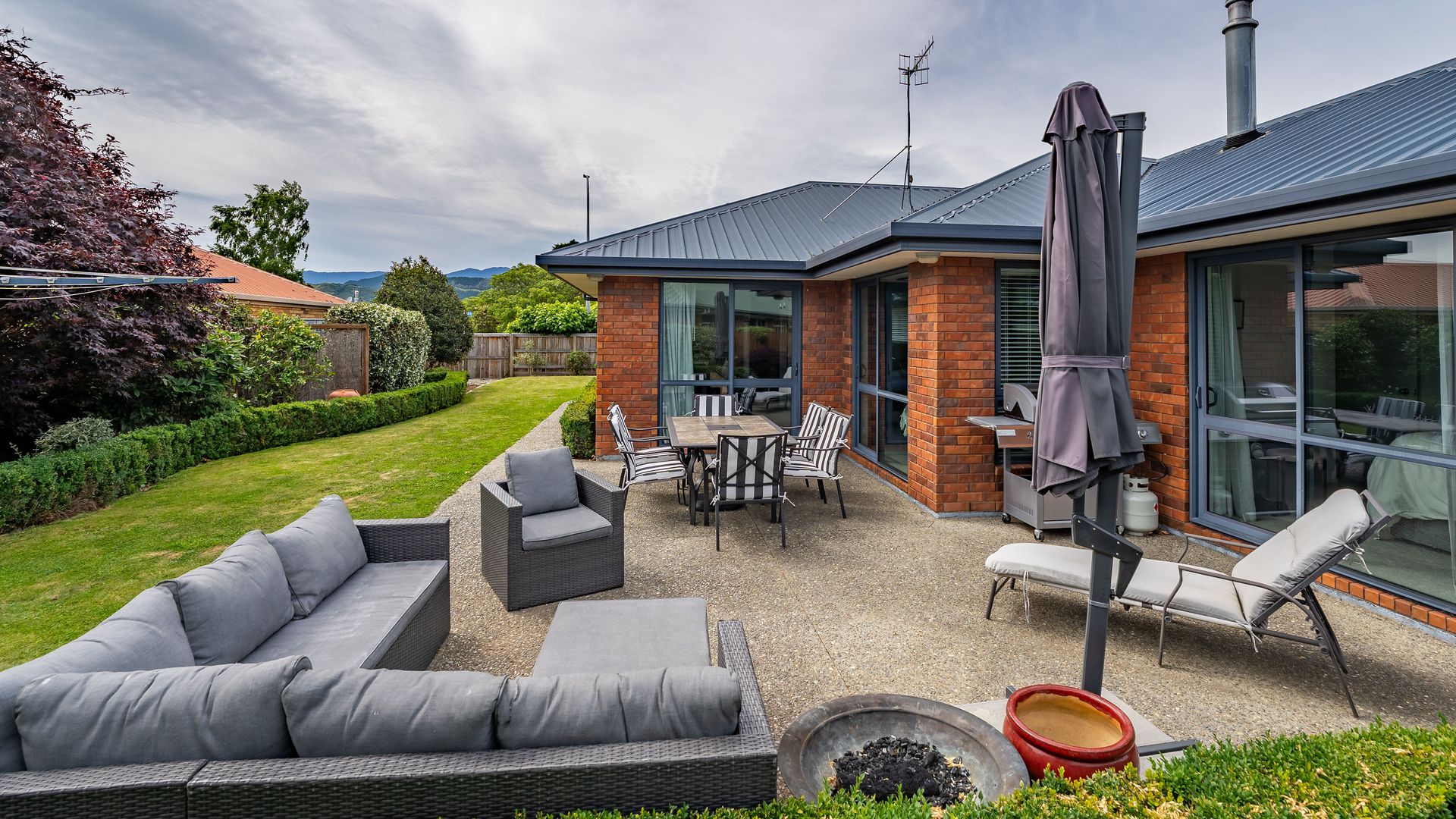 So many things to appreciate at 53 Starveall Street, starting with the location – off the busy main road, but withing easy walking distance to the school, the local supermarket, takeaway and bar, and only 8 minutes drive to Richmond, 20 minutes through to the airport. When you pull up at the lovely brick home the first thing you notice is the fully fenced, secure section, and how tidy everything is! Step inside the spacious entrance way and you immediately notice the sun streaming into the living areas, and this starts with morning sun that pours into the kitchen/dining room just when you need it the most. The outlook towards to the Richmond ranges to the east is restful and appealing, visible from inside as well as from the private back yard. The lounge is heated by a logburner, and a heat transfer system takes the warm air into the hallway. Please note, this home is retro fitted with double glazing to keep the warmth inside in winter, and solar water heating isa wonderful bonus. The 3 bedrooms all have built in wardrobes, and the bathroom, complete with bath and shower, is accessed from the main bedroom directly, as well as having hallway access.