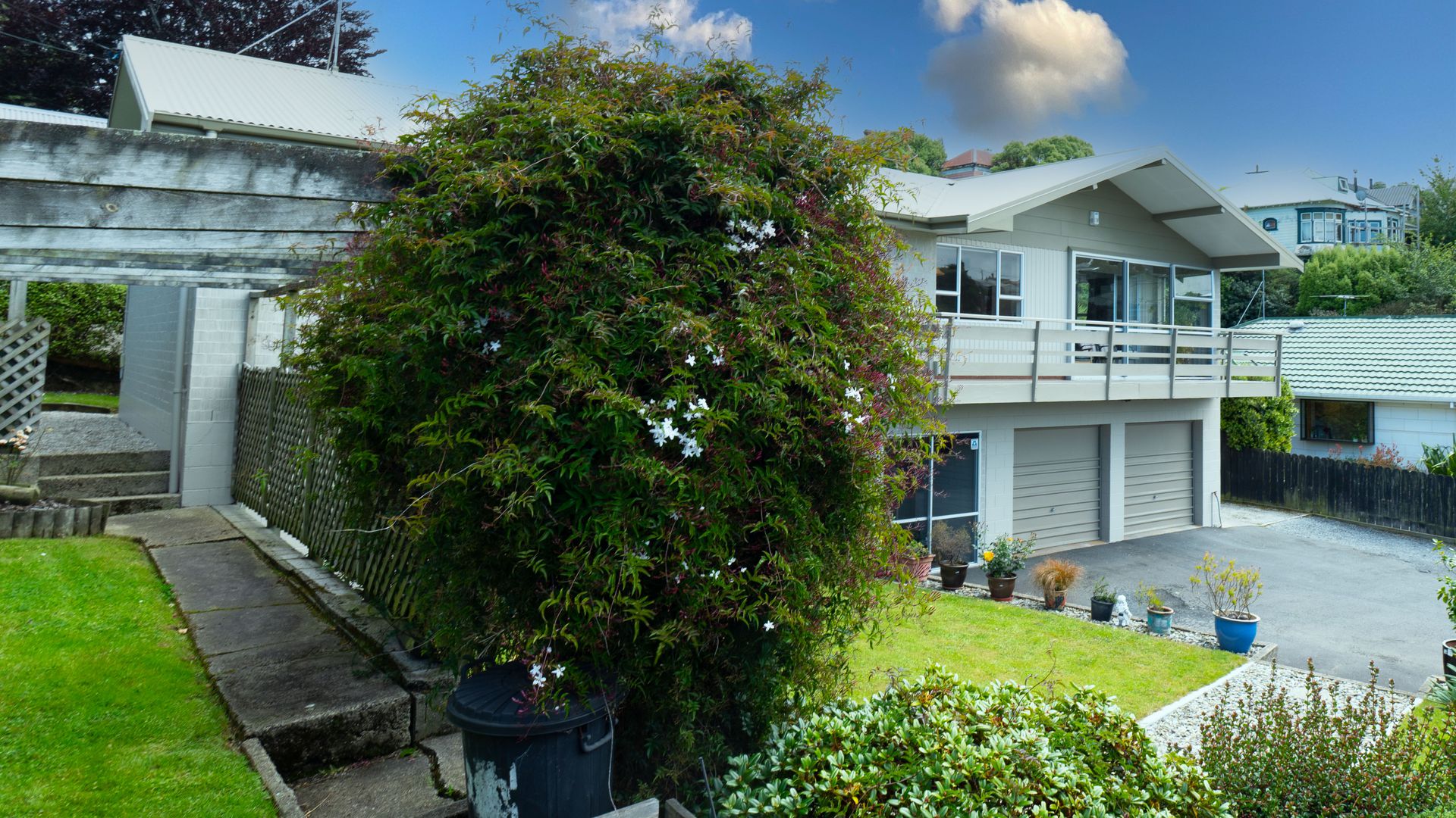 The lower level provides excellent functionality, featuring a double garage with integrated laundry and a superb workshop — ideal for tools, toys, or weekend projects. From the foyer, the home leads to a bedroom with good storage, a modernised bathroom with shower and separate toilet, and a large utility room that has previously served as either a bedroom or games room, offering endless configuration options. Upstairs, the sun-soaked open-plan living area enjoys seamless flow to the kitchen, which was modernised in the early 2000s and connects easily to the dining space. From here, step into the conservatory and out onto the deck, where elevated ocean views provide the perfect backdrop for relaxed entertaining.