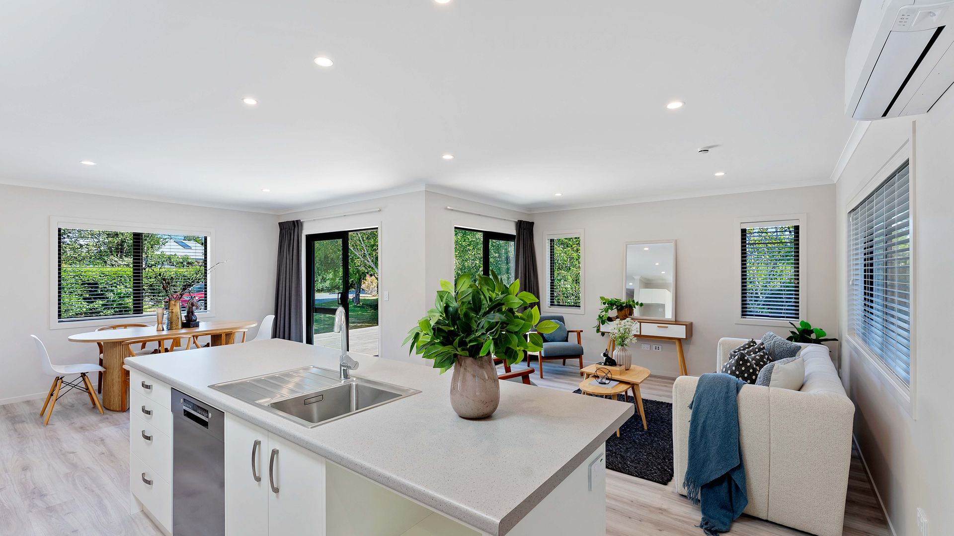 A brand-new home tucked away down a private right of way, offering peace, privacy, and a superb Waikanae address.