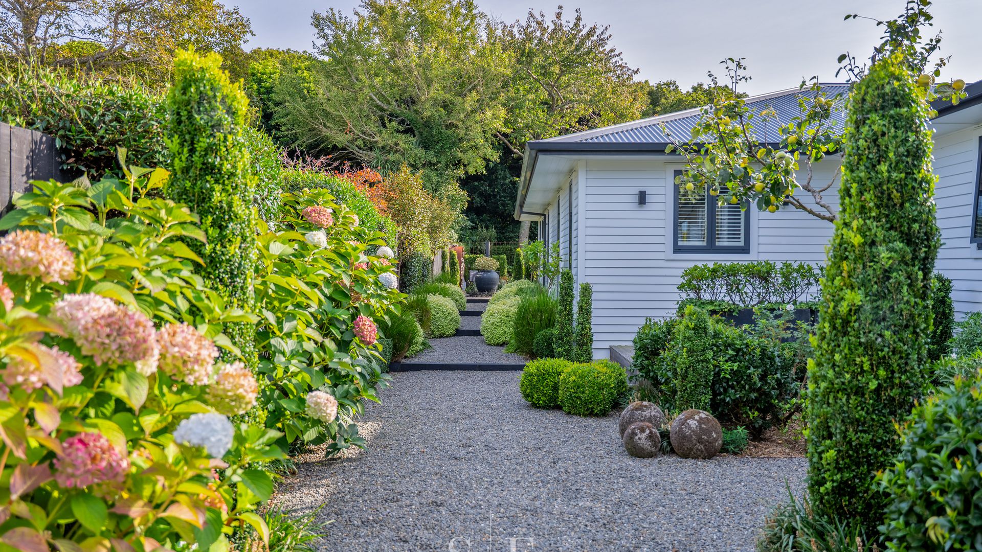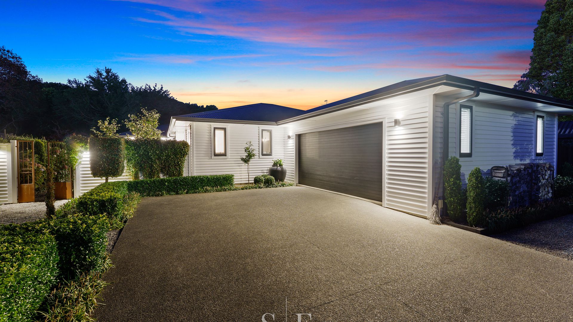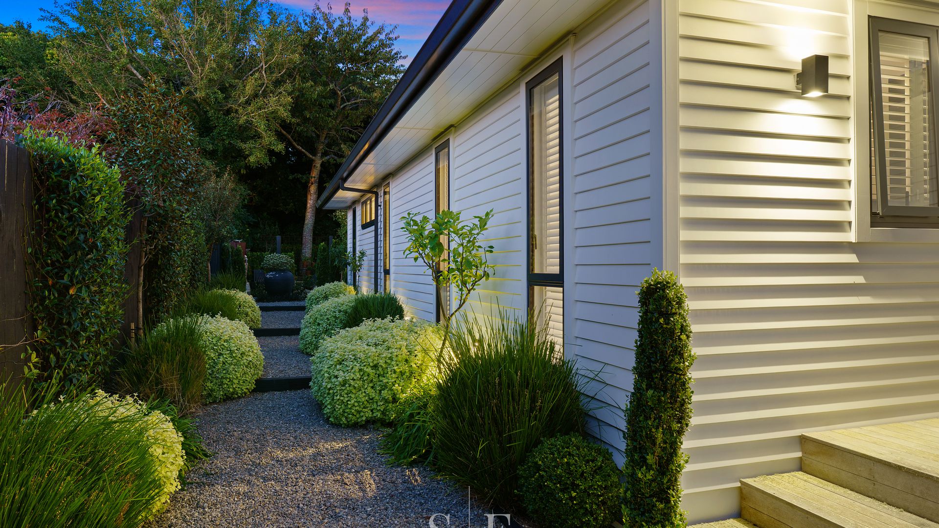 Positioned within one of Waikanae’s most coveted garden enclaves, this exceptional residence delivers a rare blend of refinement, privacy, and sophisticated single-level luxury. Surrounded by established greenery and birdsong, this is an address defined by quiet prestige, a secluded, verdant setting that feels entirely removed, yet remains moments from the river, village, and everyday conveniences. Crafted by respected local builder Pat White, the home is a statement in quality and design. Clad in timeless white weatherboard with striking contrasting accents, it exudes a sense of enduring elegance while offering all the benefits of contemporary living, including double glazing and multiple heating sources.