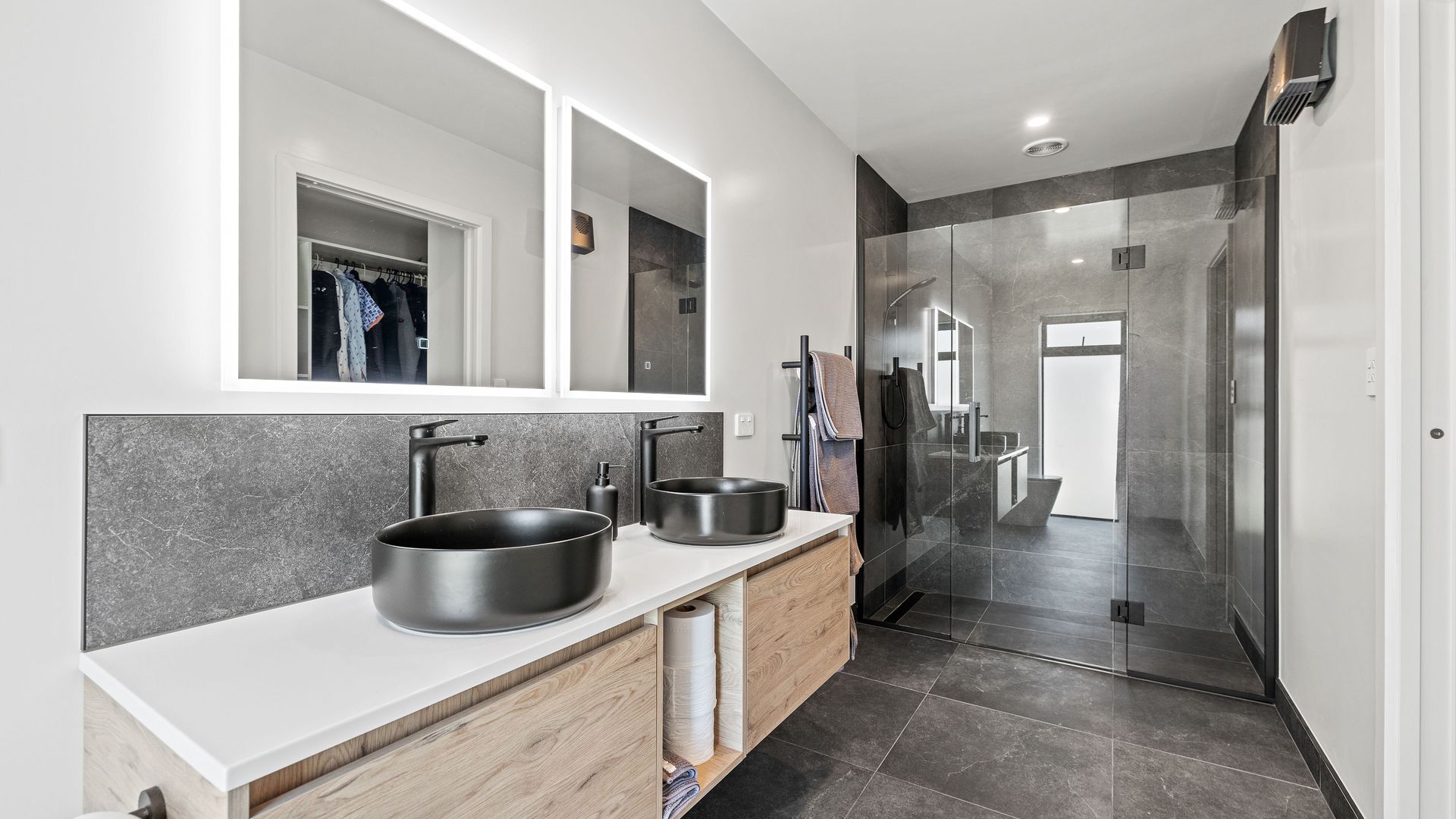 The master suite boasts a spacious walk-through wardrobe and a beautifully appointed ensuite with a large tiled shower and dual his-and-hers vanity. Bedrooms two and three are connected by a stylish Jack and Jill ensuite with elegant tiled showers, while the fourth bedroom offers a private guest retreat complete with its own luxurious ensuite, also finished with a tiled shower. The home's masterful design includes open-plan living with majestic cathedral ceilings that create an atmosphere of space and grandeur.