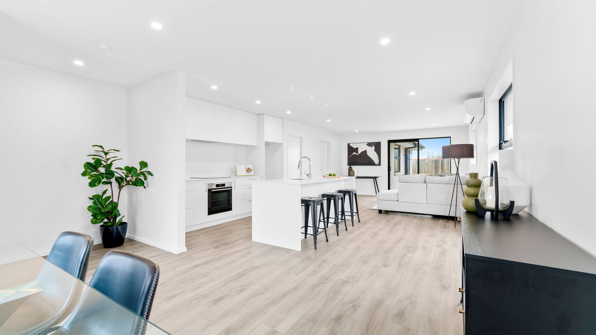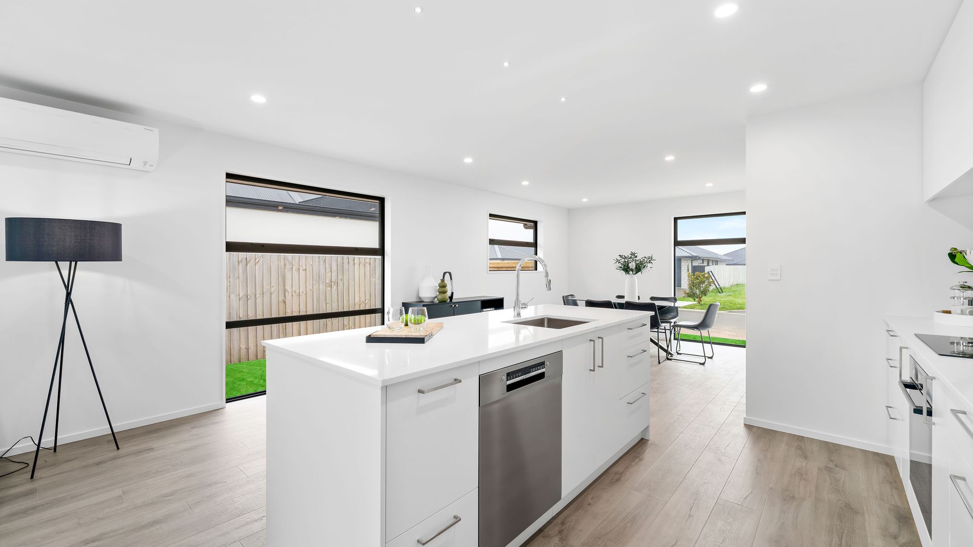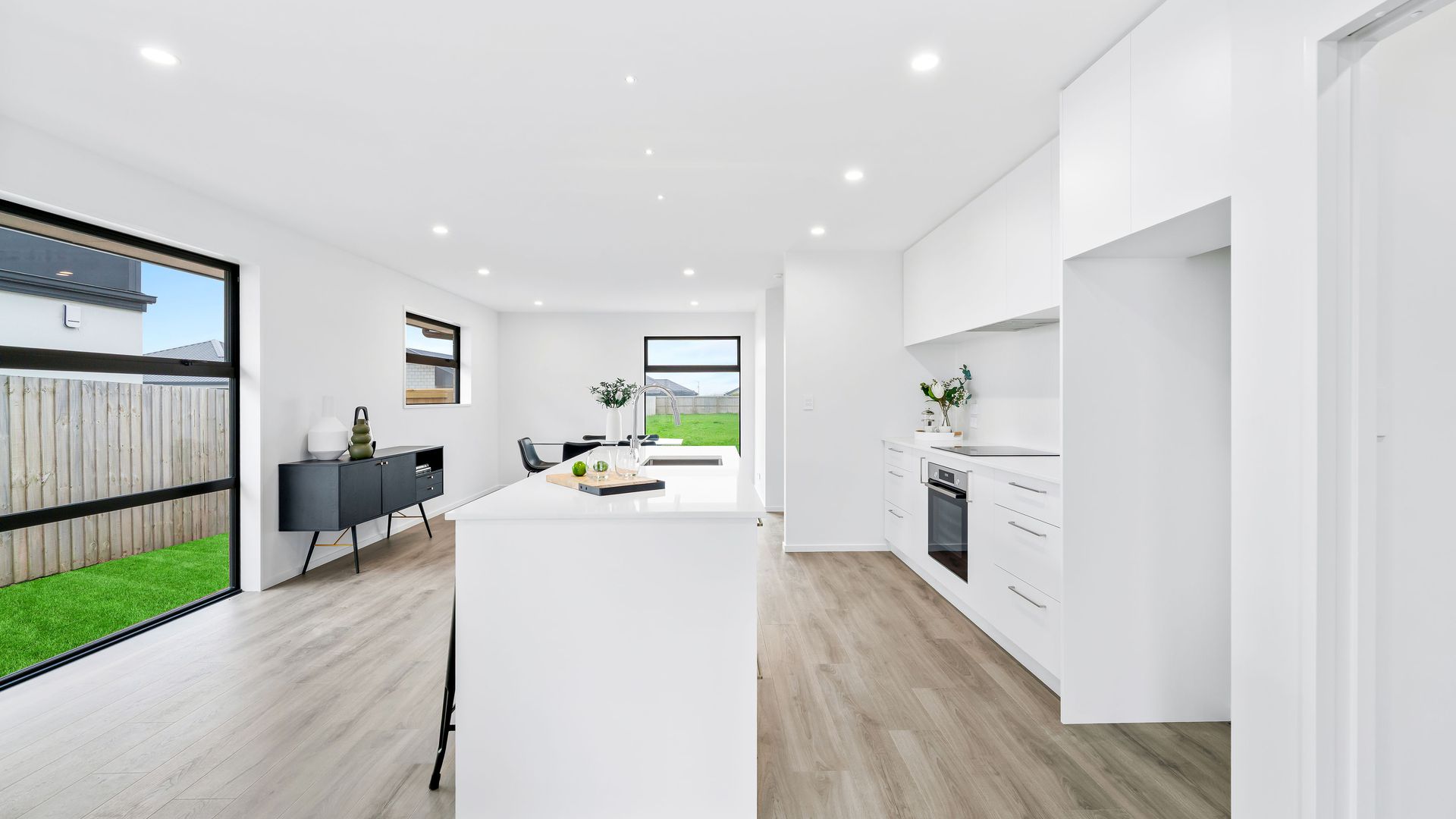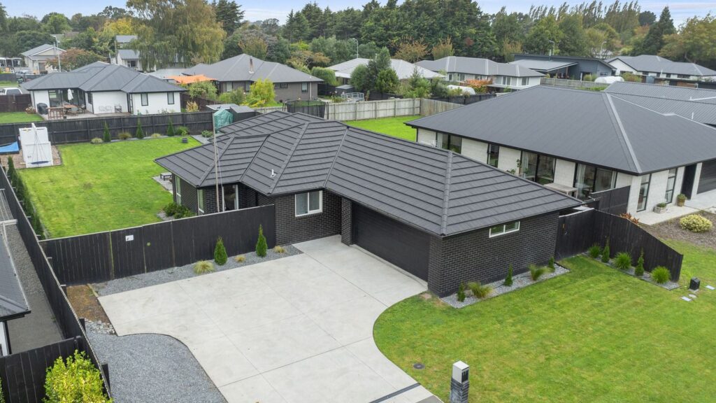 Positioned for maximum sun amongst new homes in Te Whariki subdivision in the super popular township of Lincoln finds this brand new 172m2 four bedroom build constructed by respected local company KAD Build Ltd. This home has all the modern conveniences you would expect in a new home including a centrally located kitchen complete with stone bench tops, Bosch appliances and a walk in pantry which opens out onto an open plan dining/living area with easy access to a good sized north facing patio.