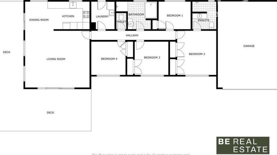 Inside, the large open-plan kitchen, dining, and living area forms the heart of the home, complemented by fresh carpet throughout. A central hallway leads to four generous double bedrooms, all with built-in wardrobes. The master bedroom features a well-appointed ensuite with floor-to-ceiling tiles, while the main family bathroom includes a spa bath and underfloor heating. A separate toilet and separate laundry add to the home’s practical layout.