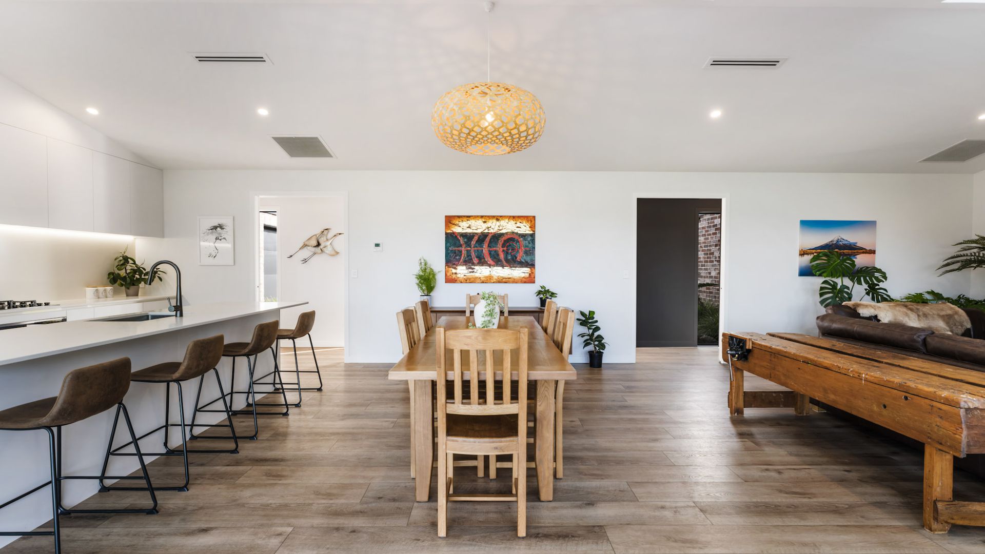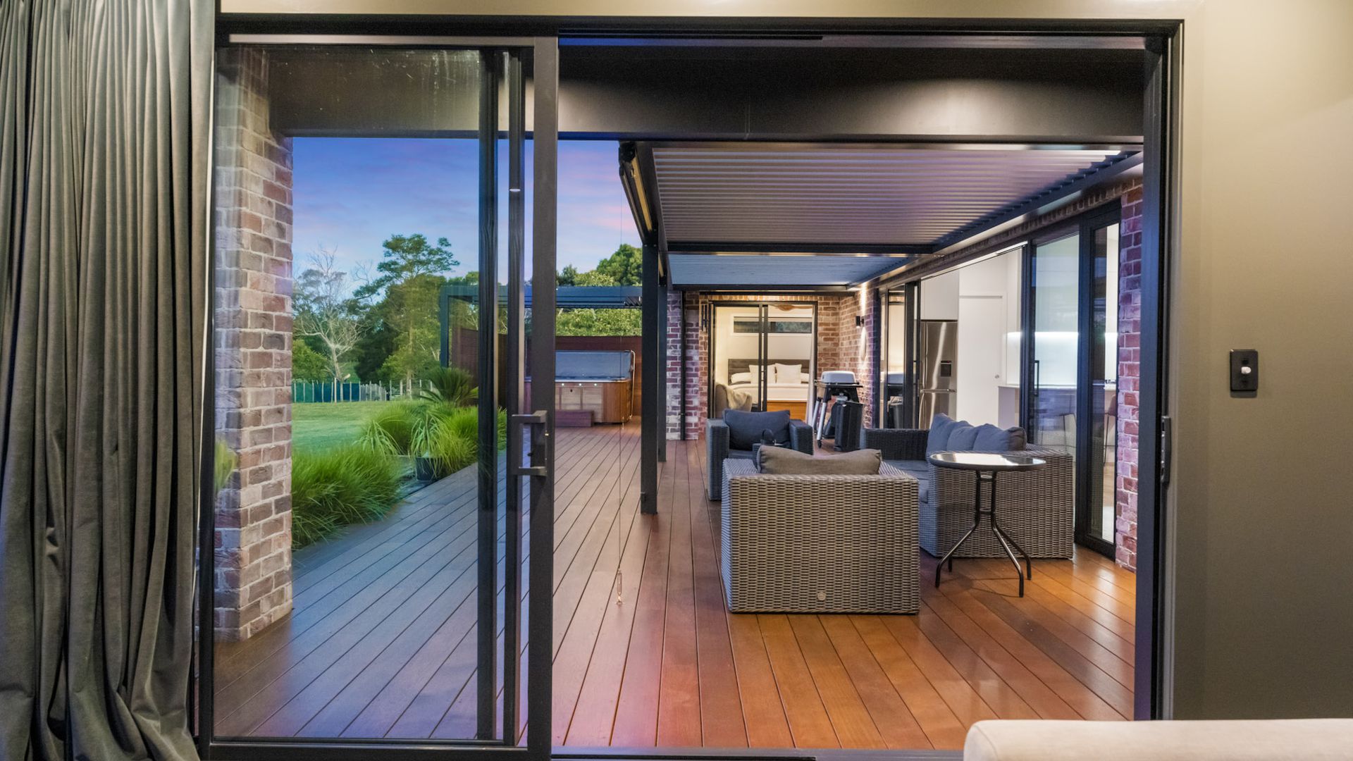 As the sky softens and the Italian brick begins to glow beneath architectural lighting, this home reveals exactly what it is, not a build, but a statement. Strong, refined and quietly powerful, it’s a property that doesn’t chase attention… it commands it. The arrival experience alone sets the mood. Wide concrete drive. Solid Kwila underfoot. A sculptural, gallery-like entrance that feels more boutique lodge than suburban home. From the first step inside, you know this is a place where design was never an afterthought.